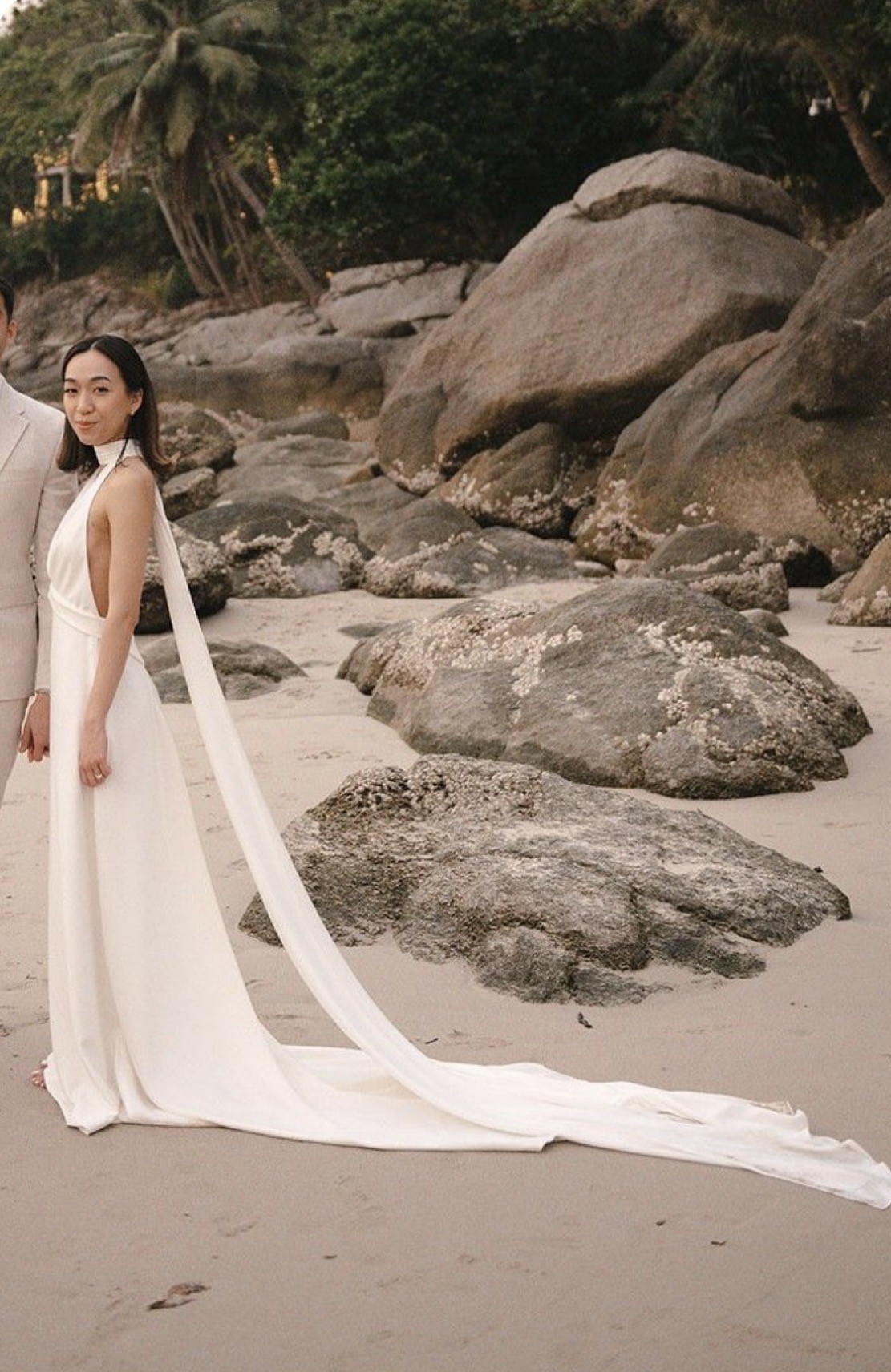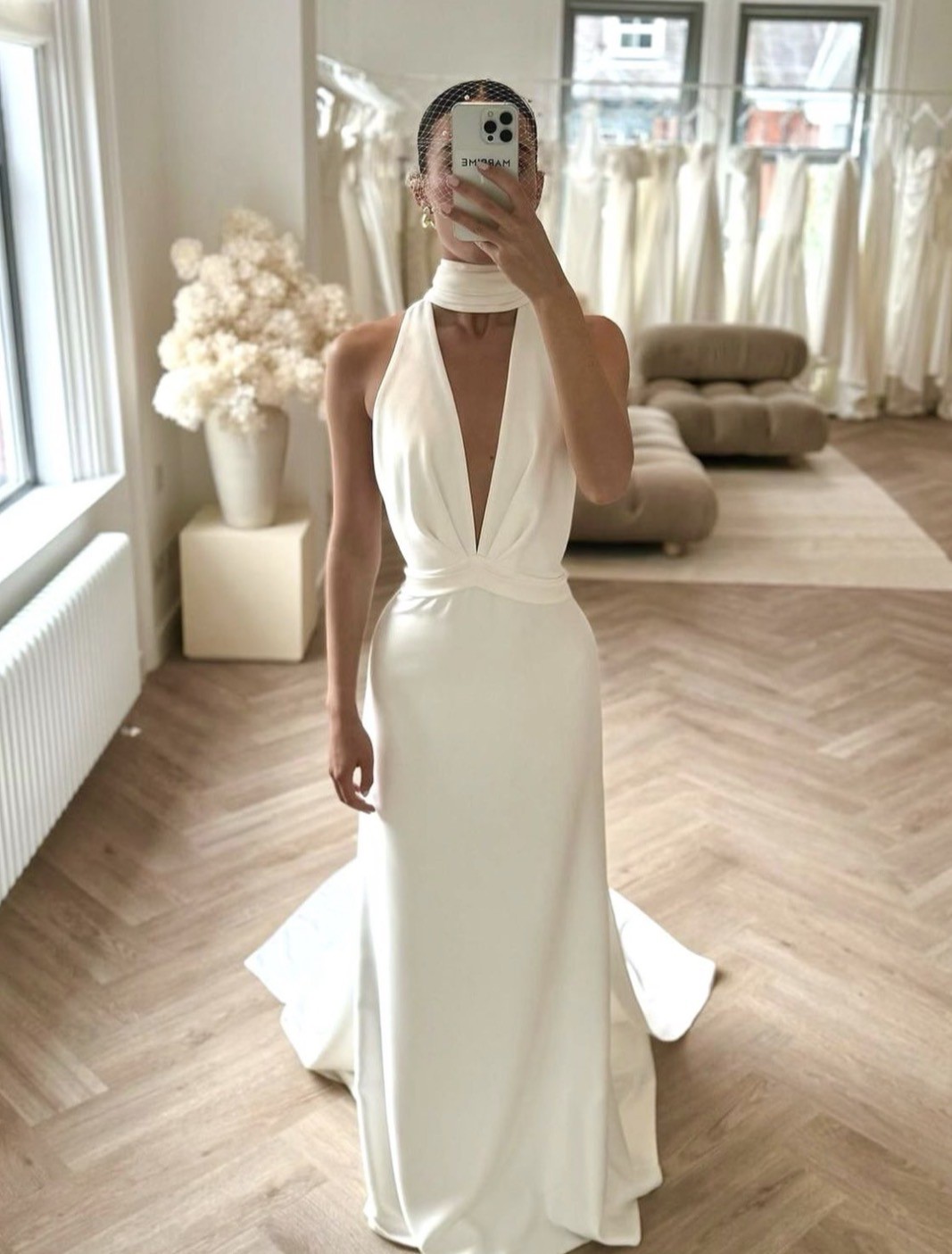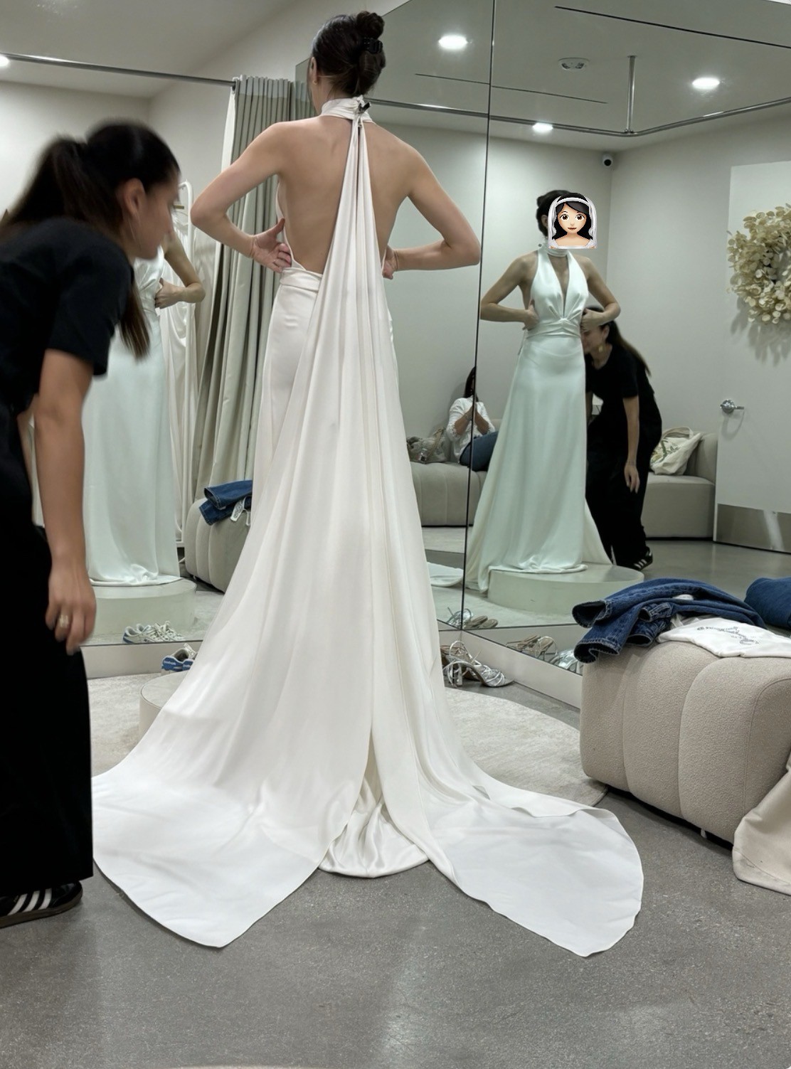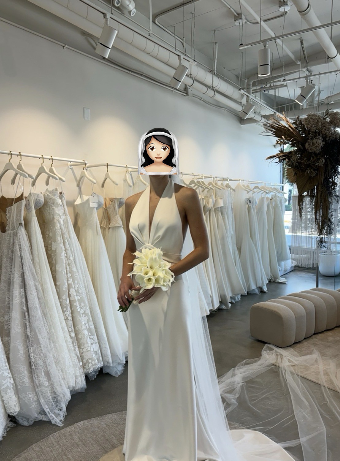 Hi Bride! Congratulations!" 🍾🥂 I have a brand-new, unaltered Eva Lendel "Rouge" gown in light ivory. It has never been worn, has no flaws, and includes the detachable scarf. It’s a very clean, refined style for anyone looking for a polished look. Feel free to message me with any questions! Sizing & Measurements: 92B, 72W, 100H (cm) 36.2B, 26.8W, 39.4H (in)