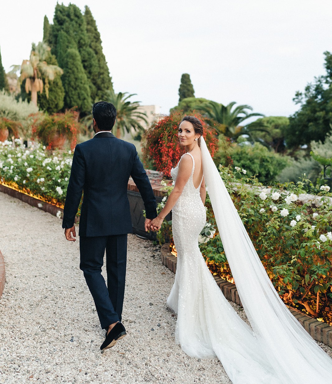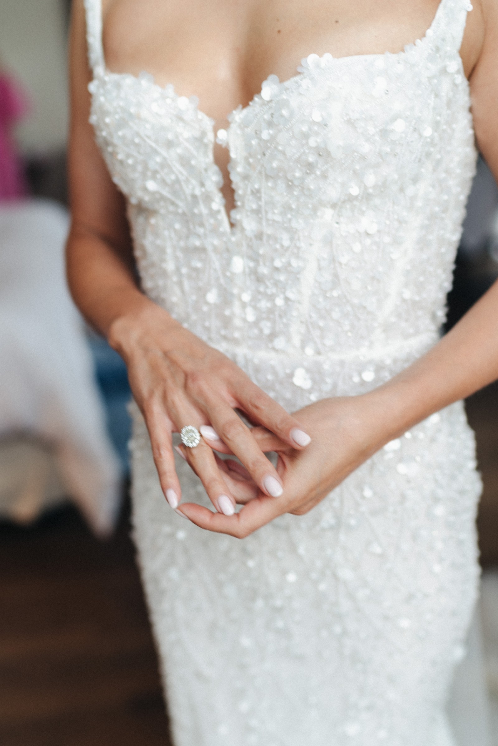 The lace beading was custom designed by Emma and made in India - it truly is exquisite in person! The fabric is super stretchy, so it was really comfortable to wear and I was able to move freely and eat in it (very important!).