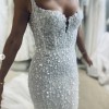 An embellished mermaid silhouette, with a super flattering soft boned bodice, low scooped back and train (which can be pinned up post ceremony).