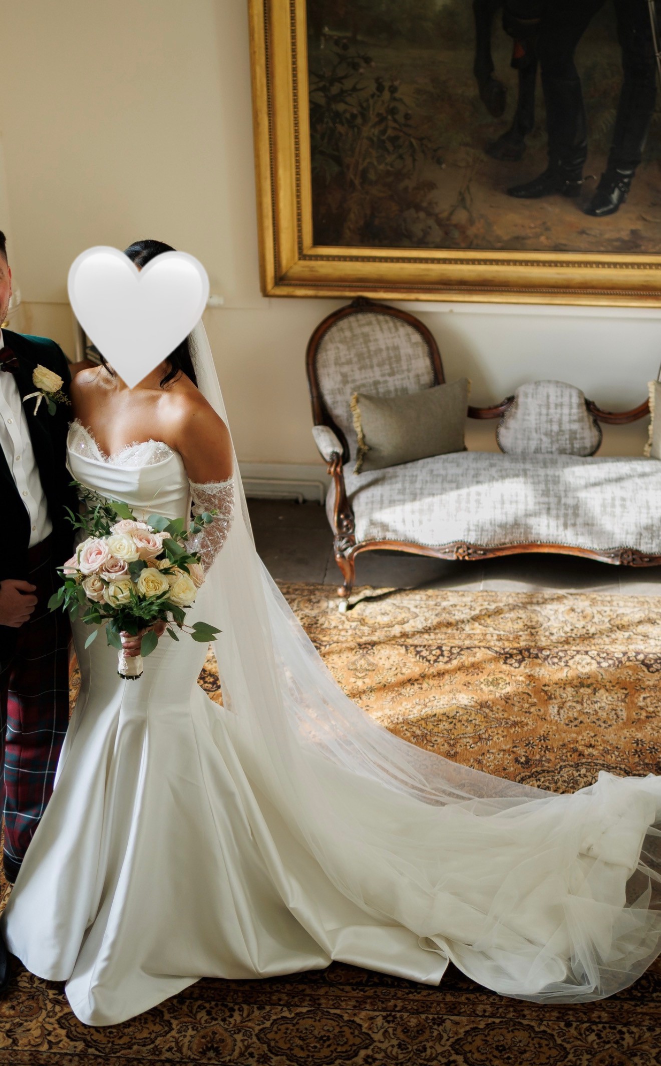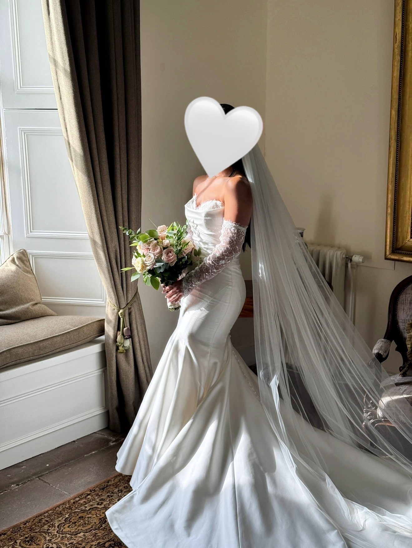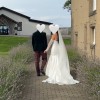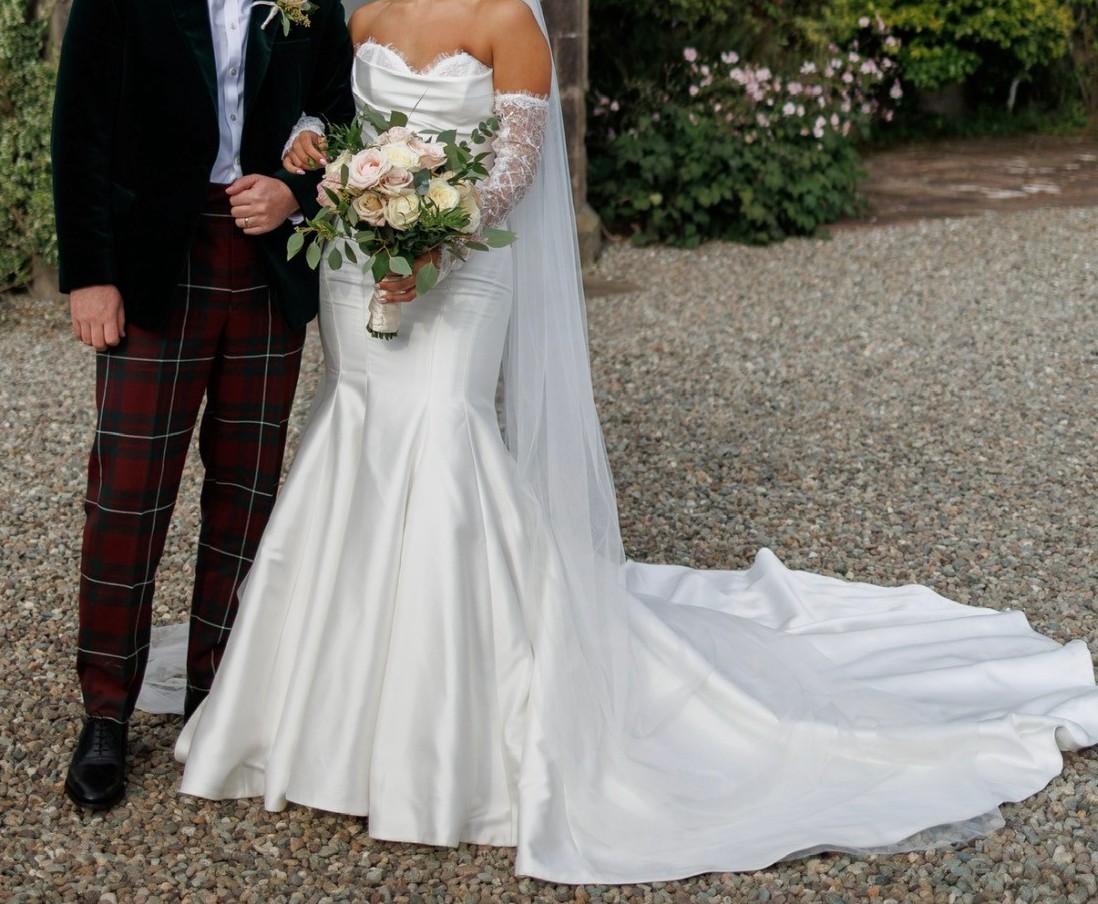 The dress was worn once and has been professionally cleaned and boxed. It made me feel confident and comfortable on such a special day, and I’d love for it to make another bride feel the same.