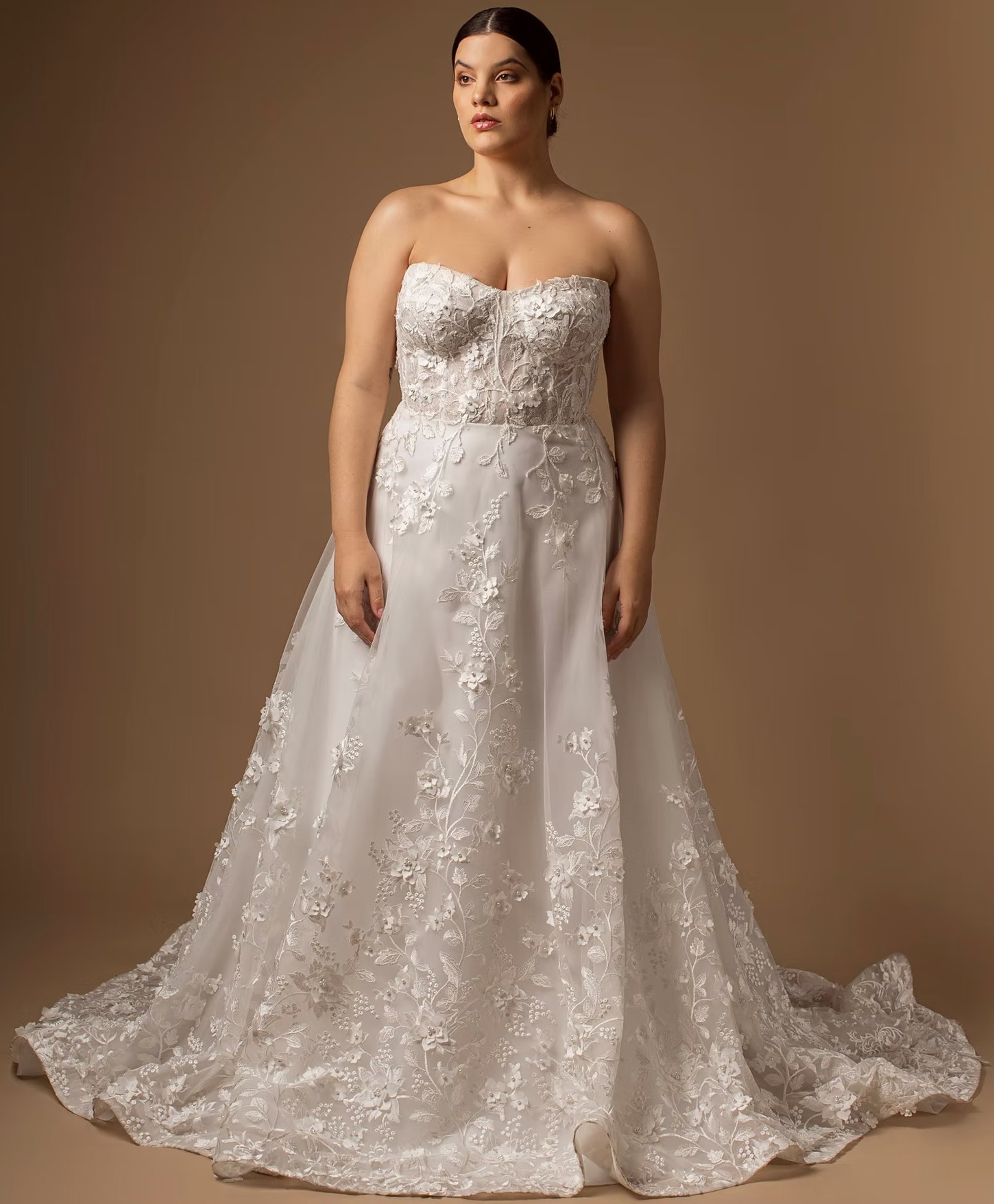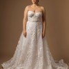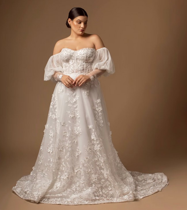 This Victoria wedding dress from Adriana Madrid Bridal is a breathtaking portrayal of elegance and romance. With its A-line silhouette and sweetheart neckline, this dress gracefully flatters the figure, ensuring you look and feel your best on your special day. The intricate embroidery combined with exquisite 3D flowers and delicate beading creates a stunning visual effect, making you the centerpiece of every moment.