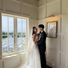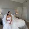 The skirt is floor-length with a ~2 metre train, which photographs beautifully and can be bustled if needed.