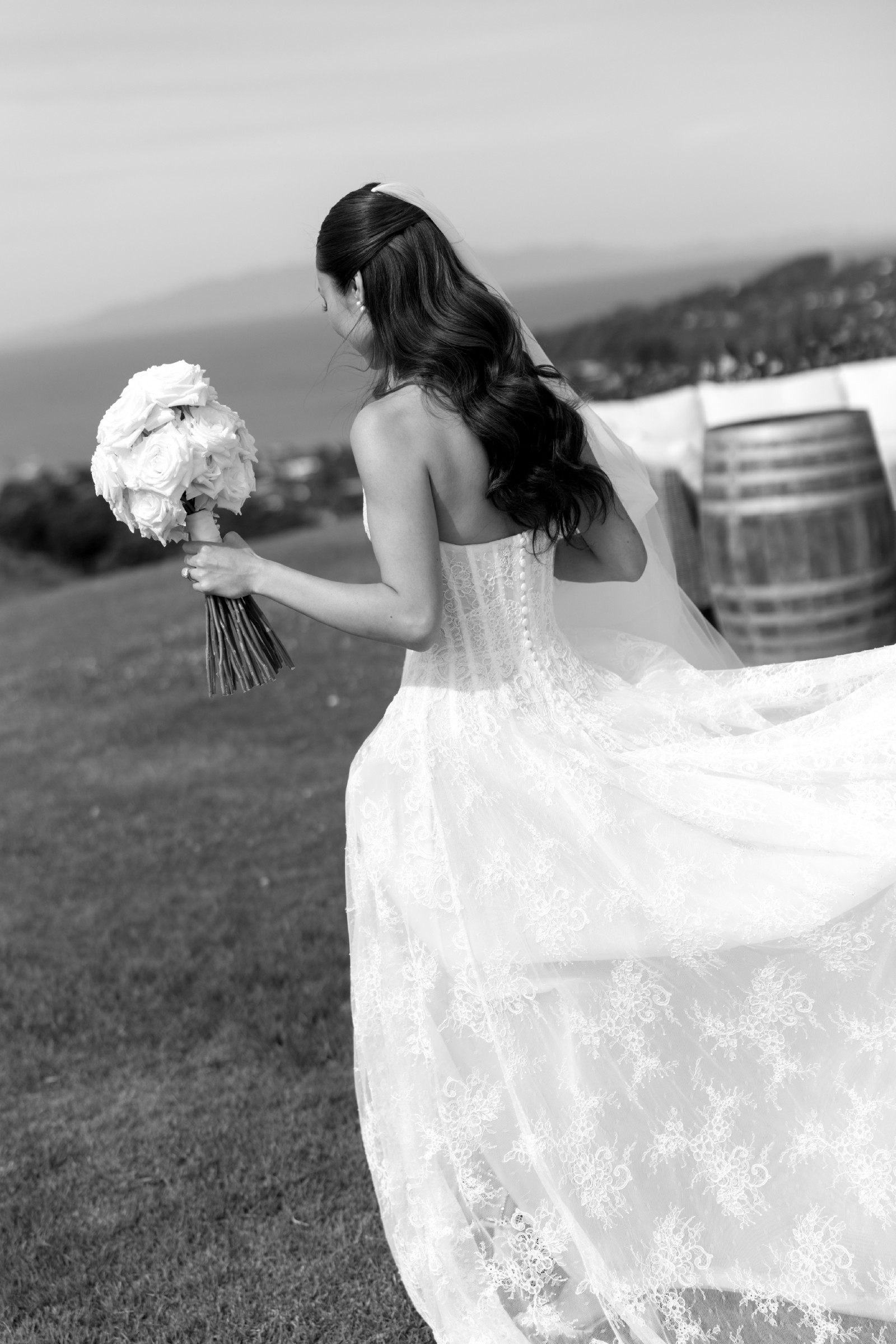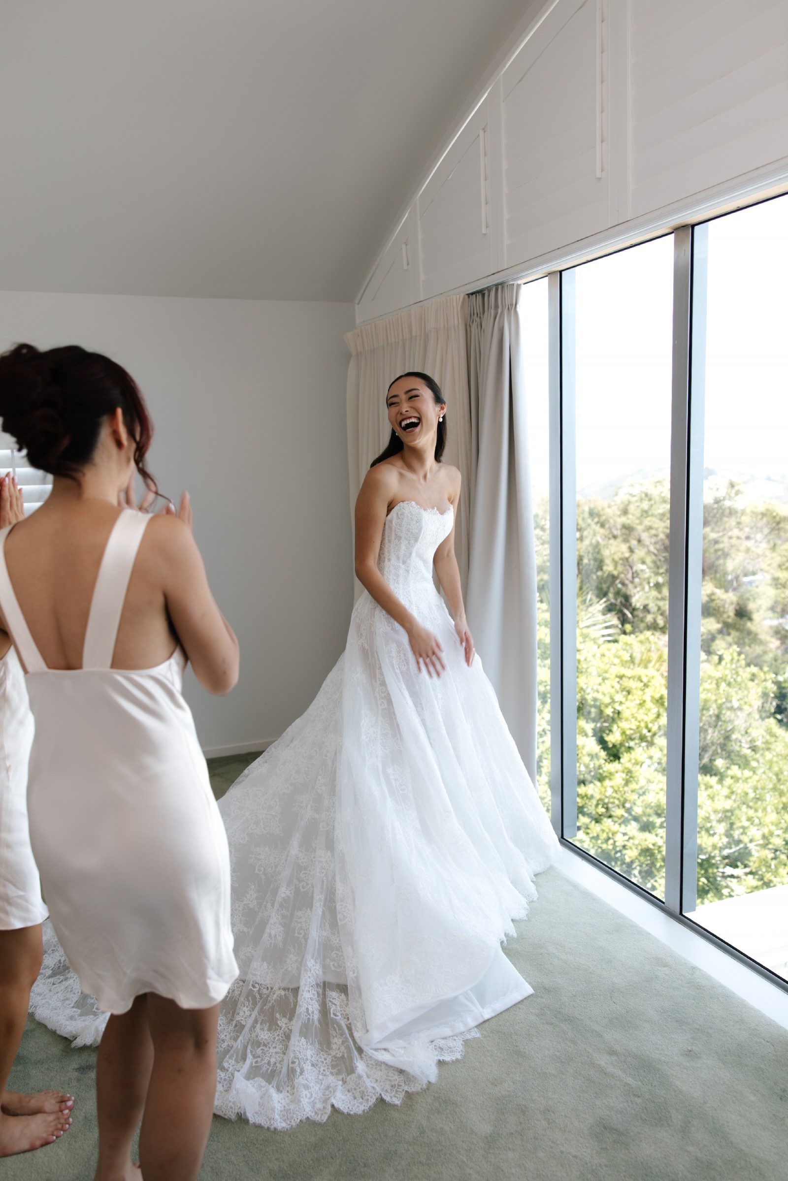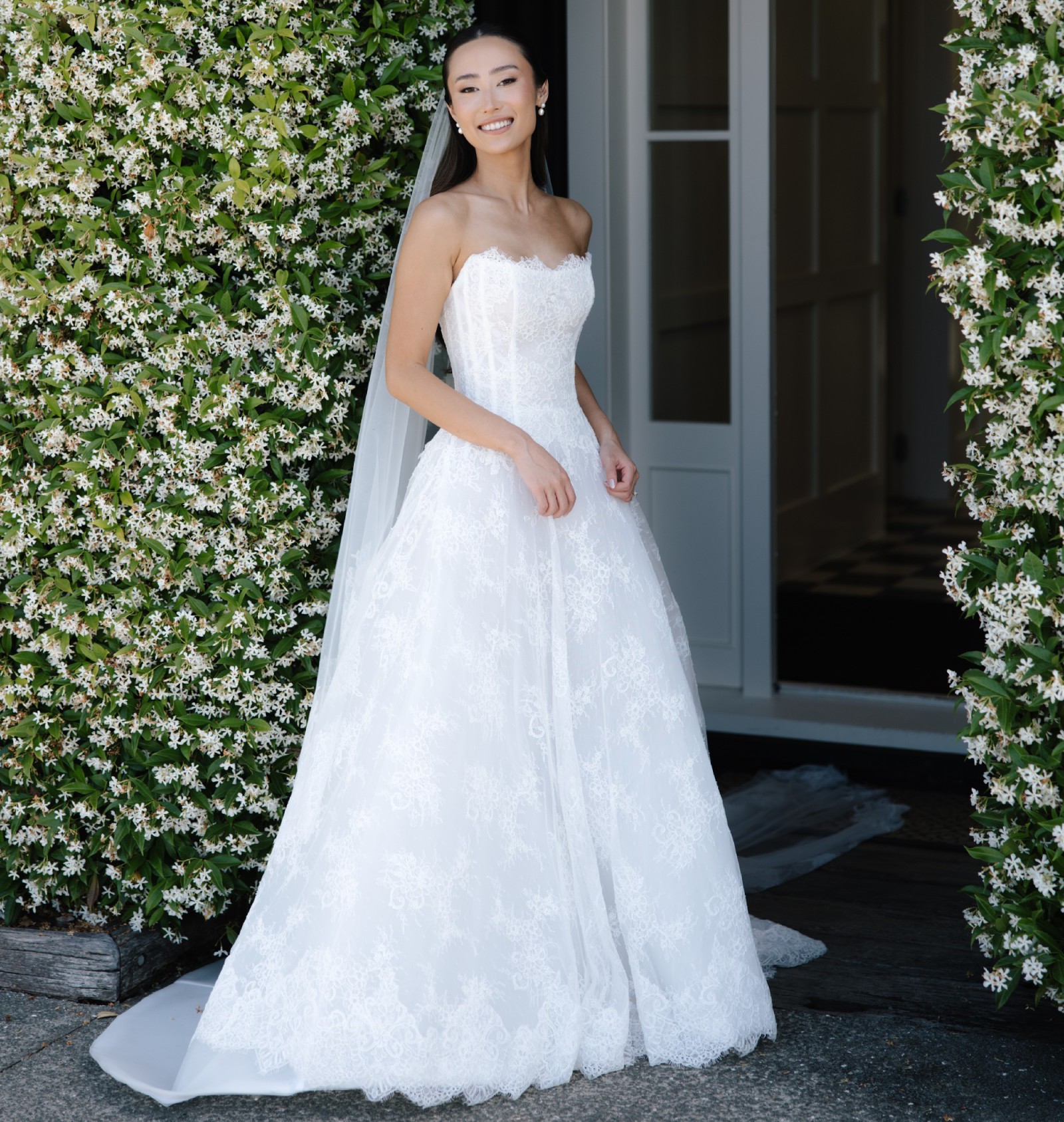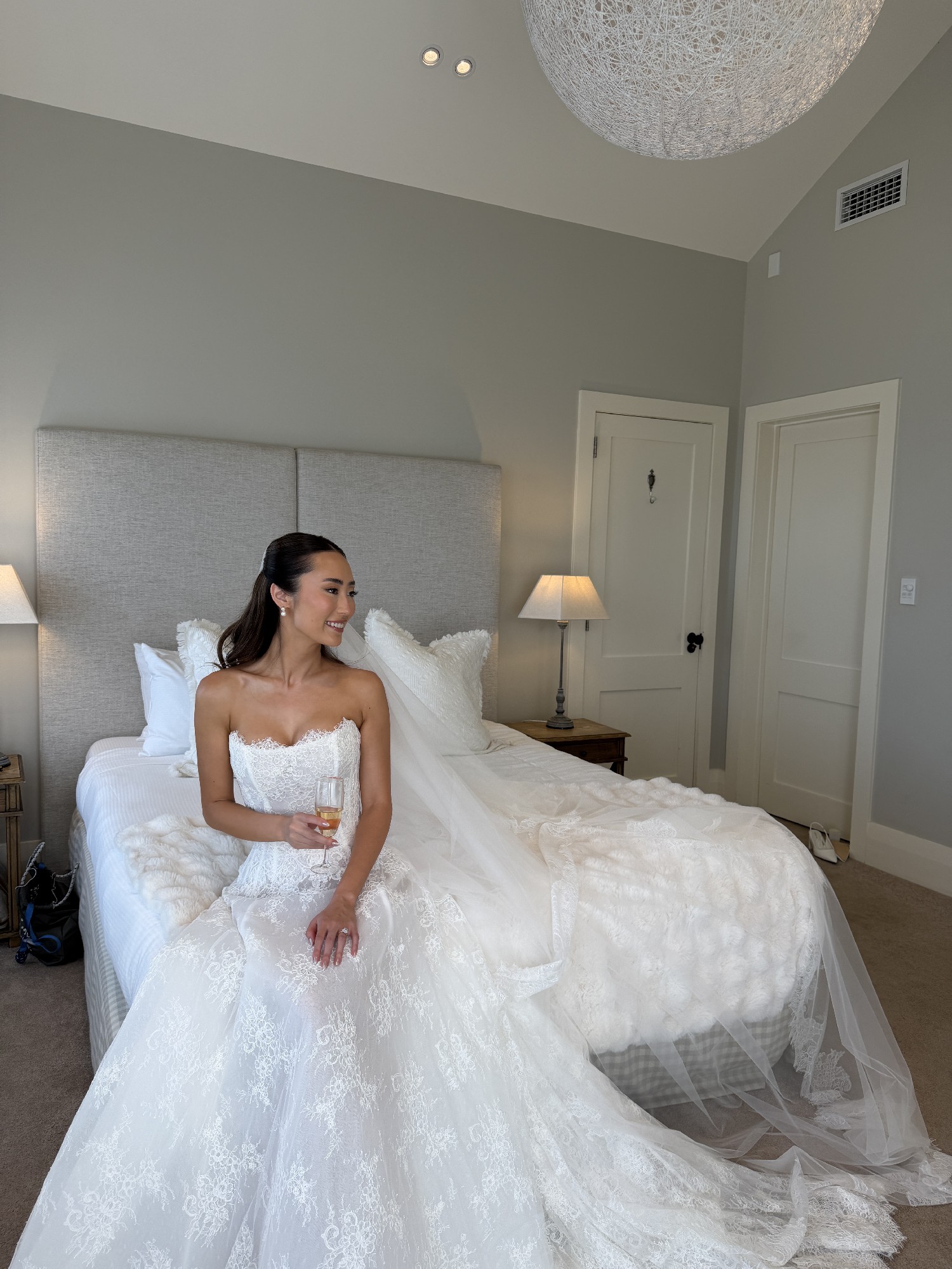 The lace was hand-sewn in Maelle’s Melbourne atelier, with each lace piece individually placed and stitched. No machine appliqué — every detail is custom.