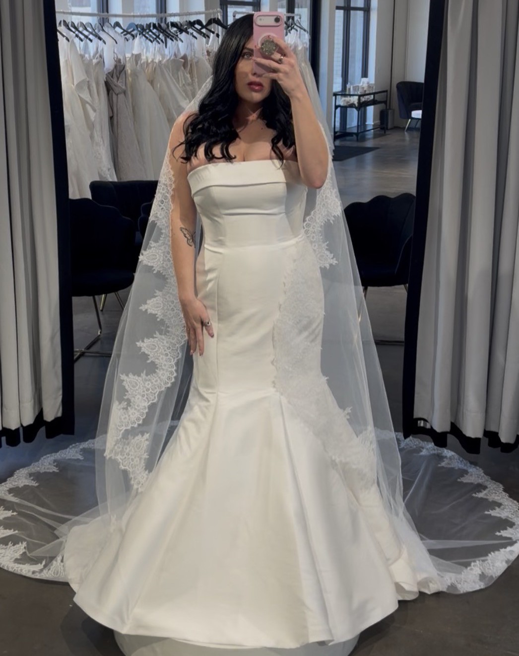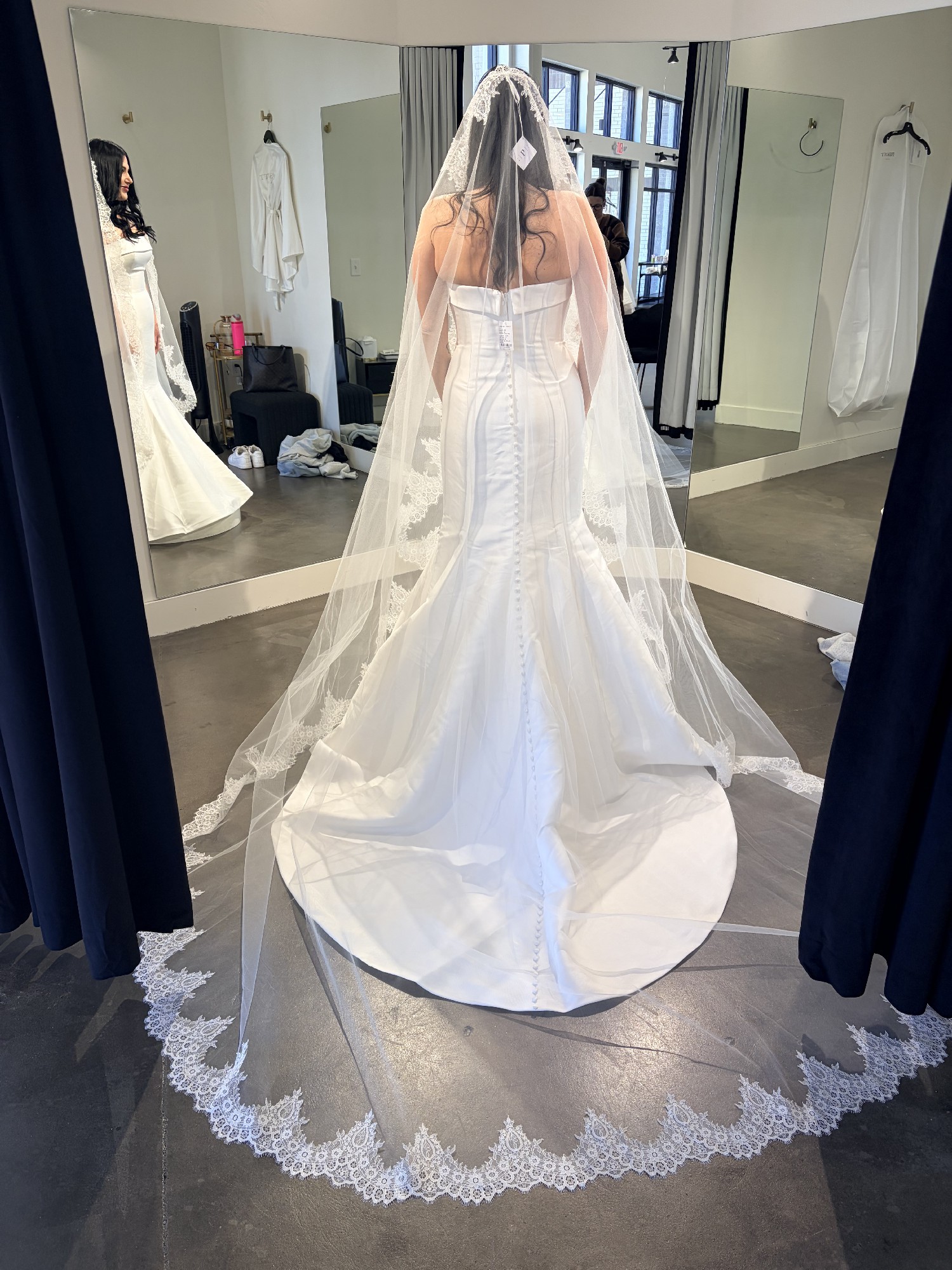 This dress is brand new with tags and in perfect condition — no stains, no tears, no flaws whatsoever. Nothing is wrong with it at all. It’s truly gorgeous; I simply ended up choosing a different dress that better matched my final vision.