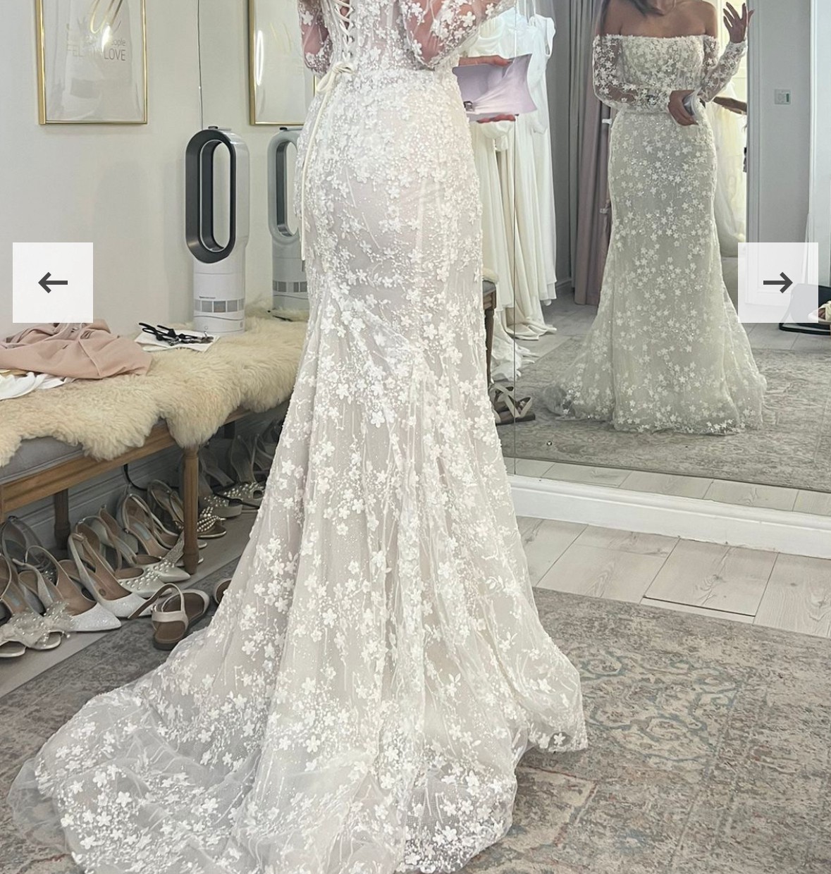 Milla Nova Violett dress Never altered Never worn Brand new Unfortunately I put on so much weight before my wedding, so was not able to fit this one ( bought the same dress size up) Stunning dress Comes with the white underskirt and the nude corset to wear inside. On the fourth photo you can see me trying the dress without the white underskirt. On the 5th one you can see the difference once with the skirt in. I was 56kgs in the photo ( uk size 6-8) . It suited me until I was 69 kgs. So it is for UK6, UK8, UK10 and a slim UK12. I am also selling the same dress in size 12, which I wore on my second listing. Needs a good home.