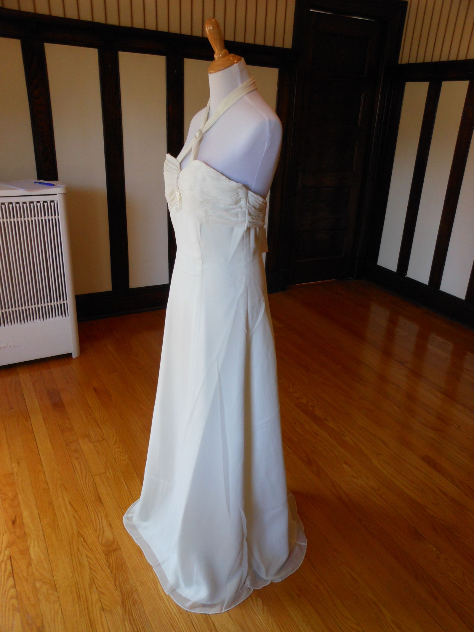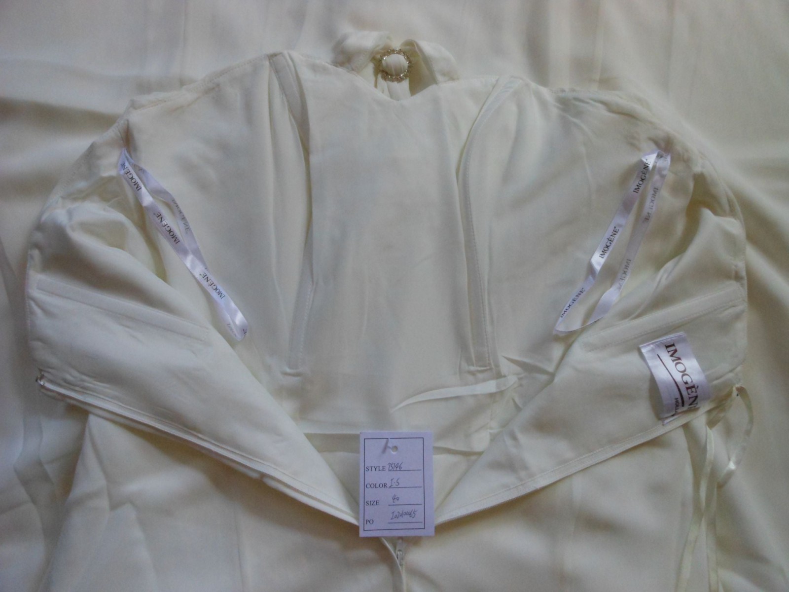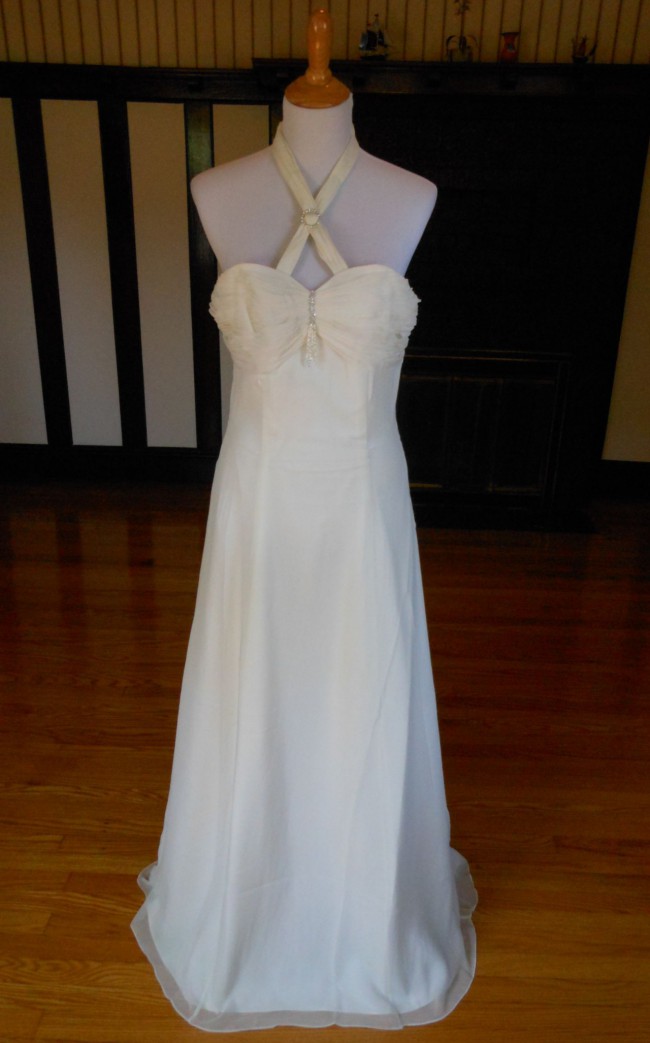 This is an Authentic IMOGENE HOLLAND Bridal Wedding Dress Gown. The style number of the dress is 75146. It has a gorgeous A line style. The dress is made of high grade chiffon and embellished with exquisite sparkling beads/sequences. The bodice also has bonning to build a perfect shape. This dress is brand new in great condition with the original label and tags. It was never worn.