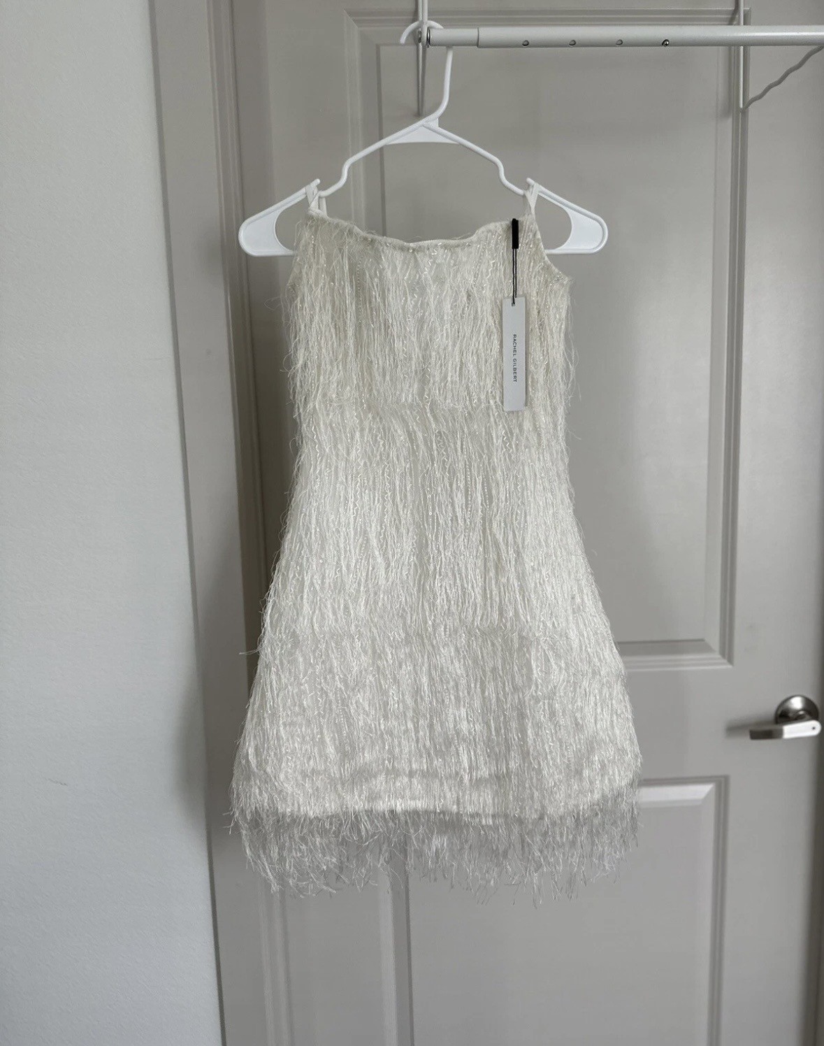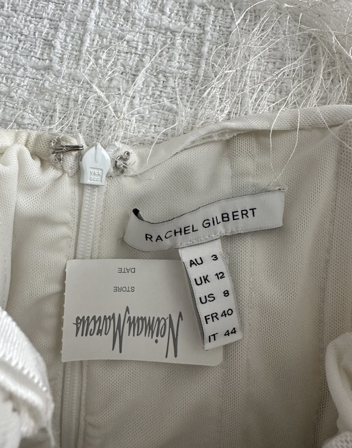 This Rollo Mini gown by Rachel Gilbert is an exquisite blend of modern elegance and playful charm, perfect for the contemporary bride seeking to make a statement on her special day. Crafted with meticulous attention to detail, this stunning A-line silhouette gently hugs your figure while ensuring a flattering fit that radiates confidence.