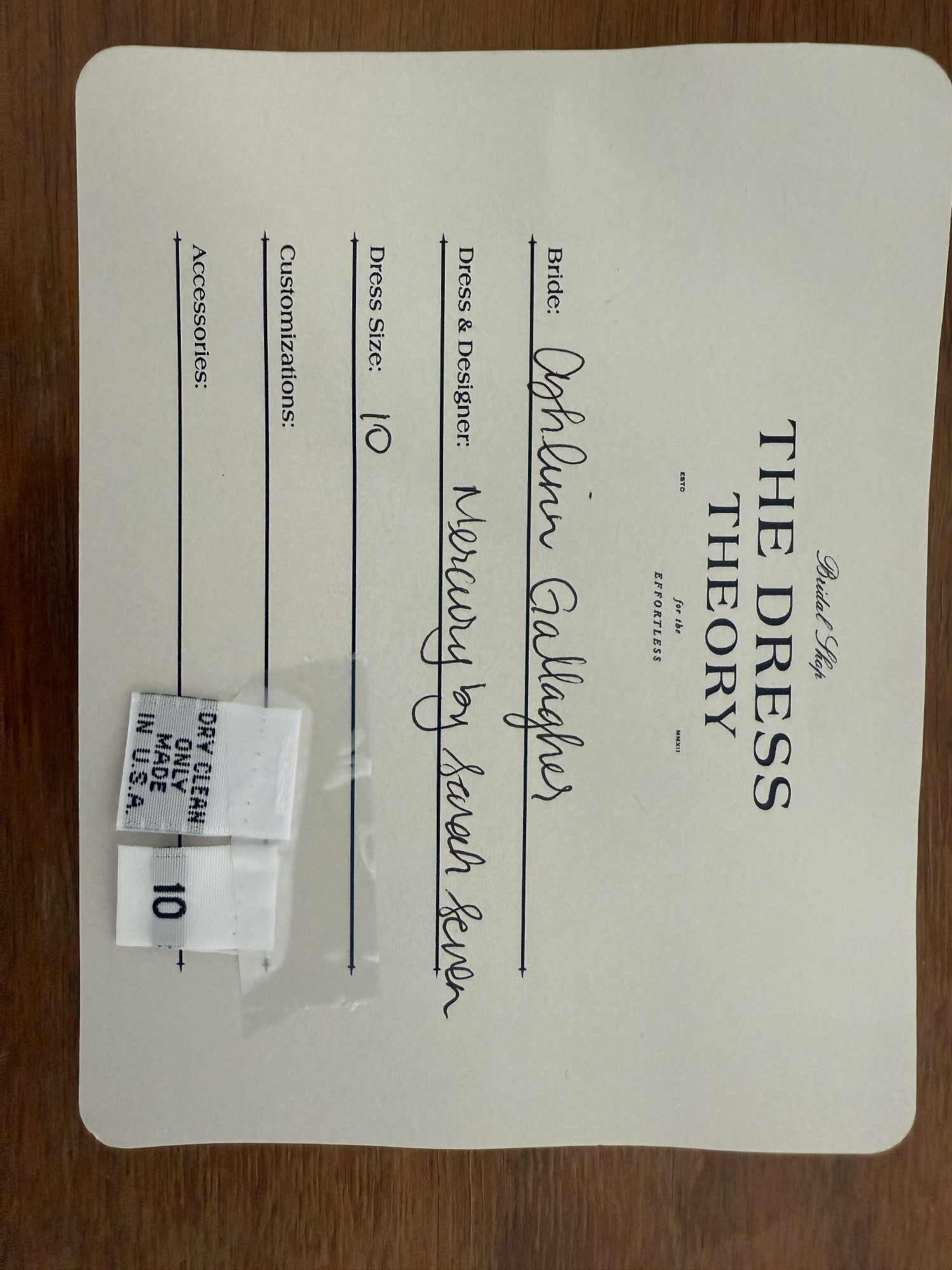 - Tailor also added a small blue bow on the inside tag for "something blue"