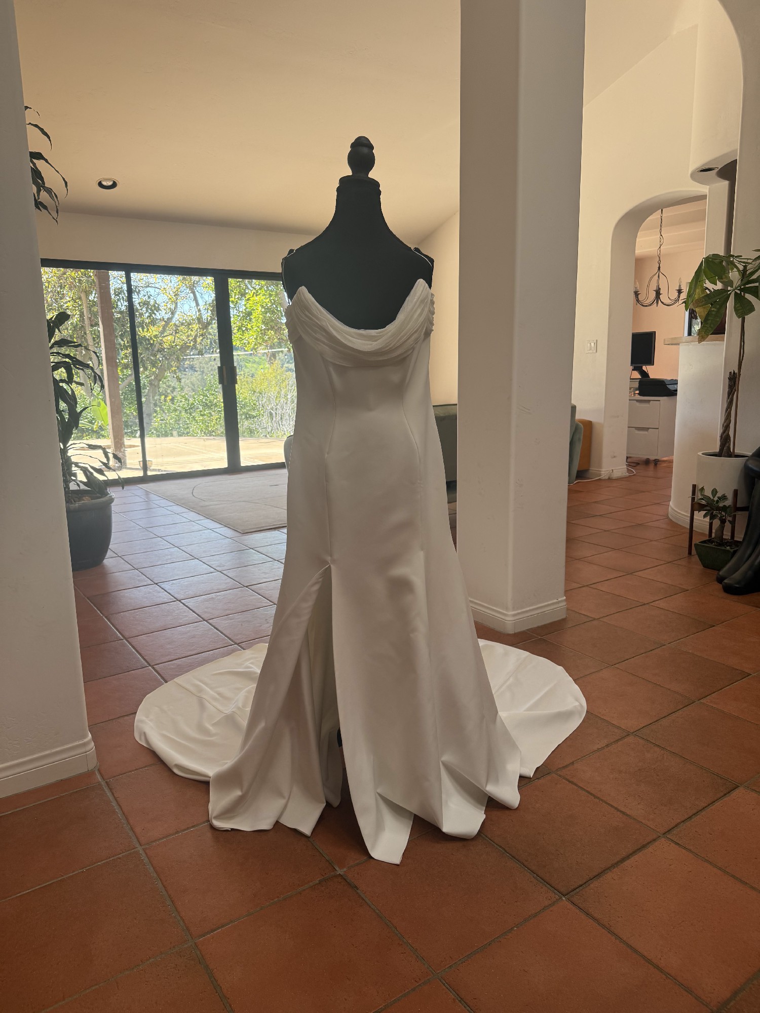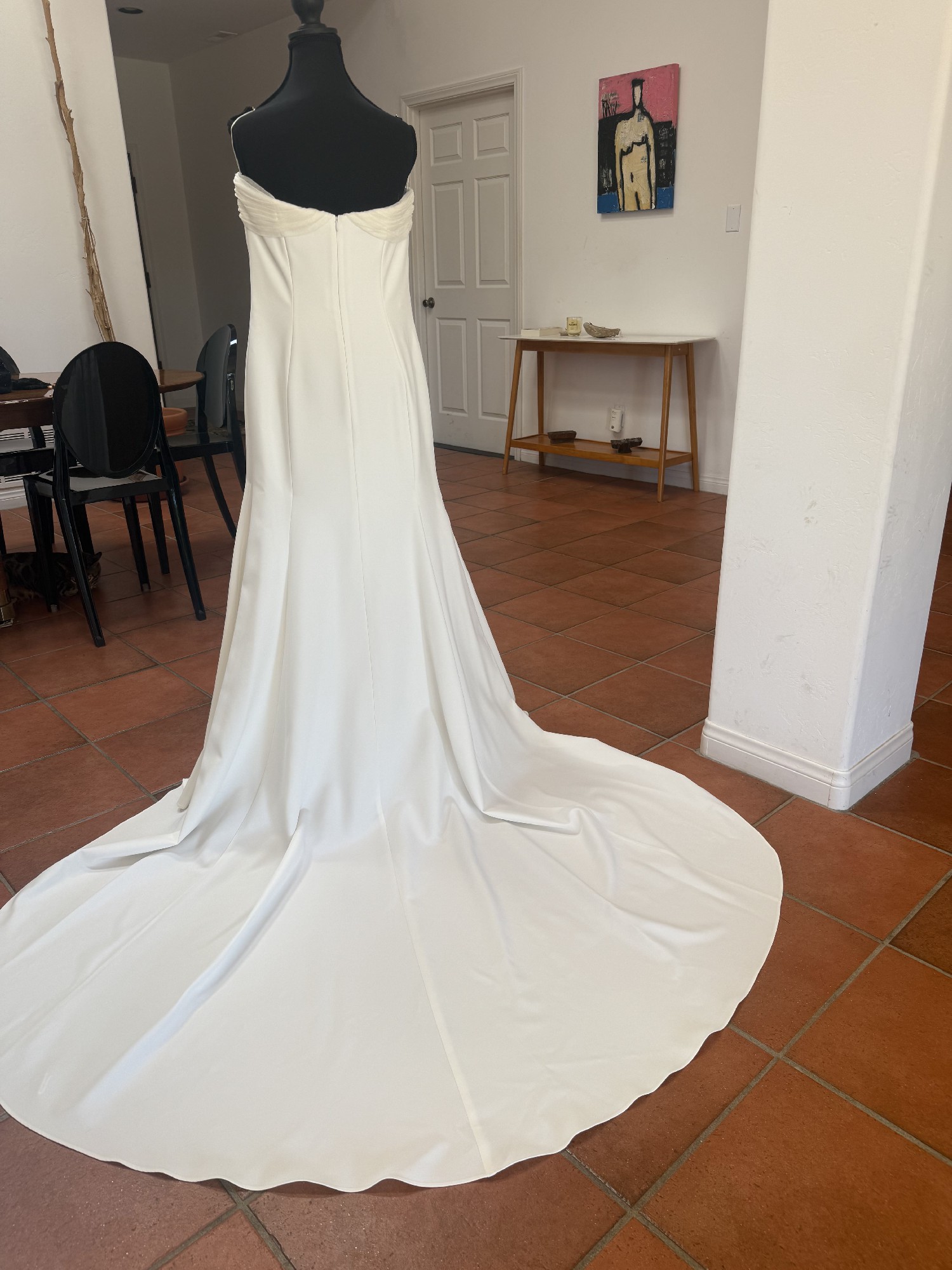Dress is in perfect, like-new condition, and was professionally dry-cleaned and steamed. I changed into a second dress, so it was only worn a few hours..