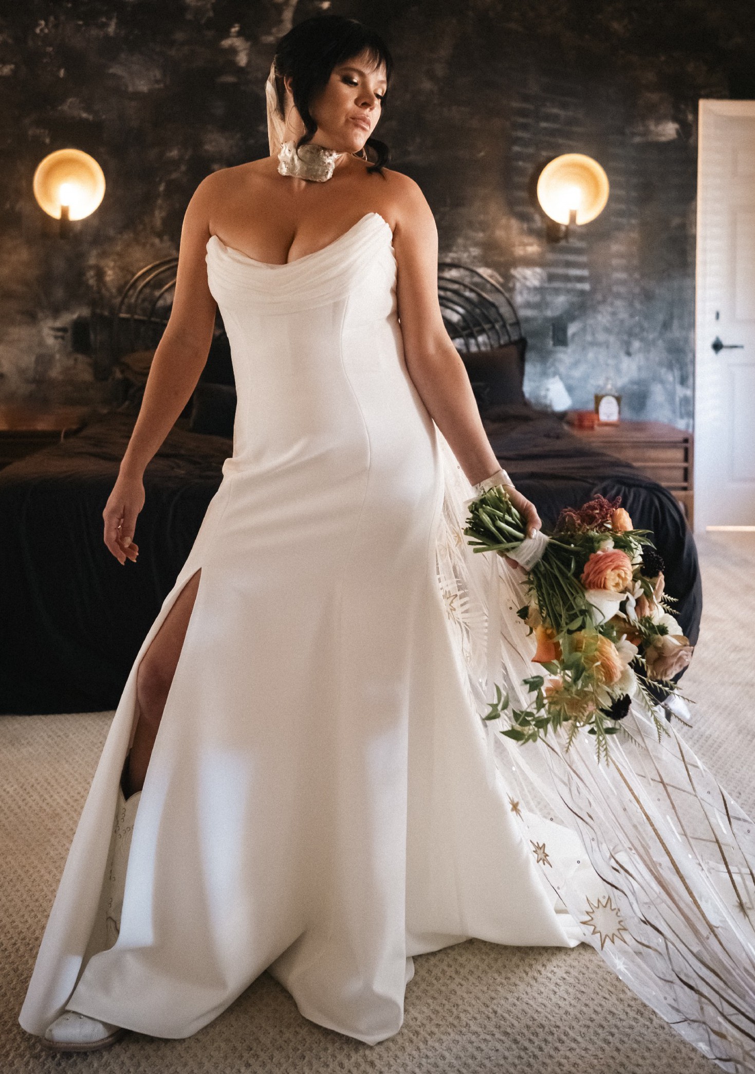 This dress is SO flattering, with a sculpted silhouette. Sarah Seven is known for making incredibly beautiful, timeless, chic gowns that are shocking comfortable and hug your body for the most flattering "snatched" look. It was truly my dream dress, and made me feel SO beautiful - and was so comfortable and easy to move in.