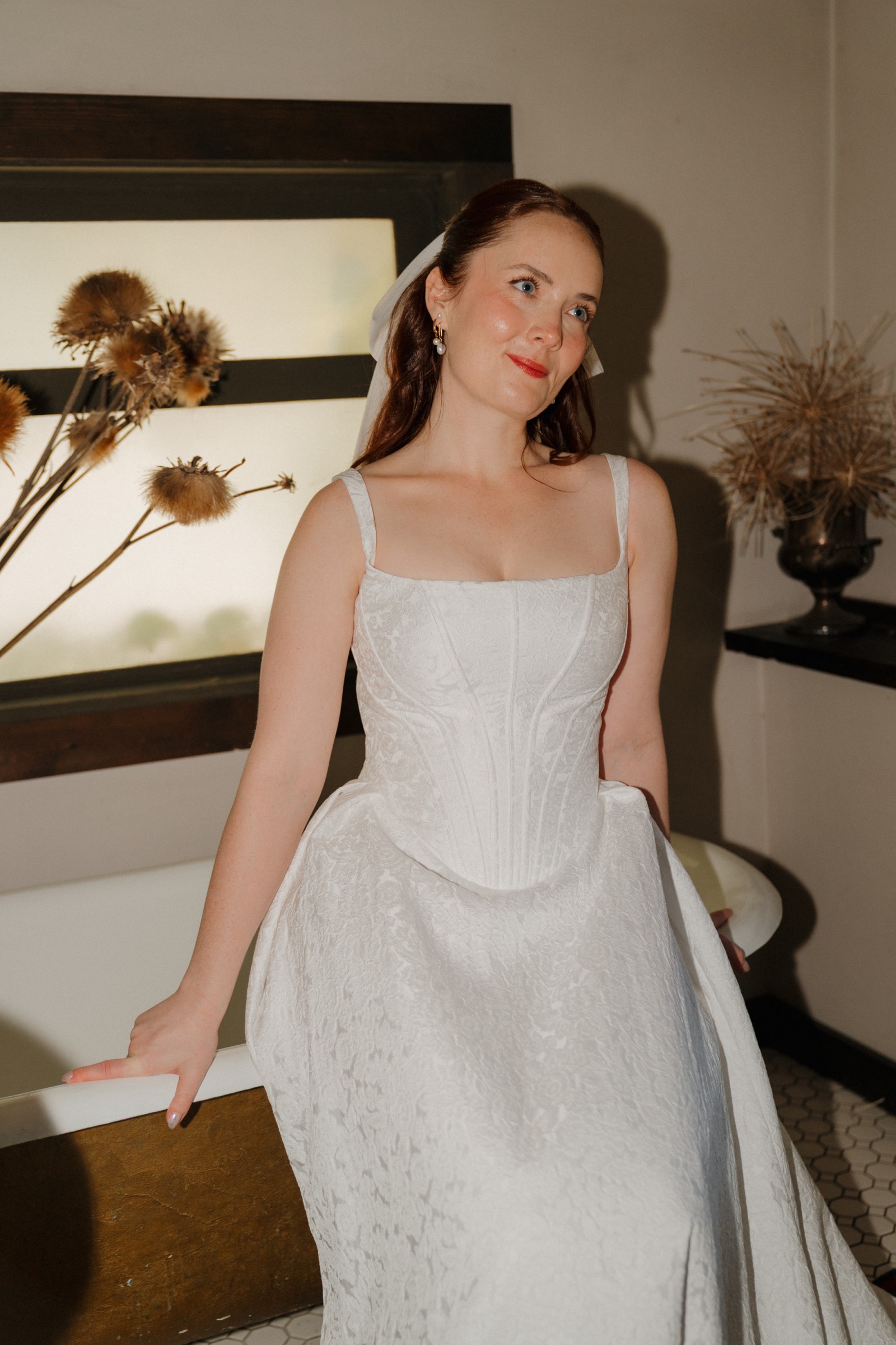 This Juliette dress by Enaura is the perfect embodiment of elegance and romance for your special day. From the moment I slipped it on, I felt like the most beautiful version of myself. The A-line silhouette creates a timeless and flattering shape, and the square neckline adds a touch of modern sophistication.