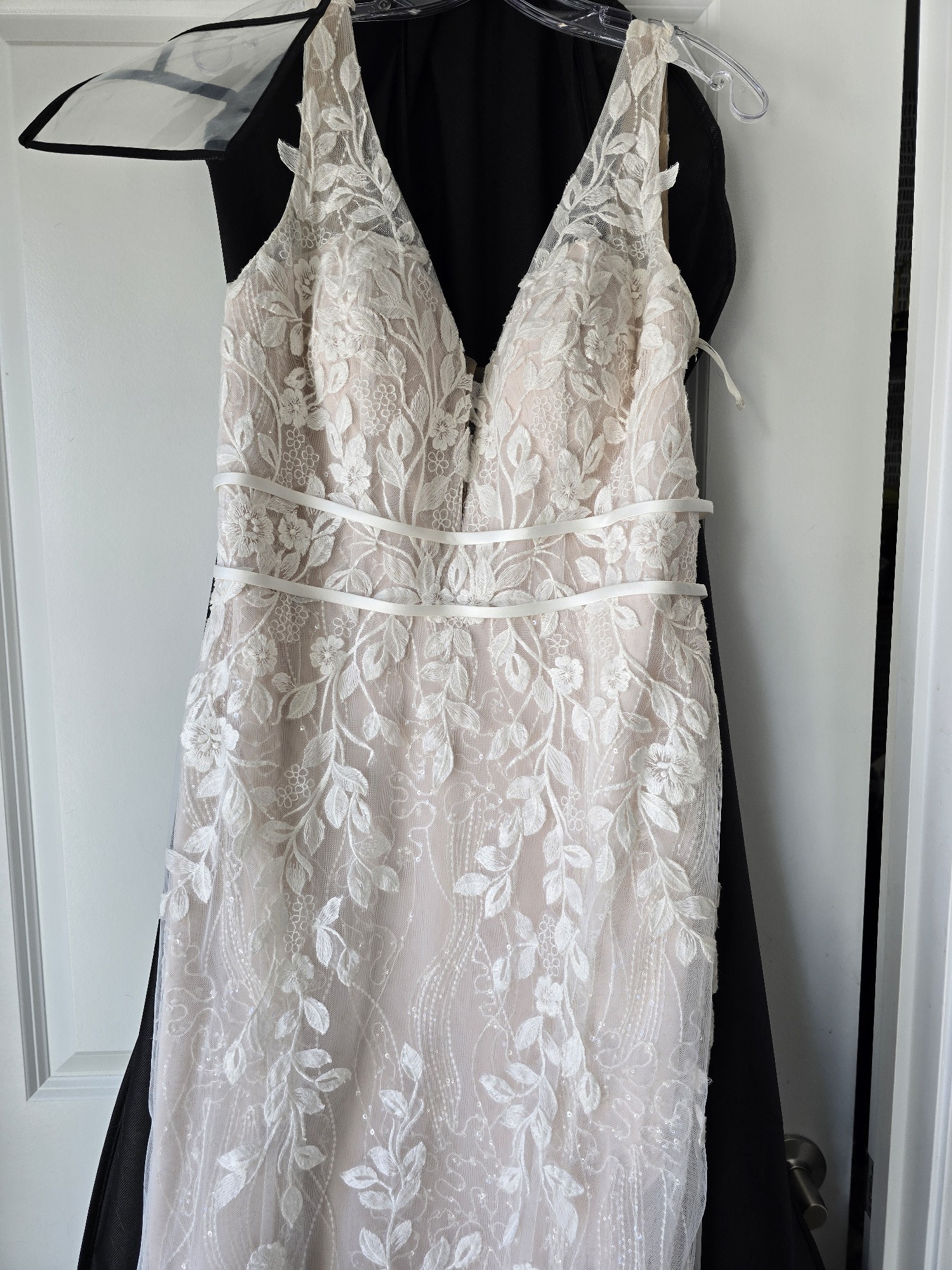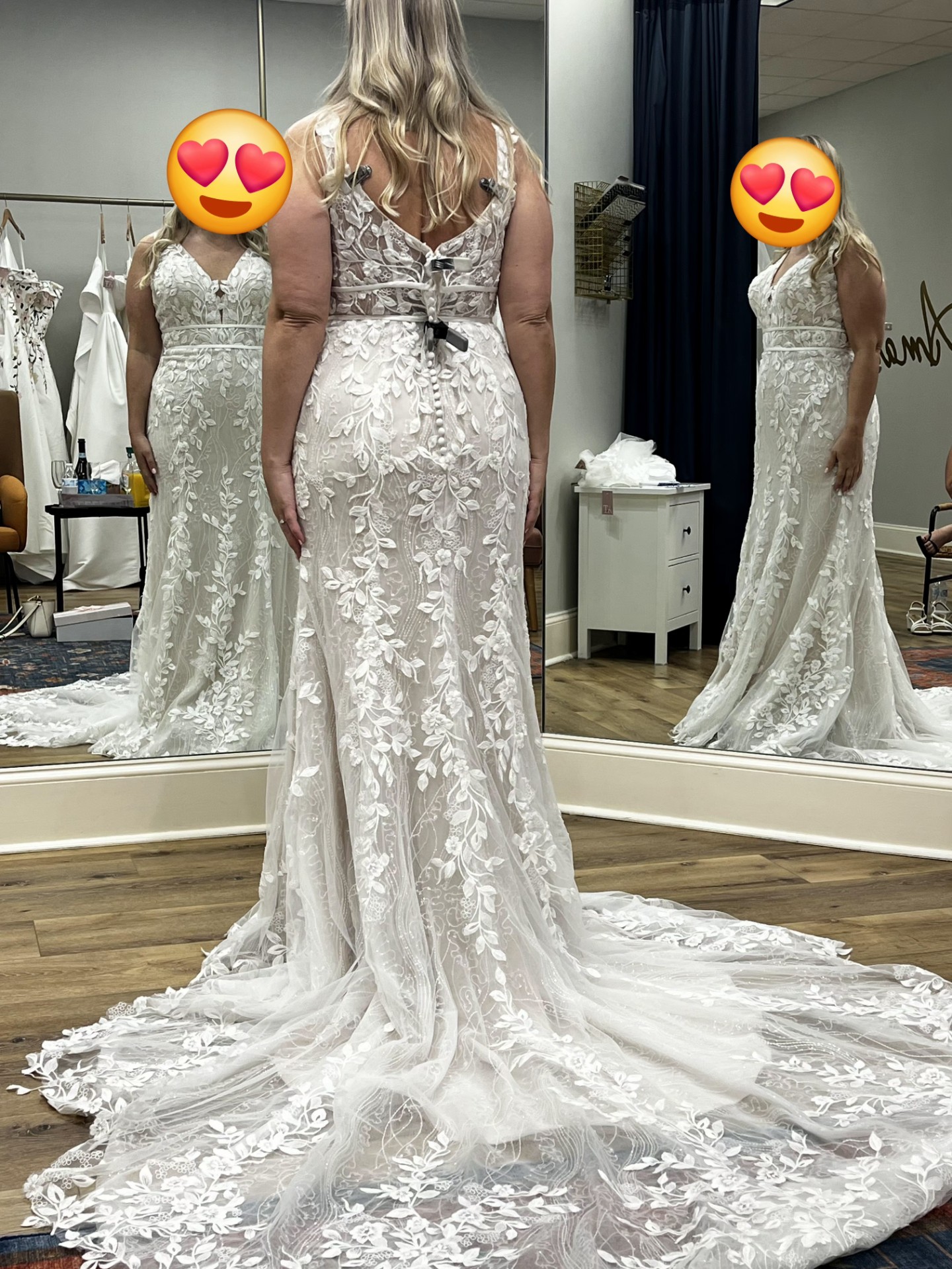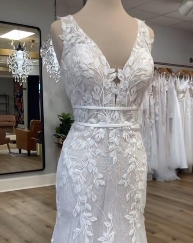 This Raelynn dress holds a special place in my heart, and I’m excited to share it with another bride who will love it as much as I did. It has a flattering A-Line silhouette and elegant V-Neck. I absolutely loved this dress. I feel in love as soon as I put it on. It has very flattering structure. I didn't end up wearing it only because we changed our date to a cooler month. I promise you will love it. It has stunning details that are difficult to show via pictures.