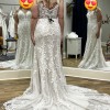 This dress is a size 16 and fits like a 14, can also be altered to a size 12. No alterations were done. The train is very long and absolutely beautiful, it has many special details.