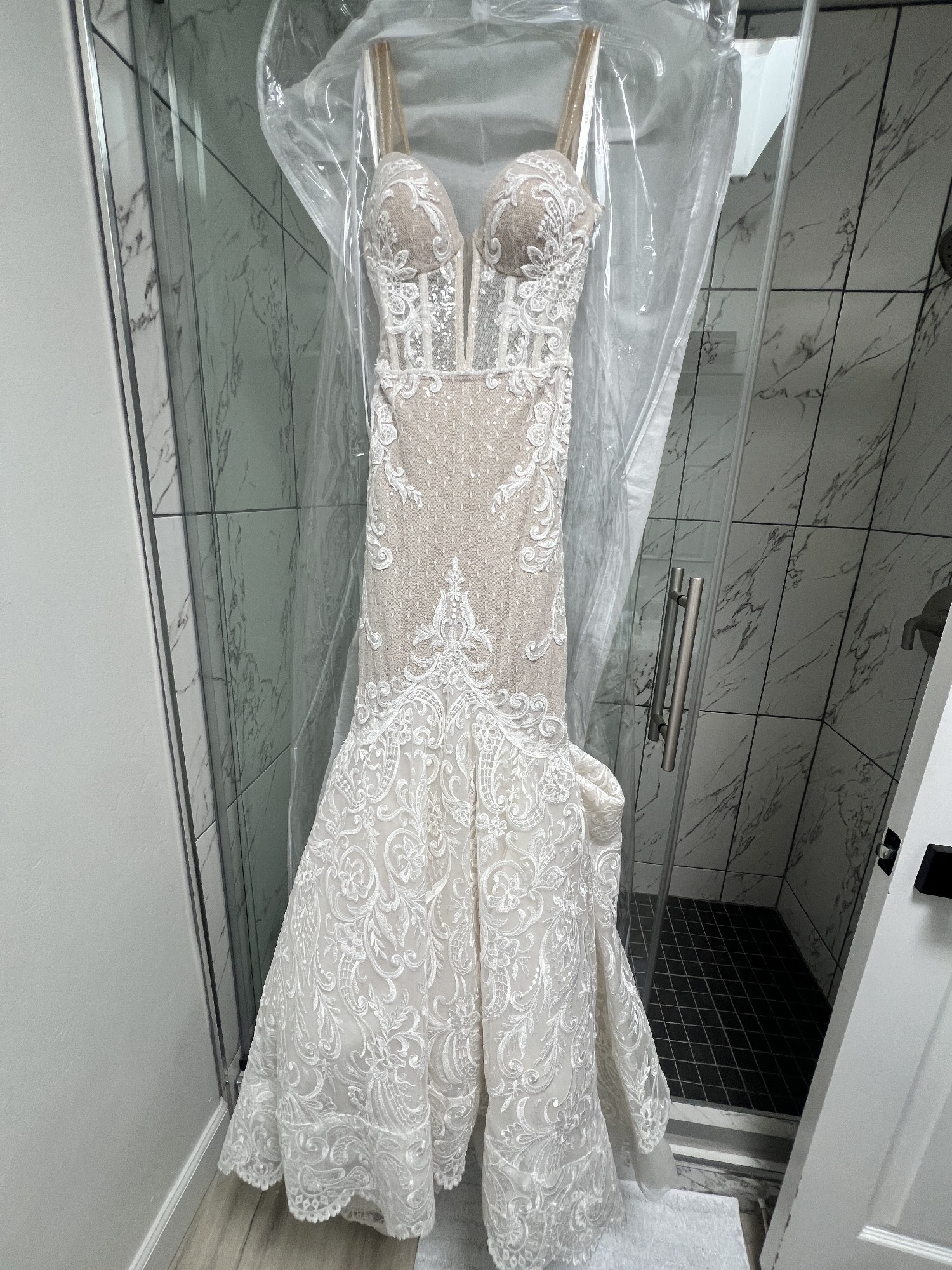 This exquisite Berta Privee wedding dress was the highlight of my special day, and I'm excited to pass it on to another bride who will cherish it as much as I did. The fit and flare silhouette beautifully accentuates the body, while the sweetheart neckline adds a romantic touch, making you feel both elegant and confident as you walk down the aisle.