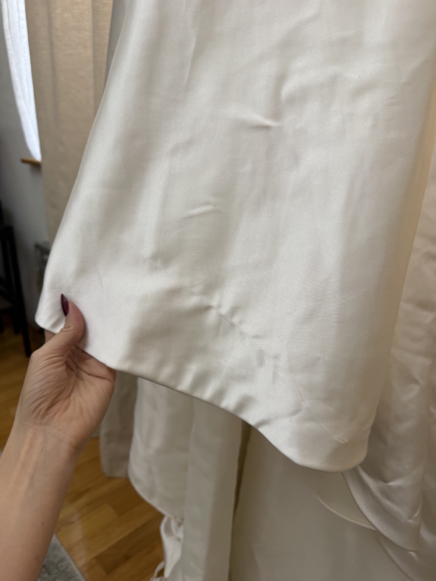 - • One pulled thread near lower side, not visible when worn and will be eliminated with hemming/tailoring