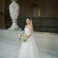 The gown is designed for a romantic yet contemporary look. Retailed for $7,999.00 plus tax. It was worn once for my wedding at city hall with just family (12 people) -- so it did not have a big, crazy night out, no dancing or sweating so it is in fantastic shape ◡̈.