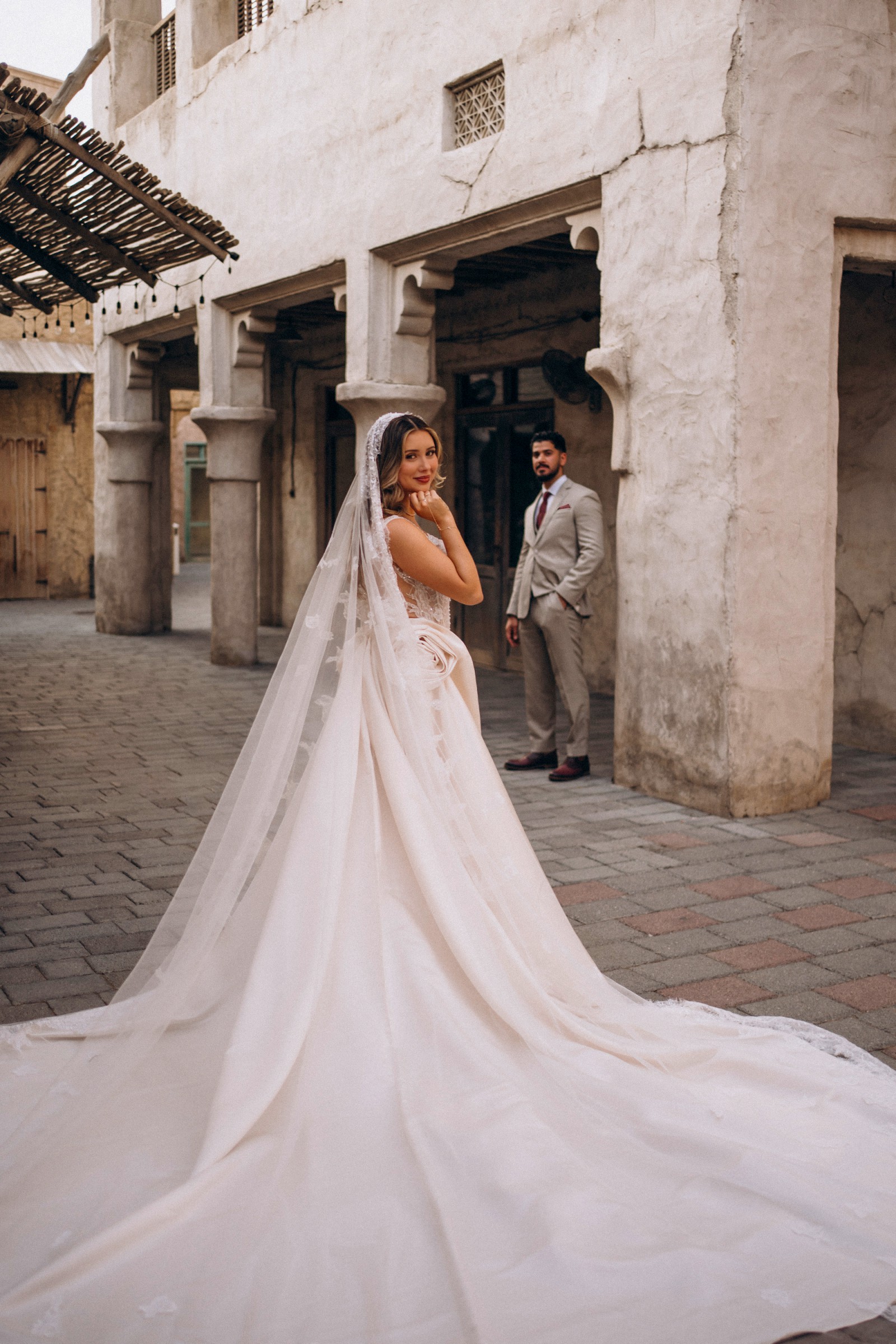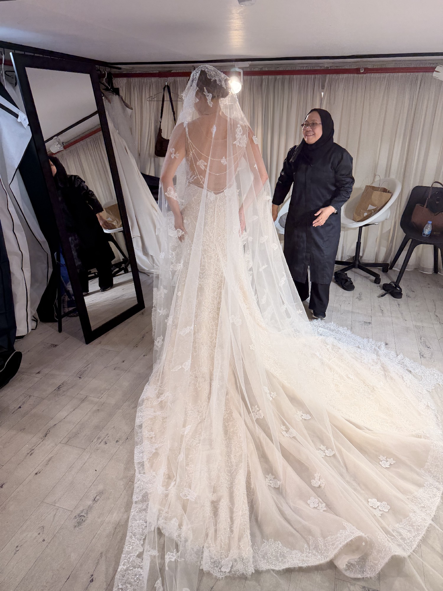 Custom-made couture wedding dress inspired by high-fashion European bridal design. Luxe structure, dramatic silhouette, and intricate detailing — perfect for the bride who wants a Galia Lahav look without the $15k+ price tag. Includes the dress, skirt attachment and veil!