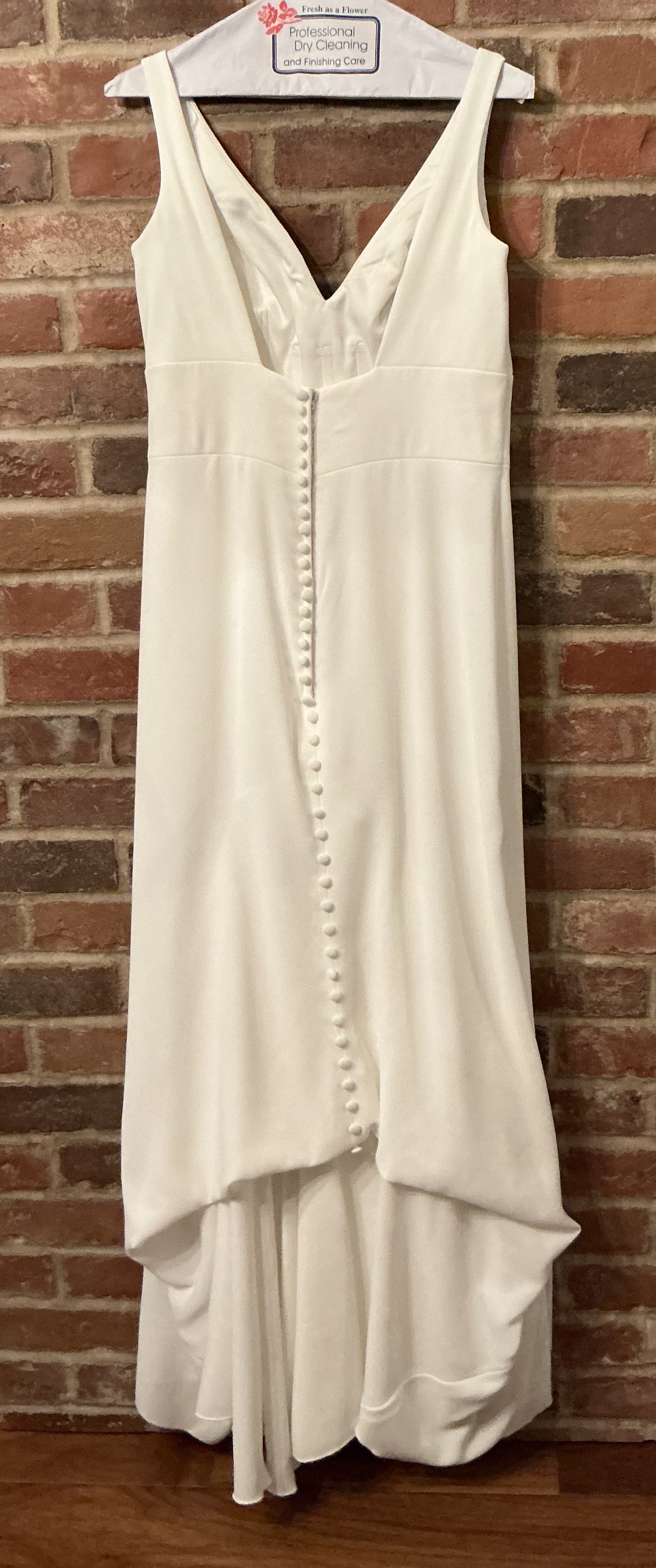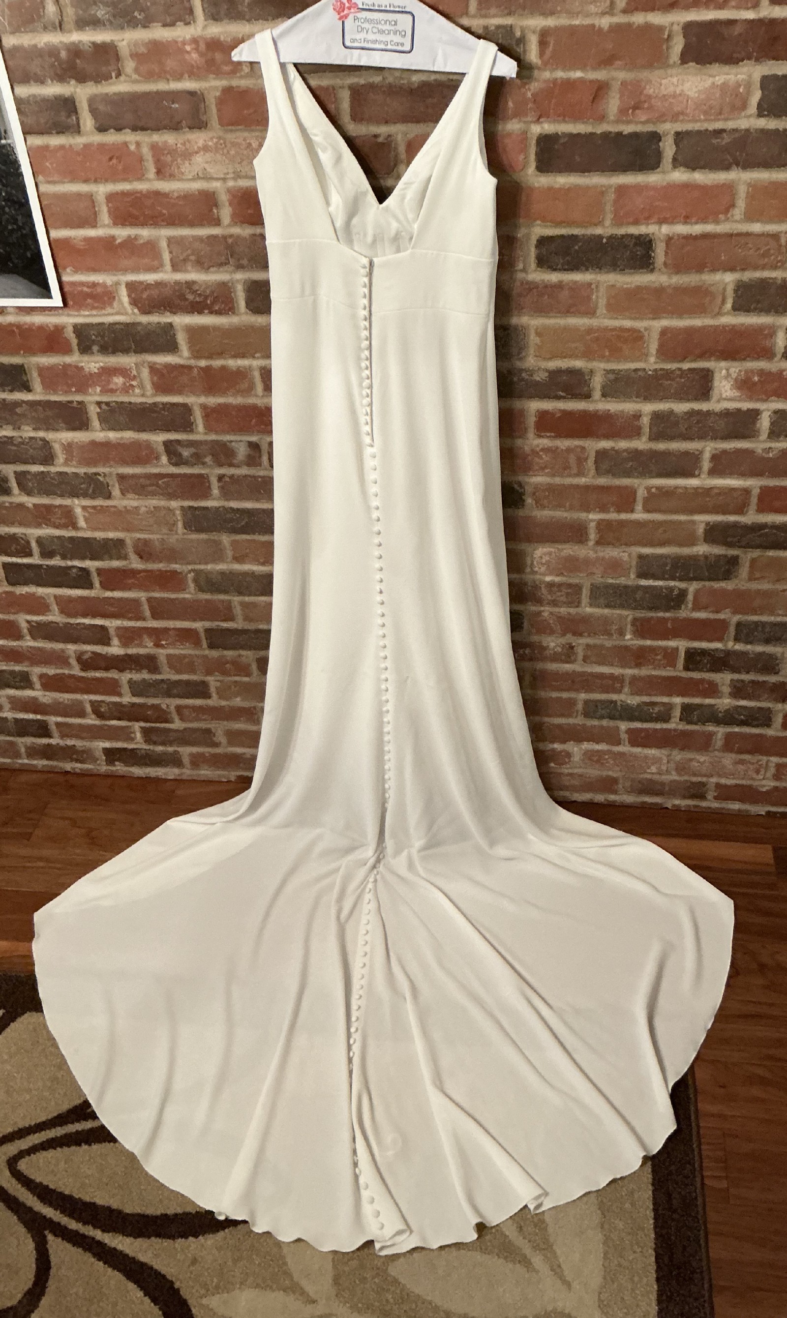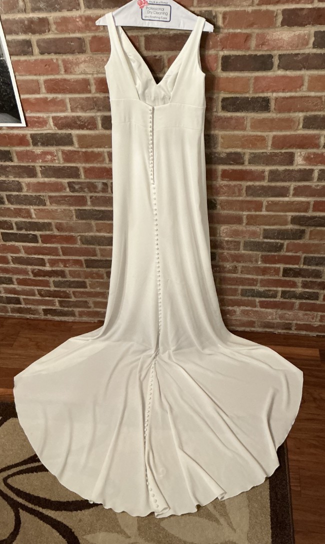 Worn once for my wedding in November 2024 and professionally dry cleaned. The dress is in excellent condition. There are extremely minor signs of wear around the hemline that would only be noticeable upon very close inspection. Overall, the gown presents beautifully and is ready to wear.