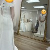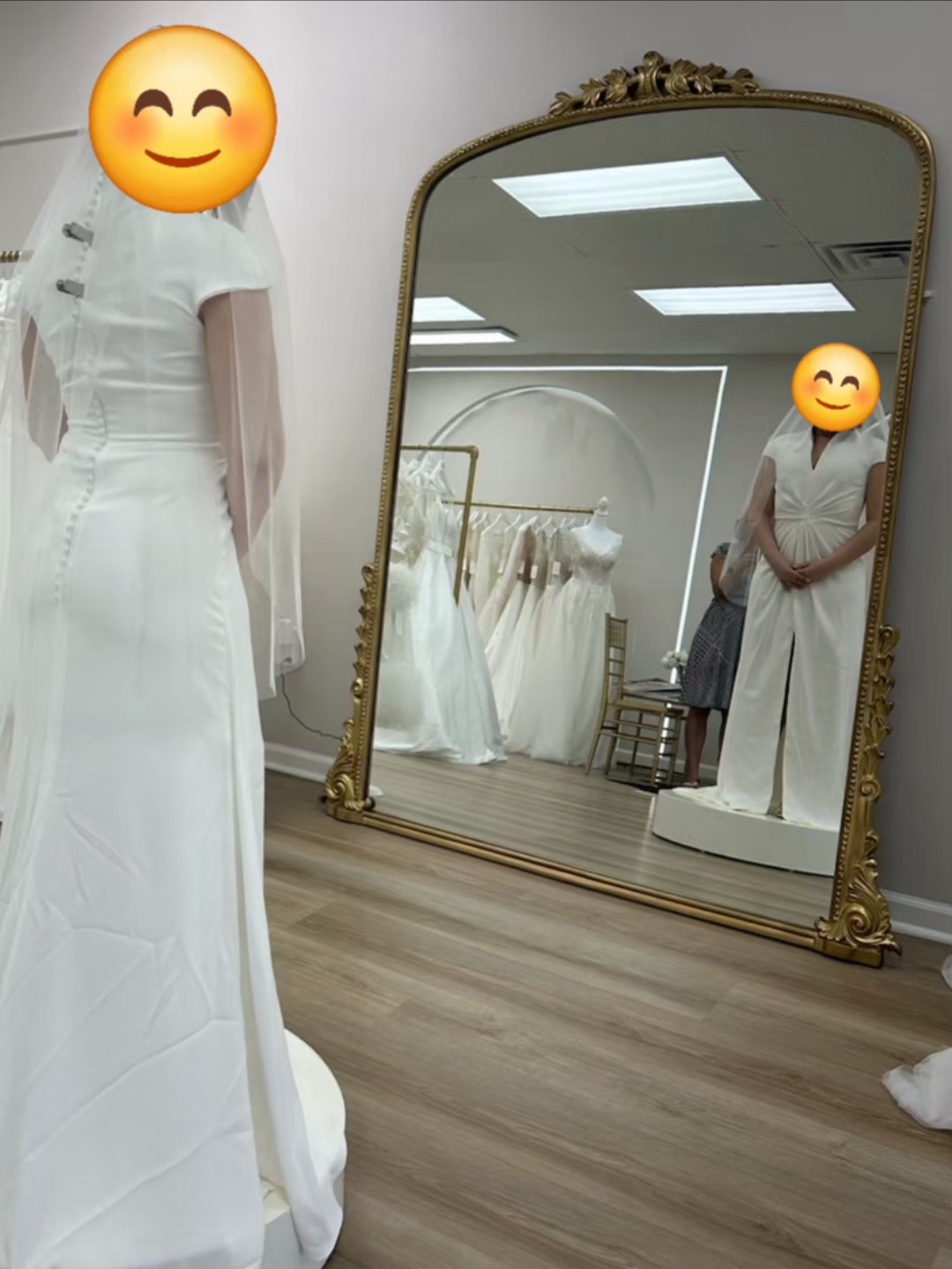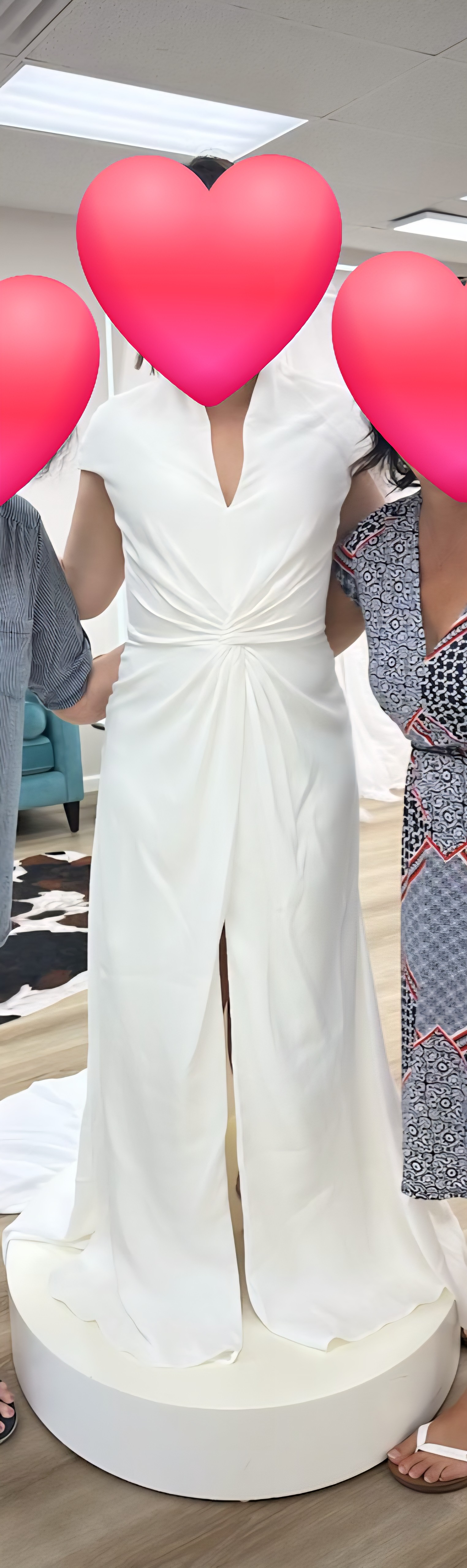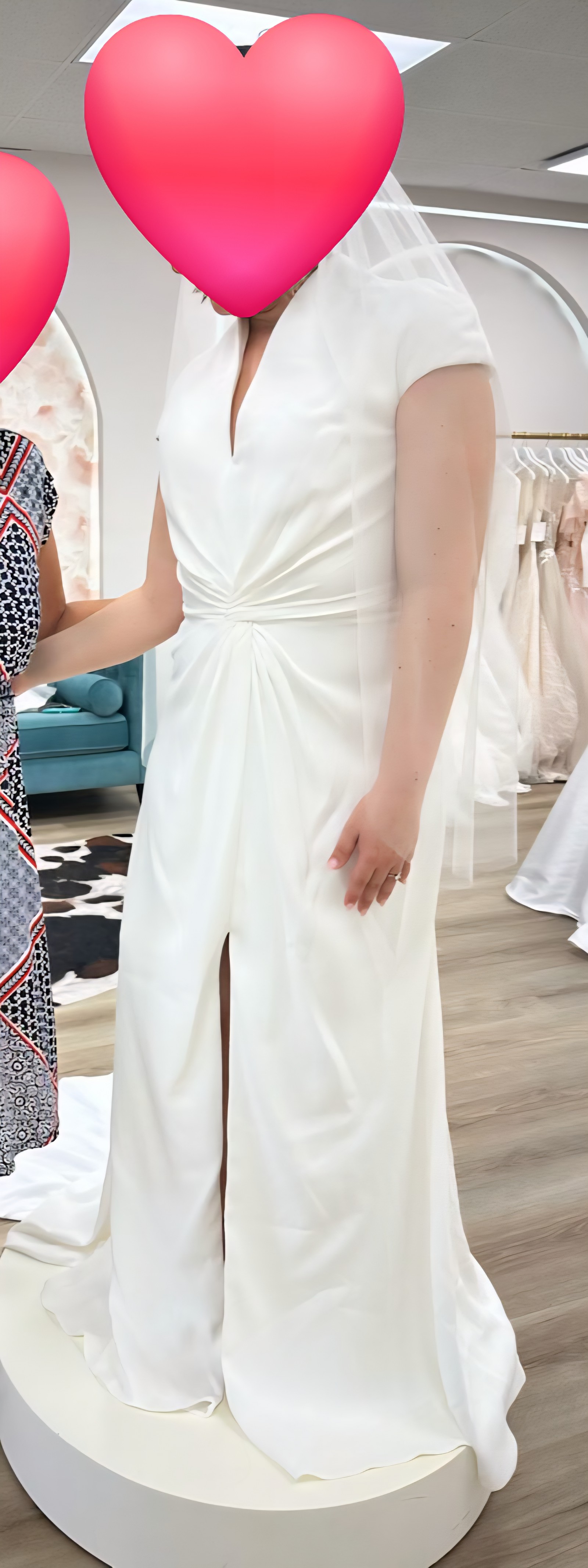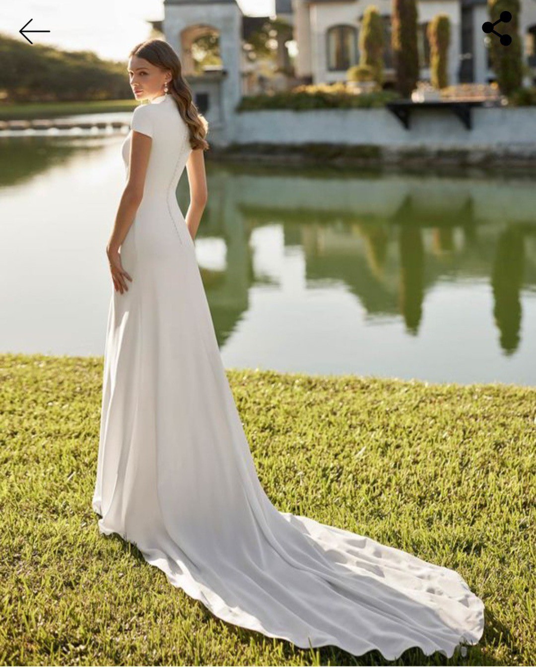 This is a Rosa Clara Ebano 2024 collection crepe material dress. Truly stunning. Never worn after purchase and never altered. Great for the elegant and sophisticated bride. Rosa Clara is a Spain-based designer brand. Ordered from a bridal shop that specializes in European bridal brands. Since this is a 2024 design, I was told at the time of purchase that this specific design was slated to be discontinued/very hard to find.