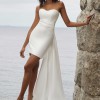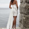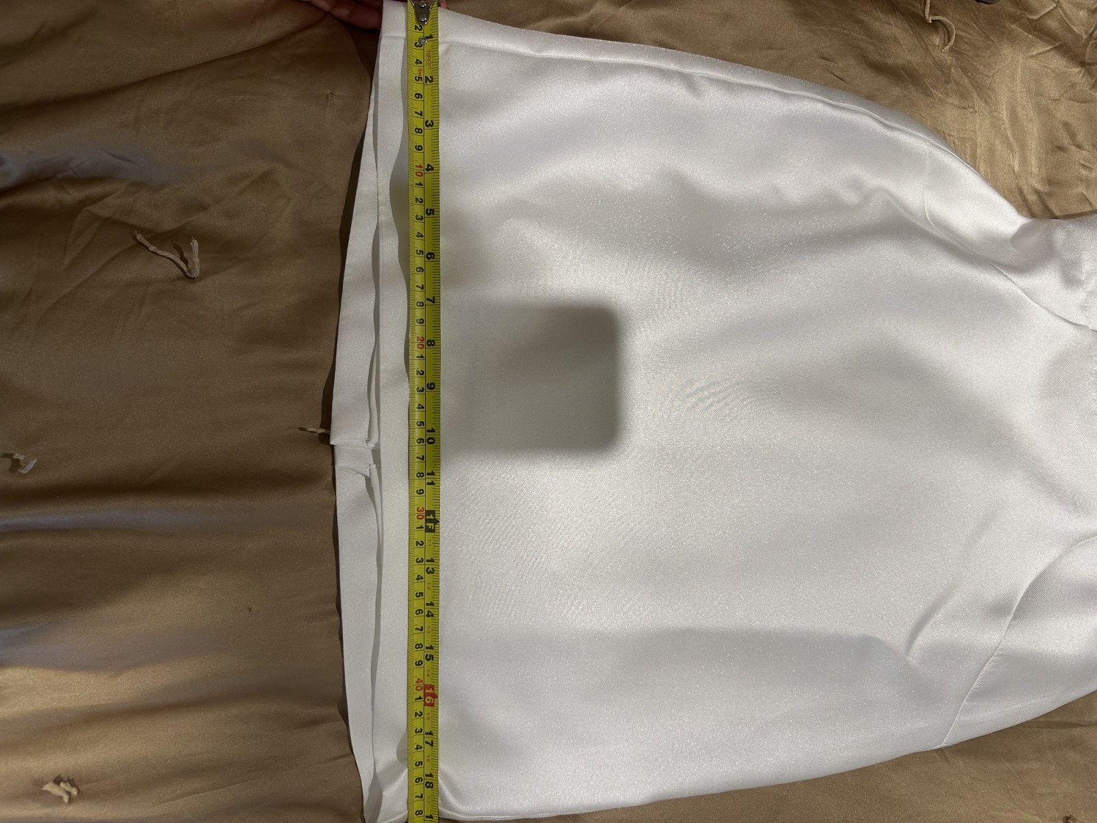 From the Morilee website: "Our Nikita designer wedding dress is here to make power moves. The chic short dress looks luxe in Larissa satin with a strapless, modified sweetheart neckline and detachable waist sash with streamers in back for added drama."