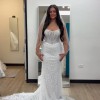 Detachable lace sleeves are included, allowing for two looks — an elegant off-shoulder style for the ceremony and a strapless look for the reception.