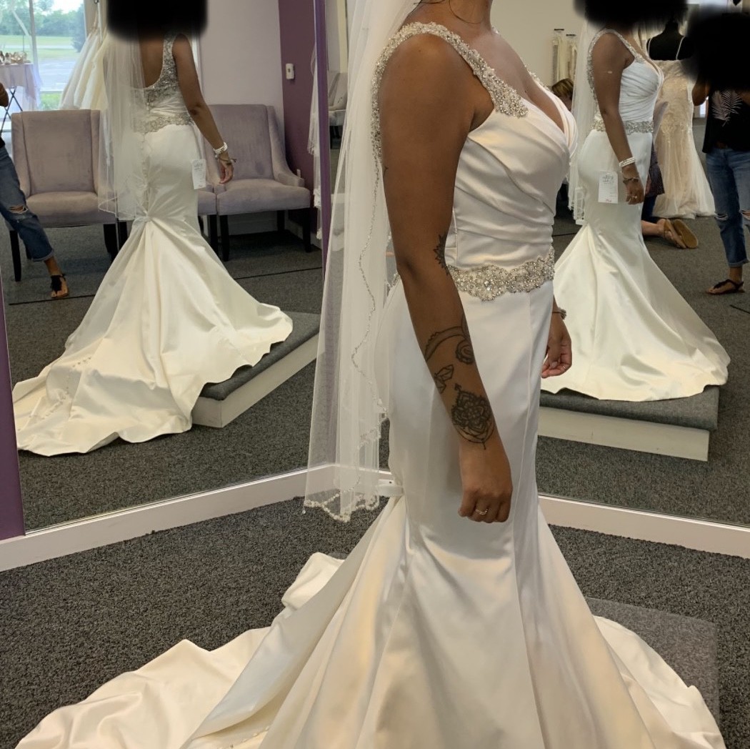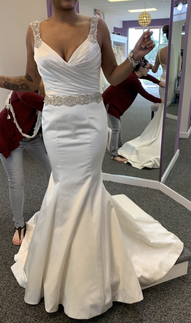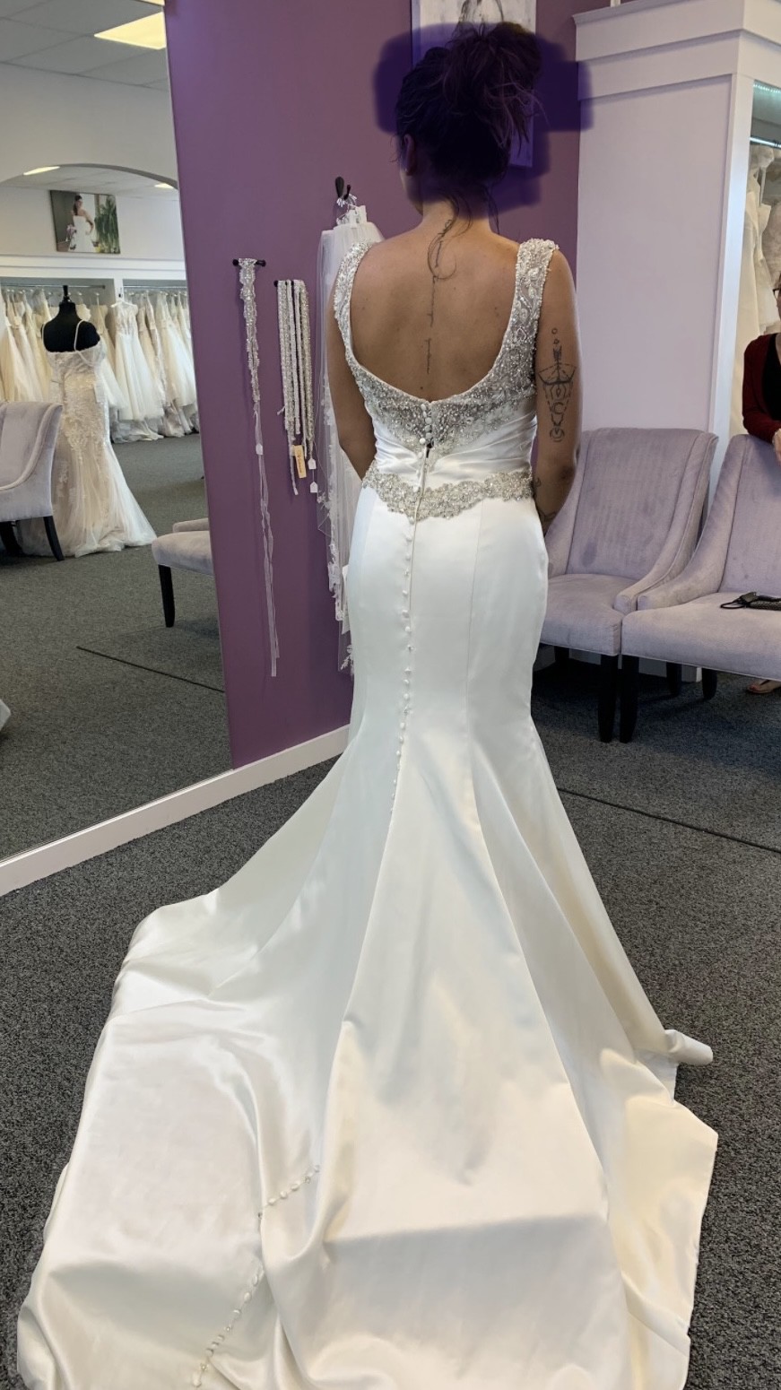 Swarovski crystals and ruched taffeta and the loveliest back. This is what dreams are made of.