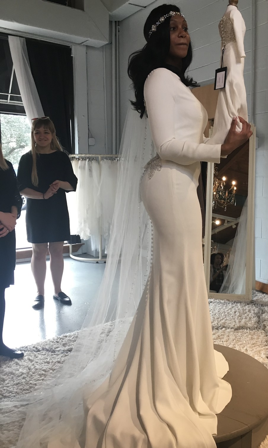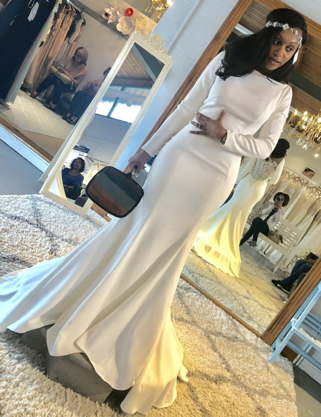 Justin Alexander, Crepe Long Sleeve Wedding Dress with Beaded Illusi
