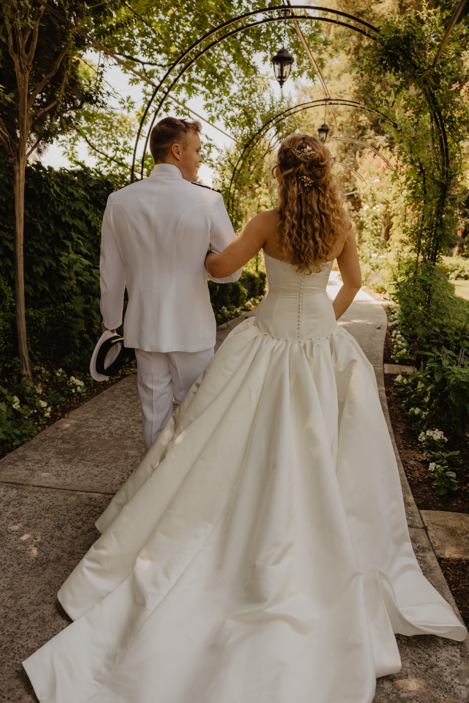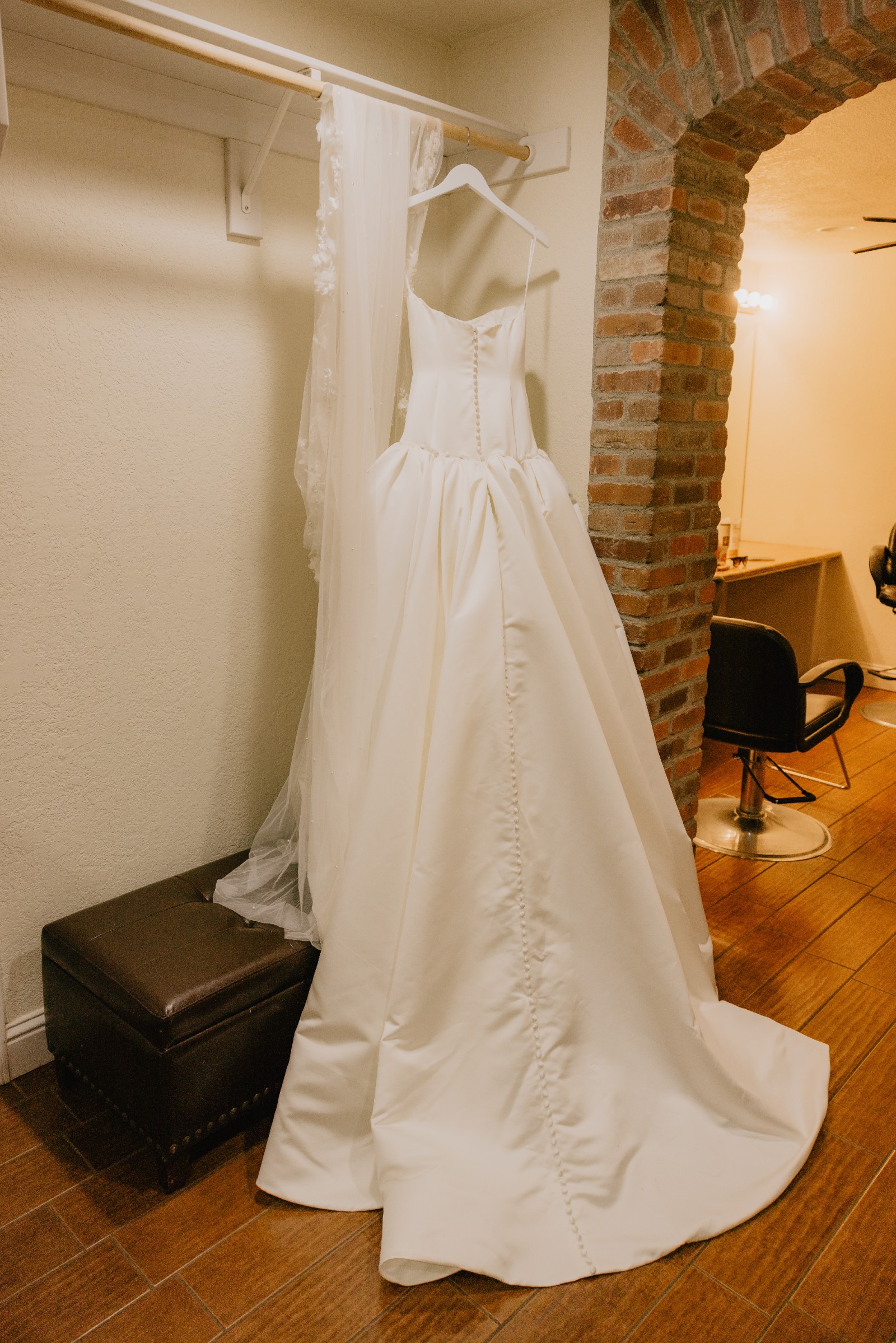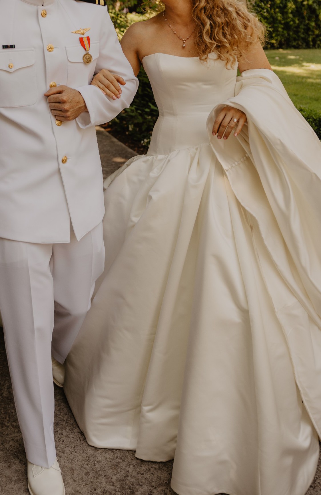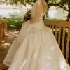 - Ballroom bustle added with silk buttons