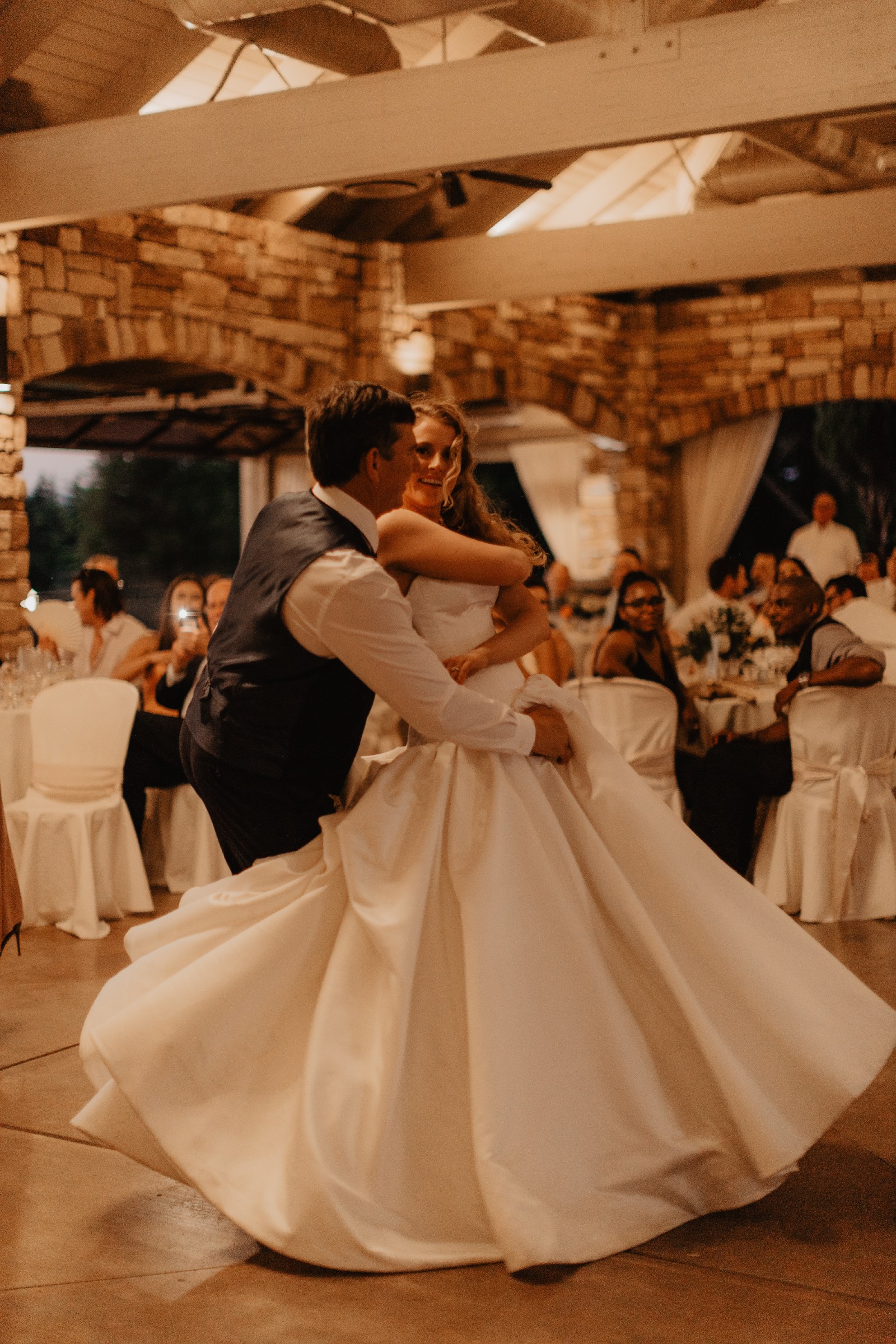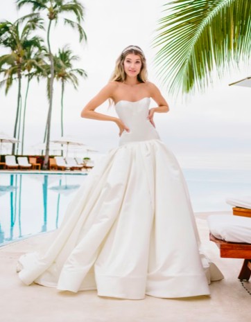 Gorgeous structured dropped waist gown that highlights glamour and movement. Worn for the wedding day, professionally cleaned and in good condition.