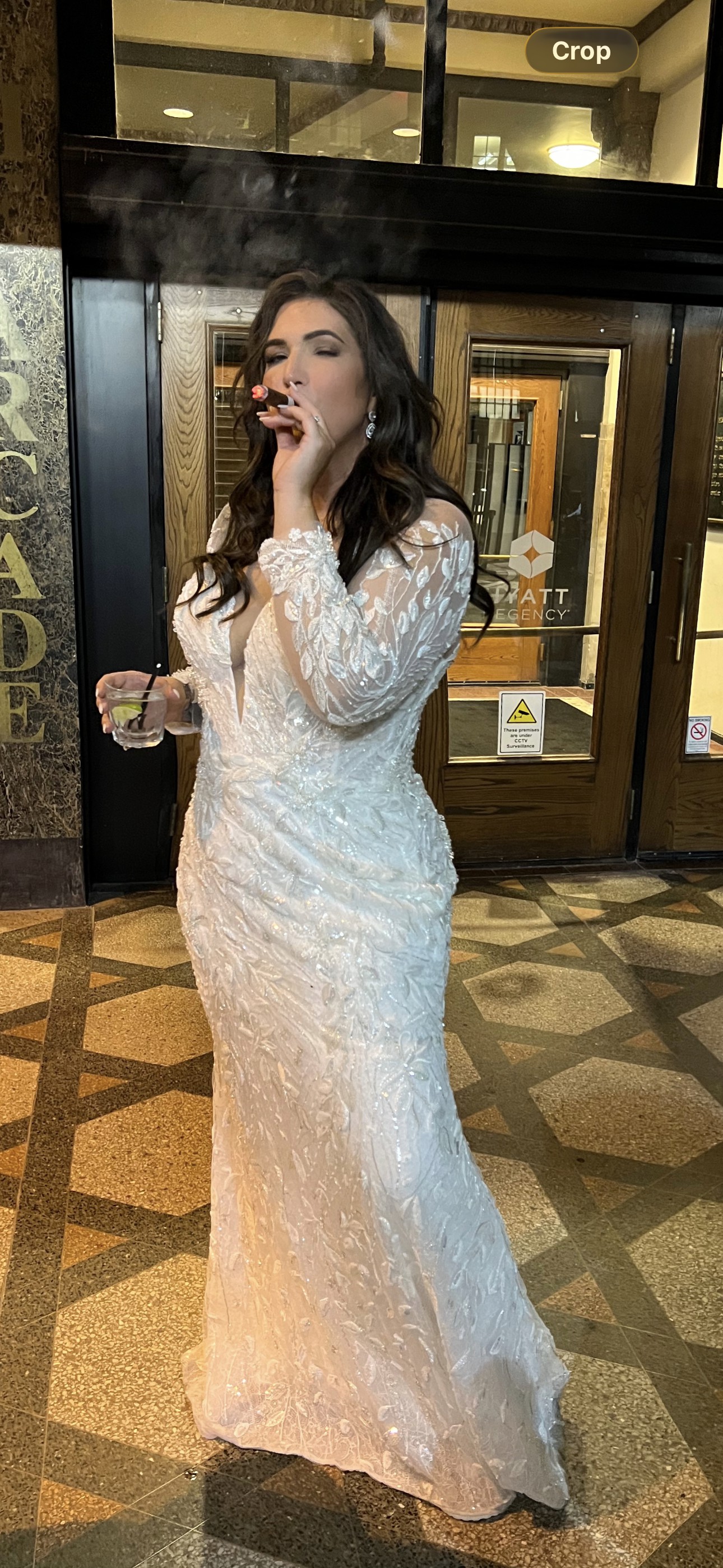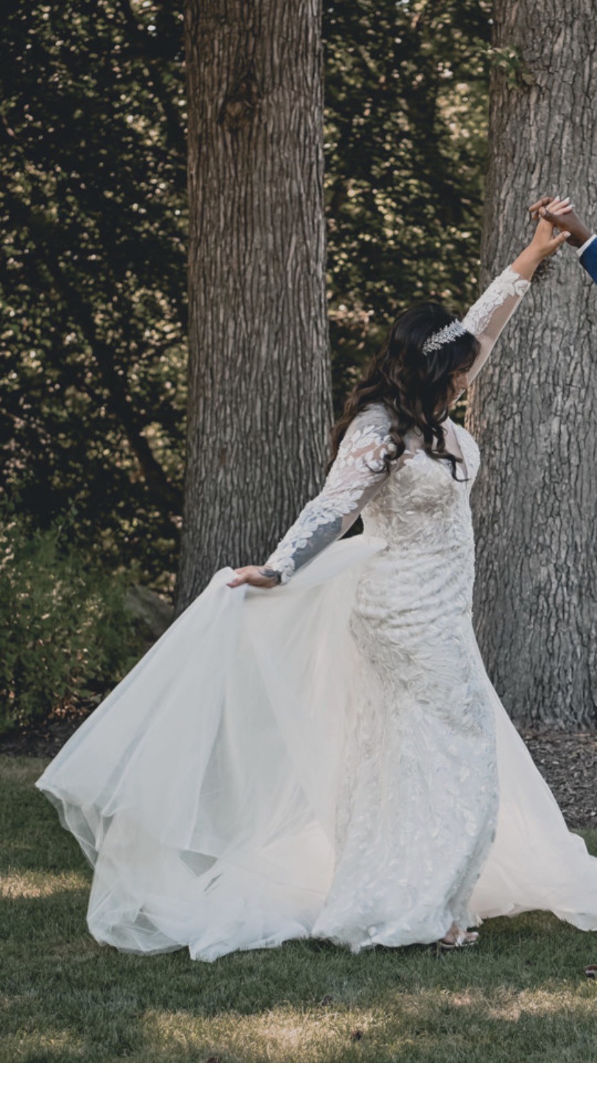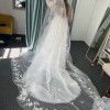 This dress is stunning and hand made. It comes with a detachable skirt and a cathedral length veil with Crystal detailing
