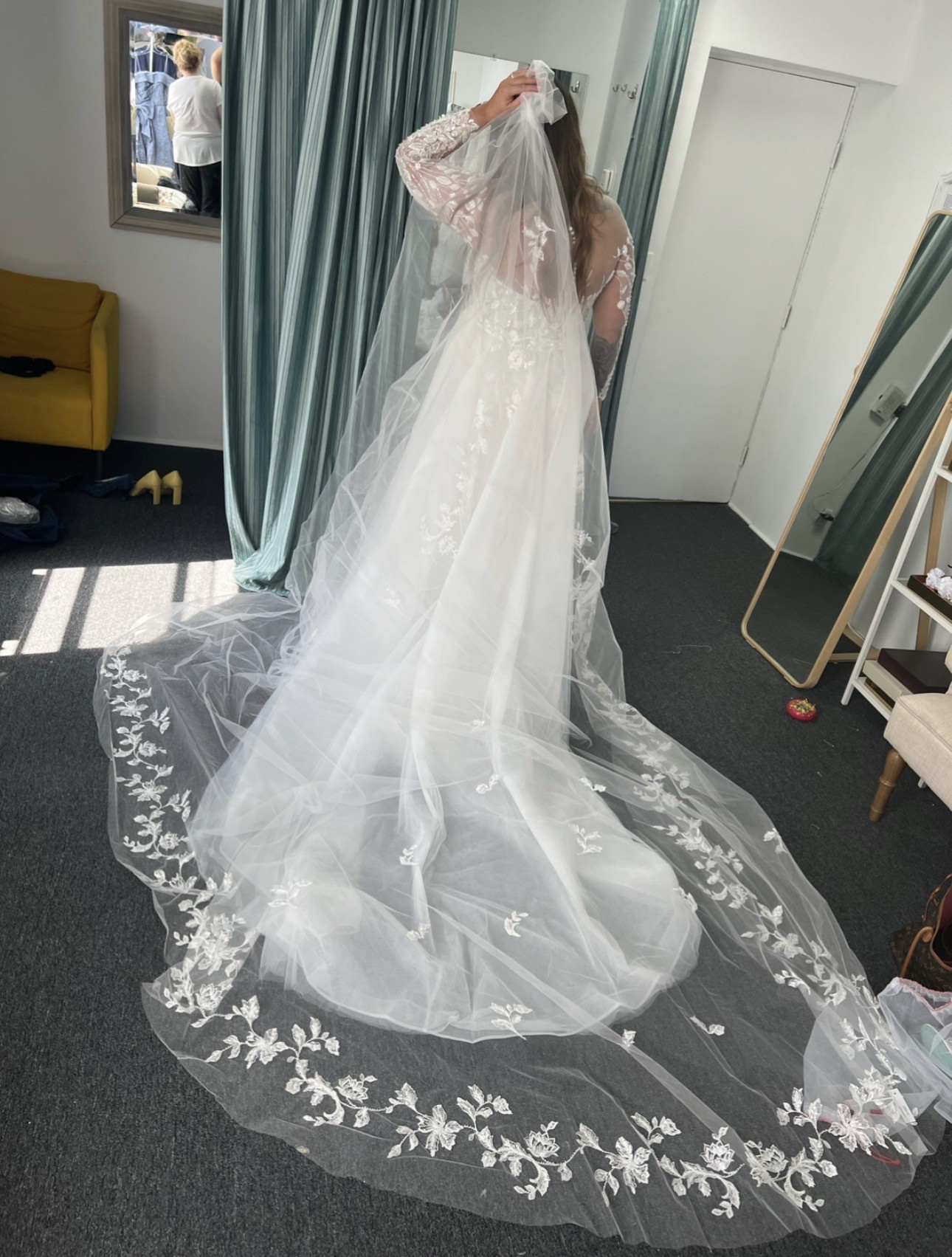 Originally paid $7,600 for the dress, veil and detachable skirt
