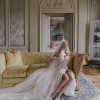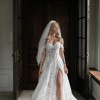 If you love the versatility of two-in-one gowns, meet sparkling sheer corset gown “Uma” that can be worn strapless or paired with a sharp-shouldered lace bolero. The high slit brings femininity and charm, while the intricate floral lace motif provides exquisite detail. With its A-line shape and long train, the beauty of Uma is endless.
