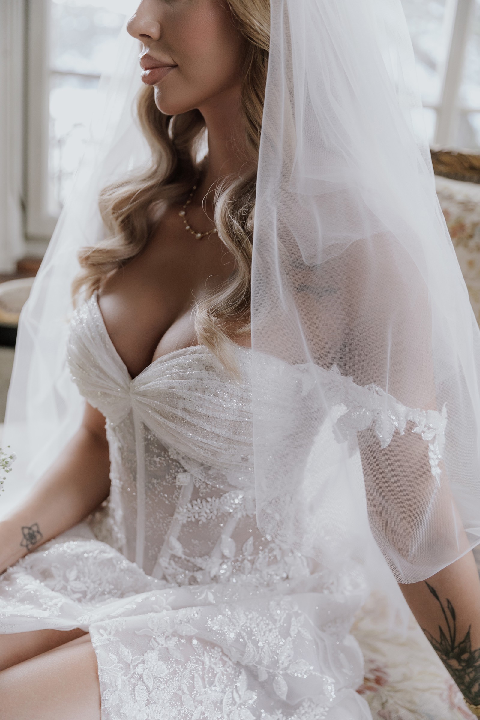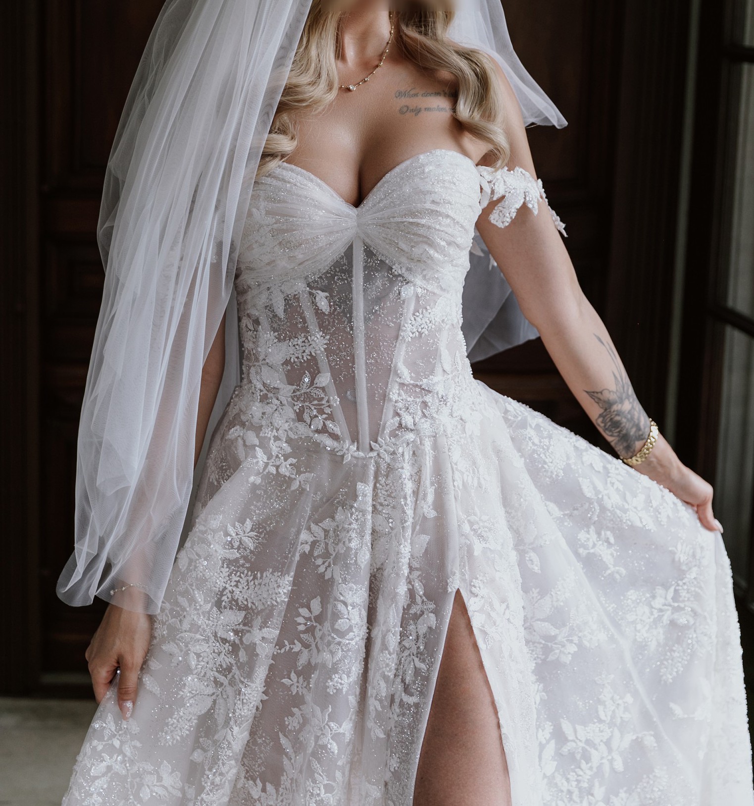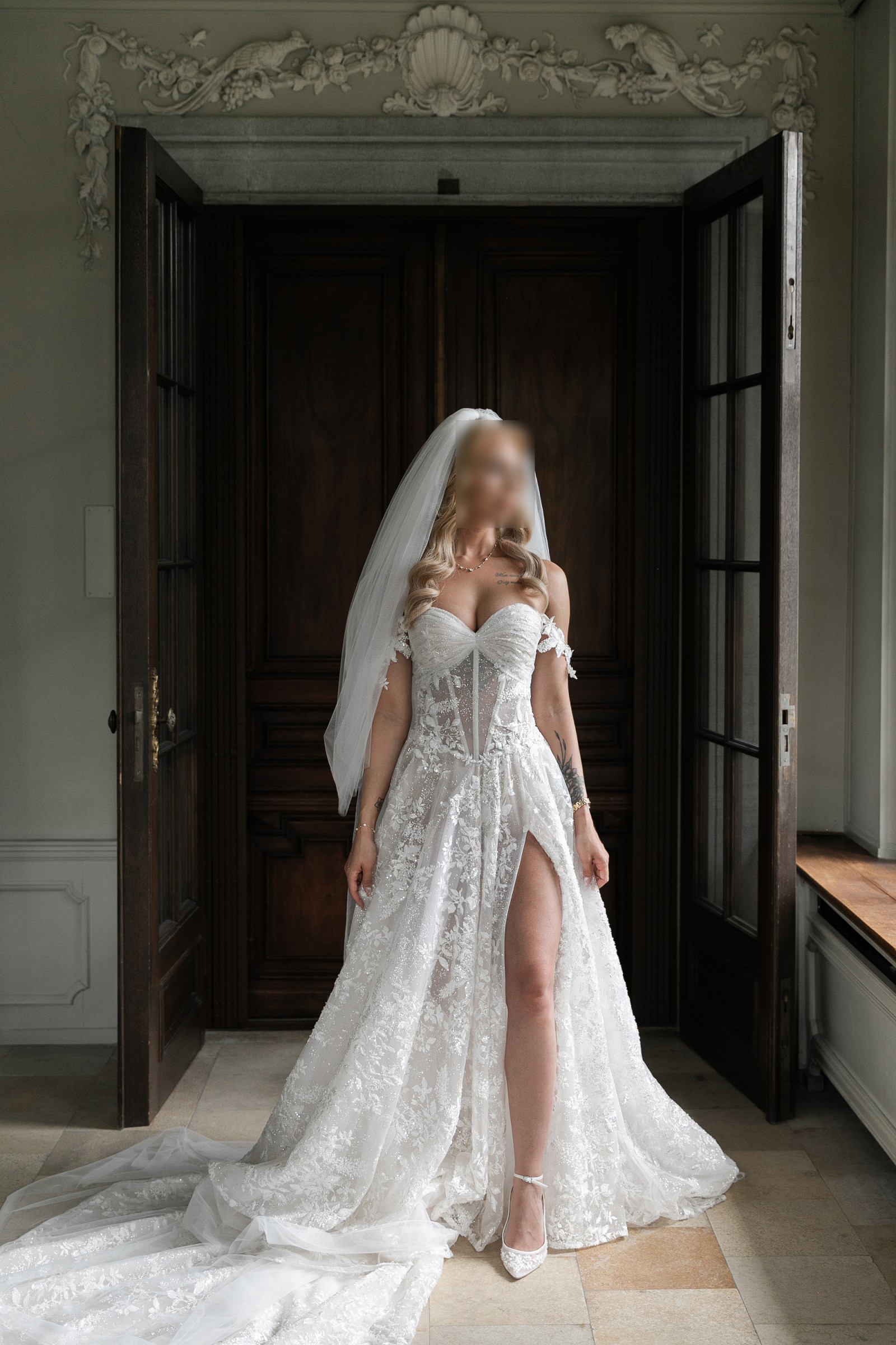 “Uma” was more than just a wedding dress to me — it was my absolute dream gown. The exceptional quality, the intricately crafted floral lace, and above all the structured corset create a breathtaking silhouette with a beautifully defined, narrow waist.