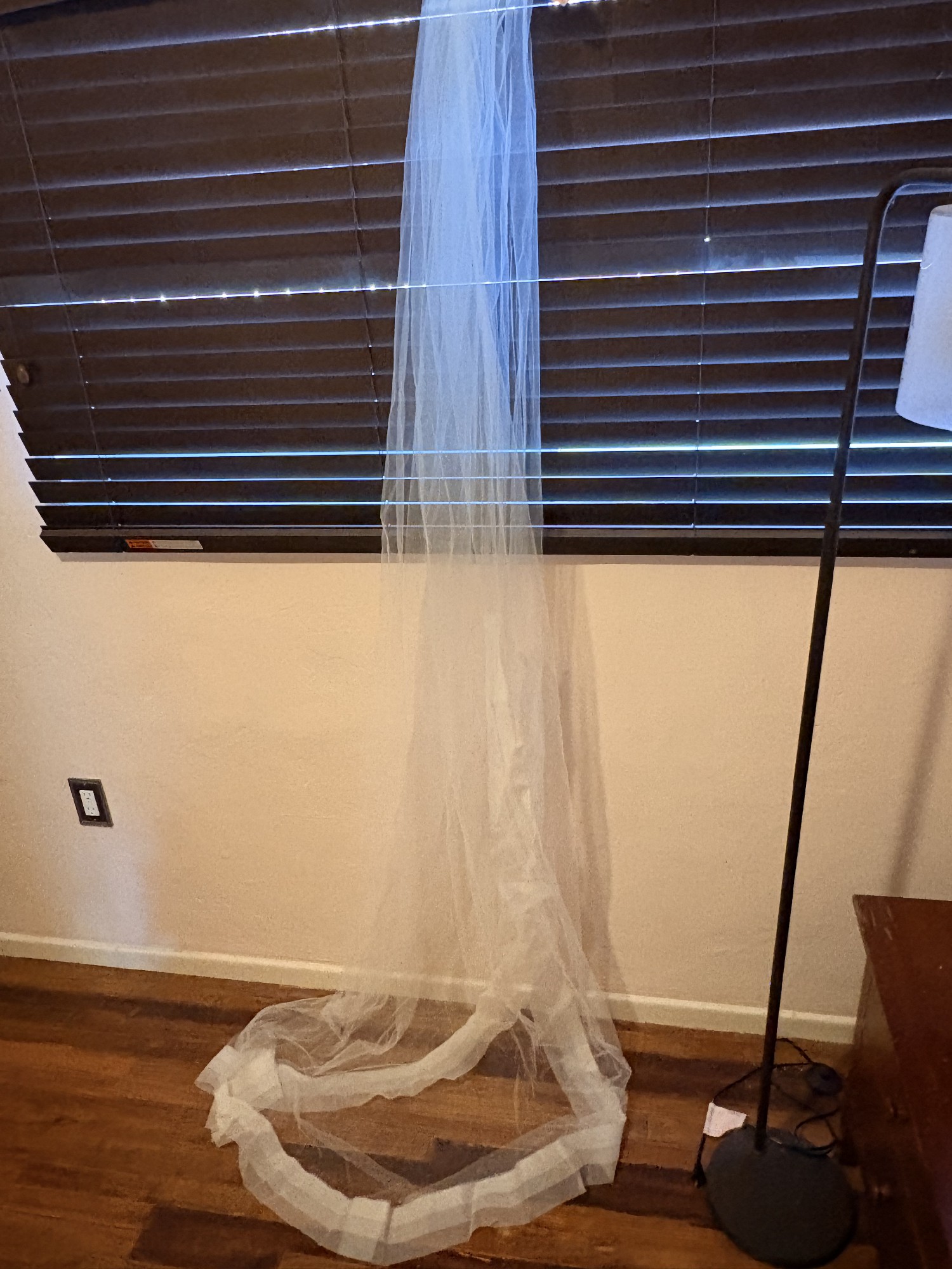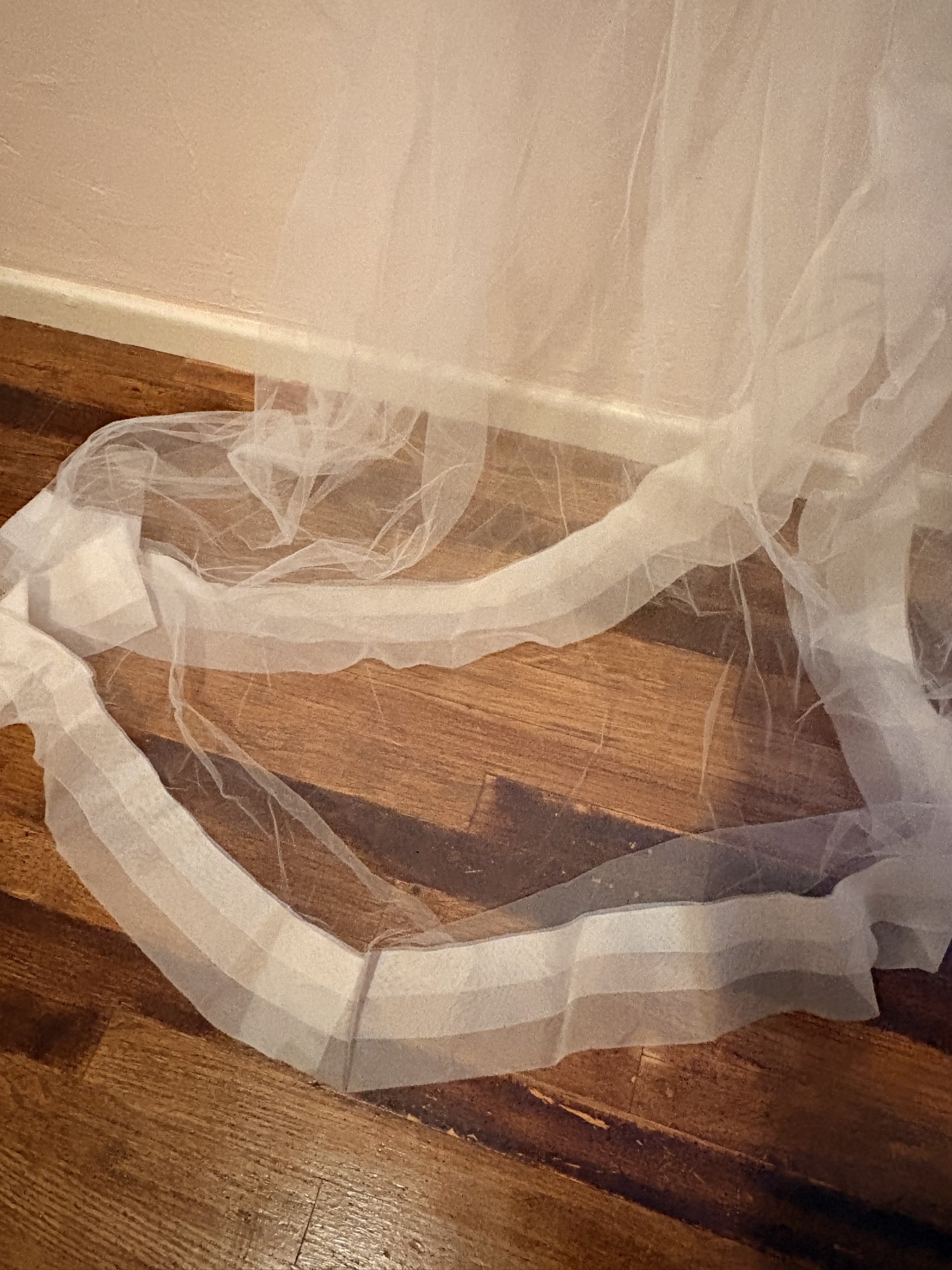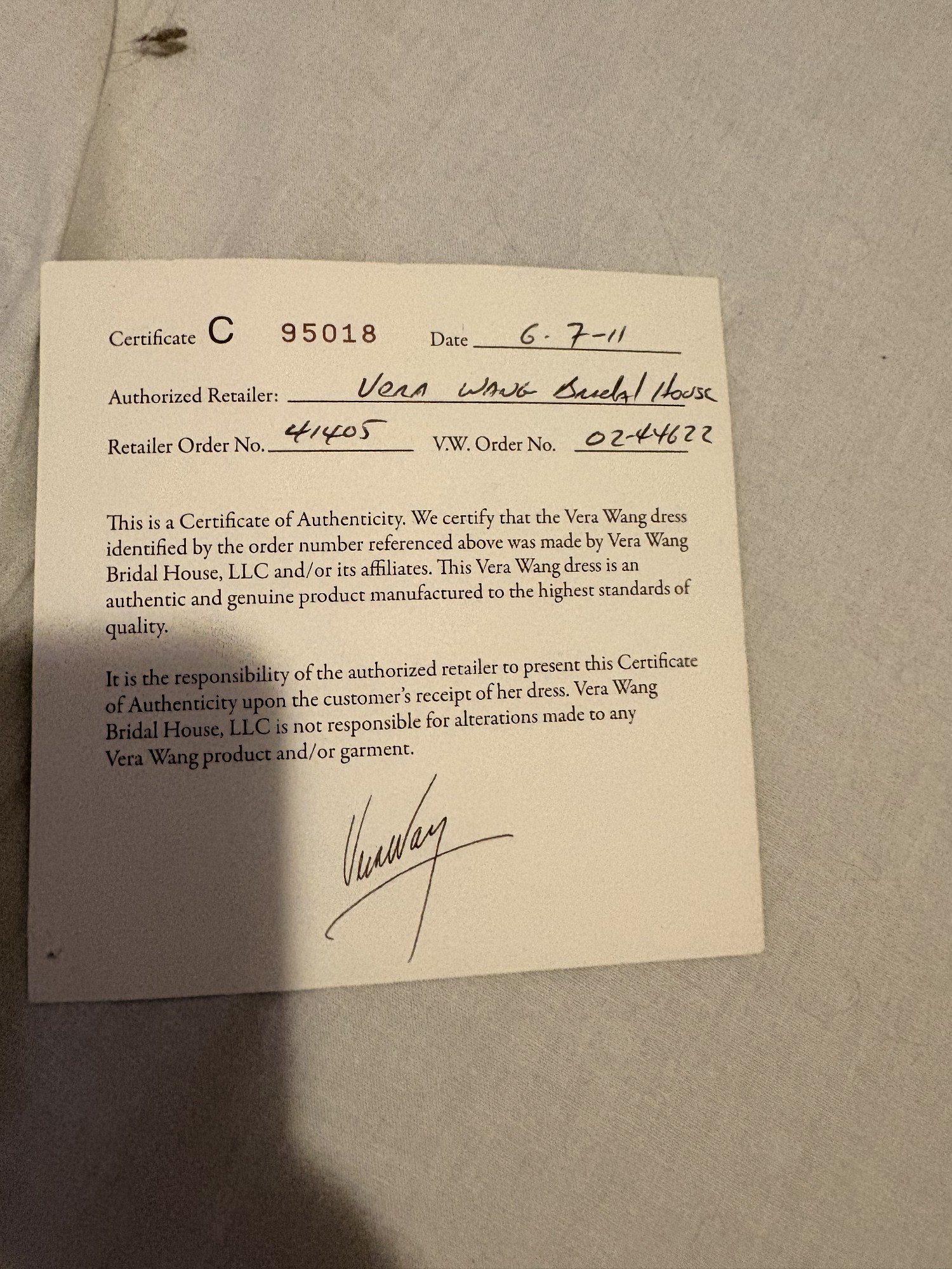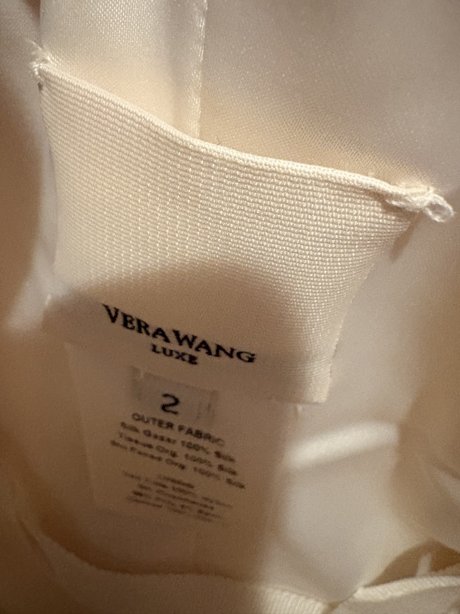 This dress has been modified to a sweetheart neckline. The bottom of the dress is torn and can be fixed during alterations. Otherwise it is in excellent condition.