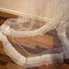 Fabric & Detail: Features organza lattice work and intricate, often hand-pieced Chantilly or Alençon lace appliqués.