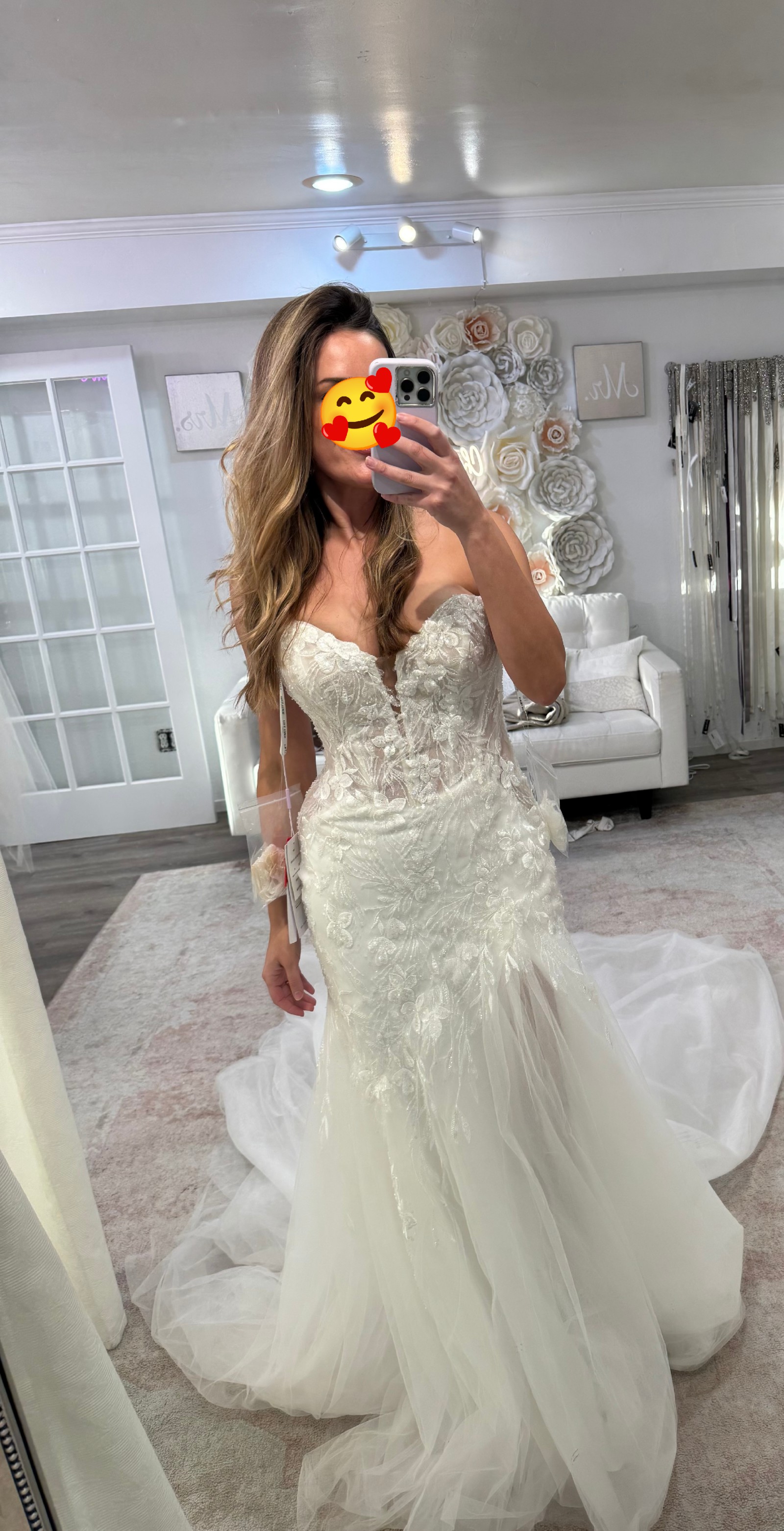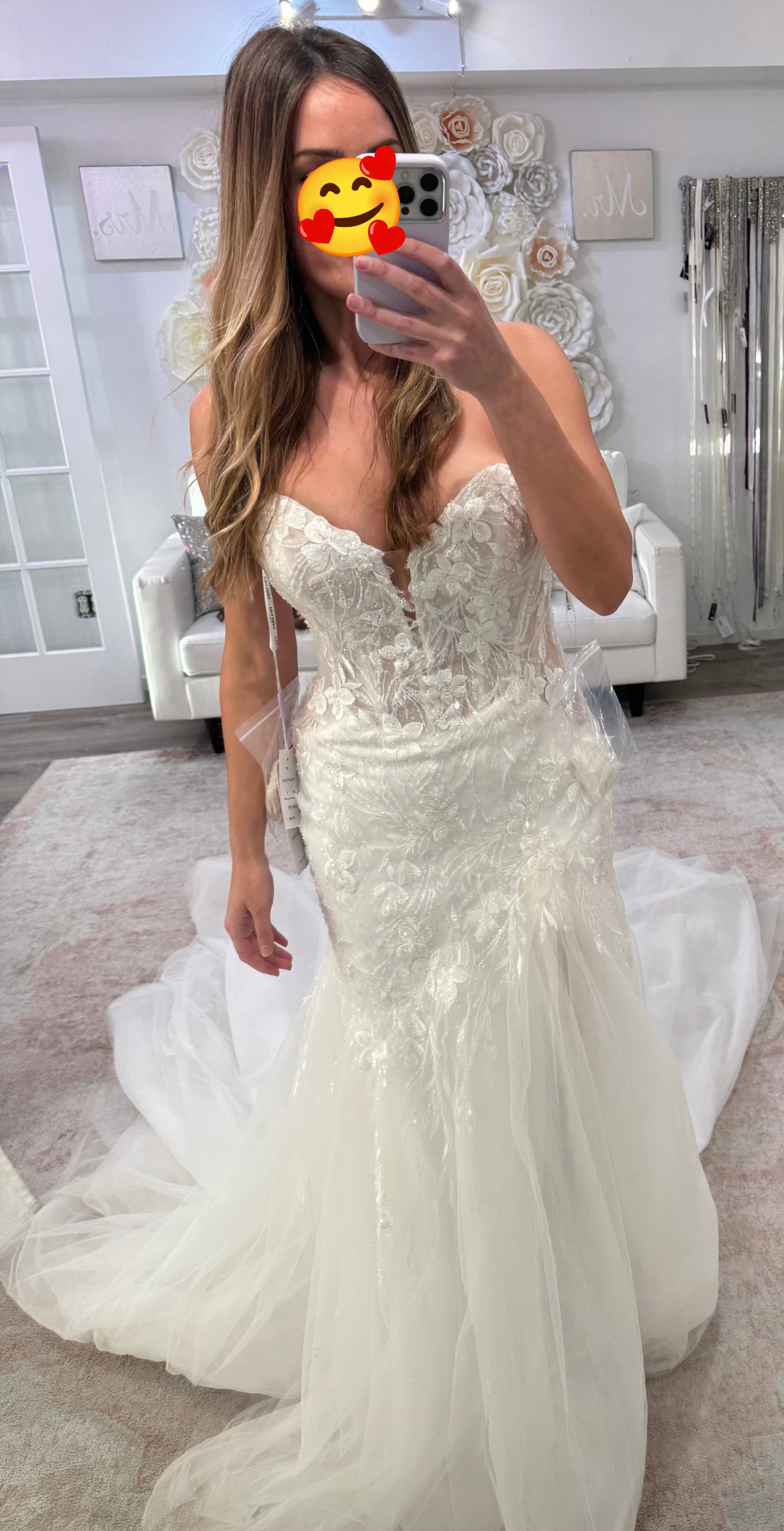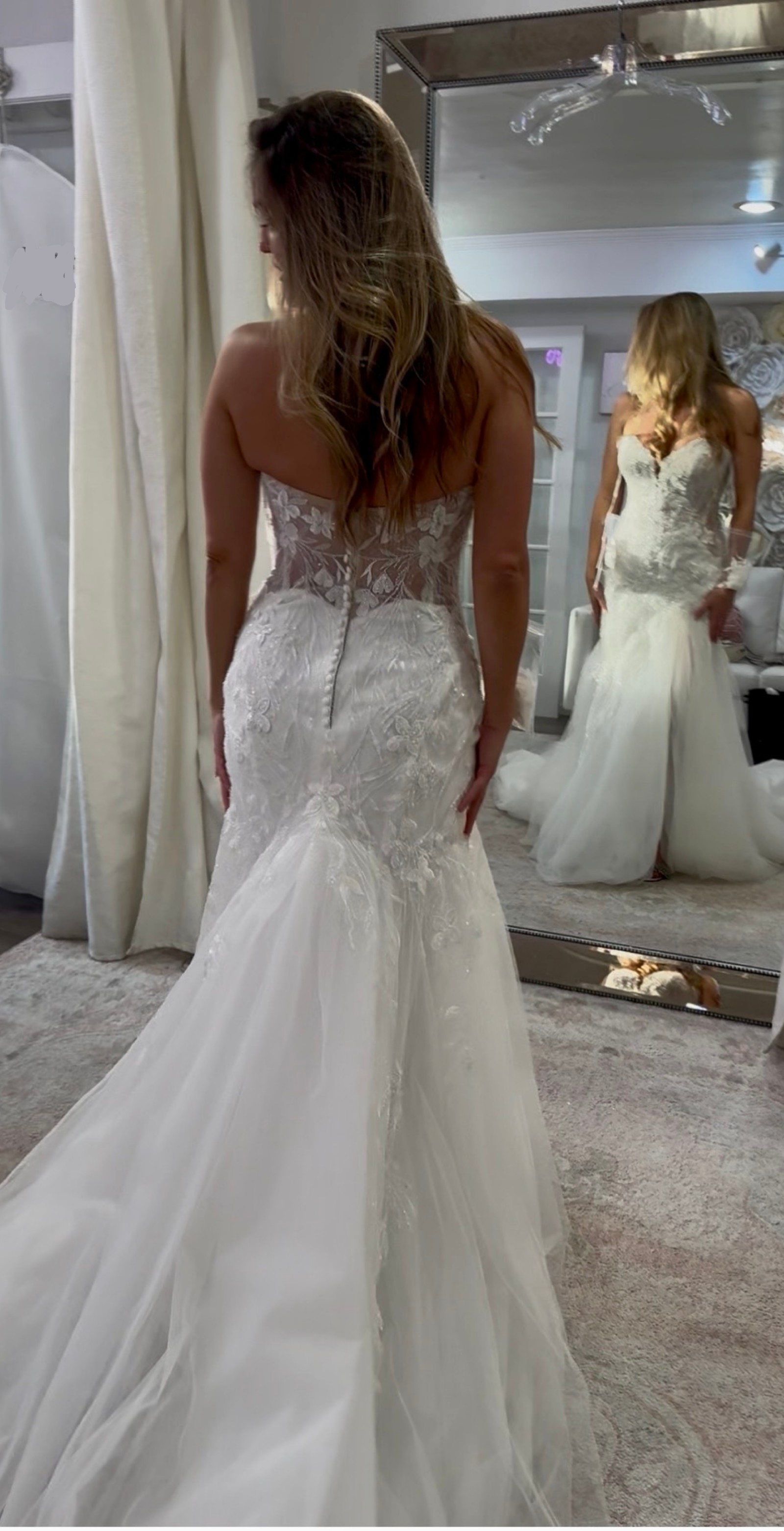 Selling the dress because I decided to go with a ballgown. But if you are a fit and flare girly, this is your dress!! Prepare to be snatched! I am normally self-conscious about my back/behind, but this dress works wonders. I tried on several Sophia Tolli dresses and they have the structure and corsetry to defy gravity!