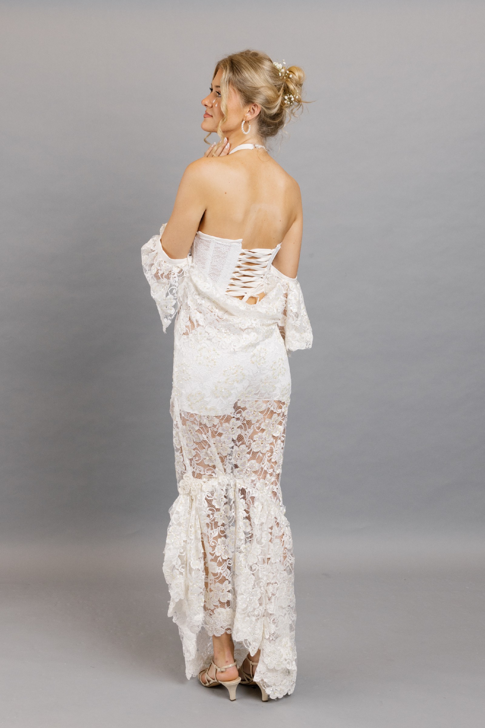 One of a kind, upcyclyed and reimagined from preloved wedding gowns.