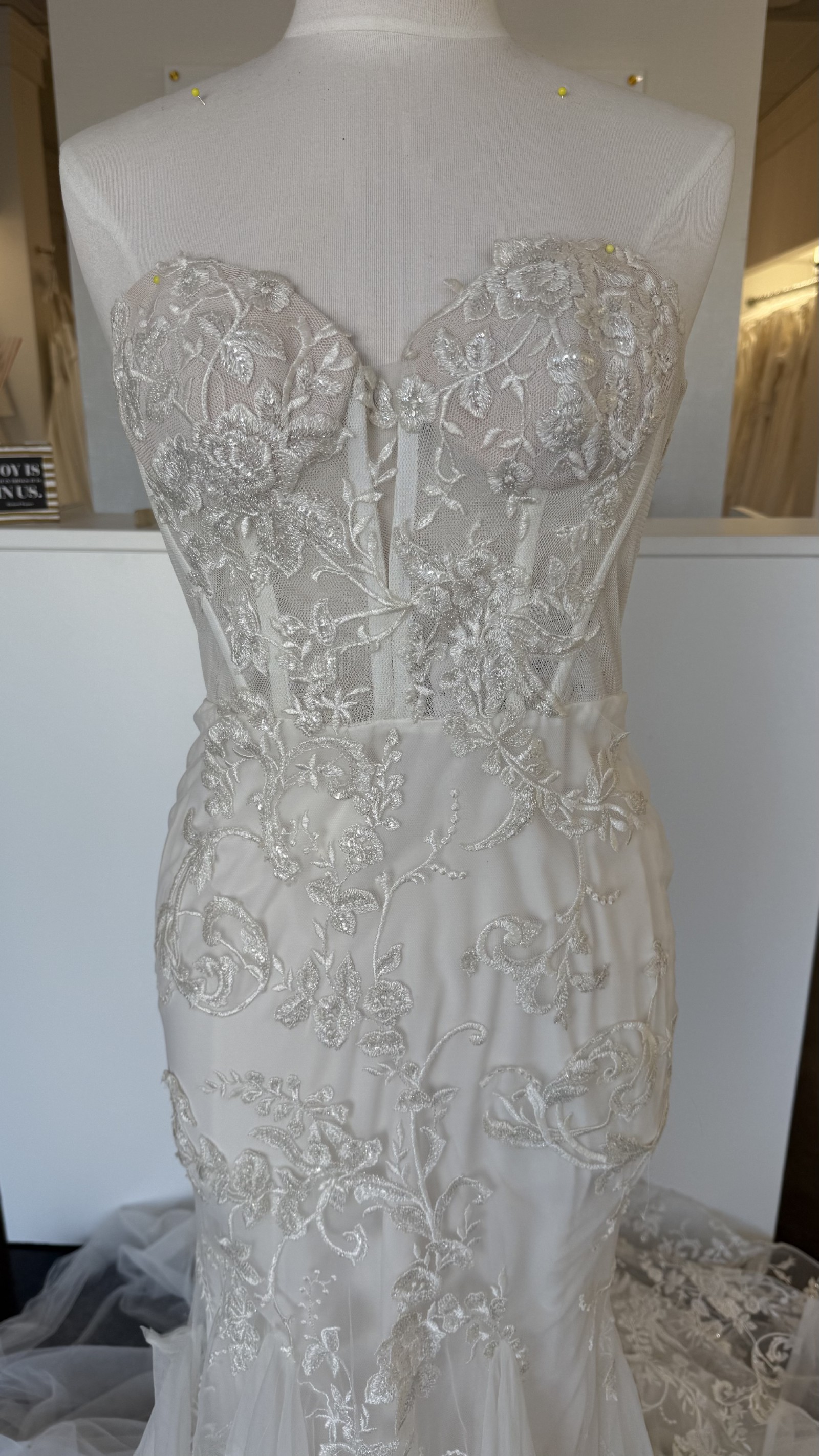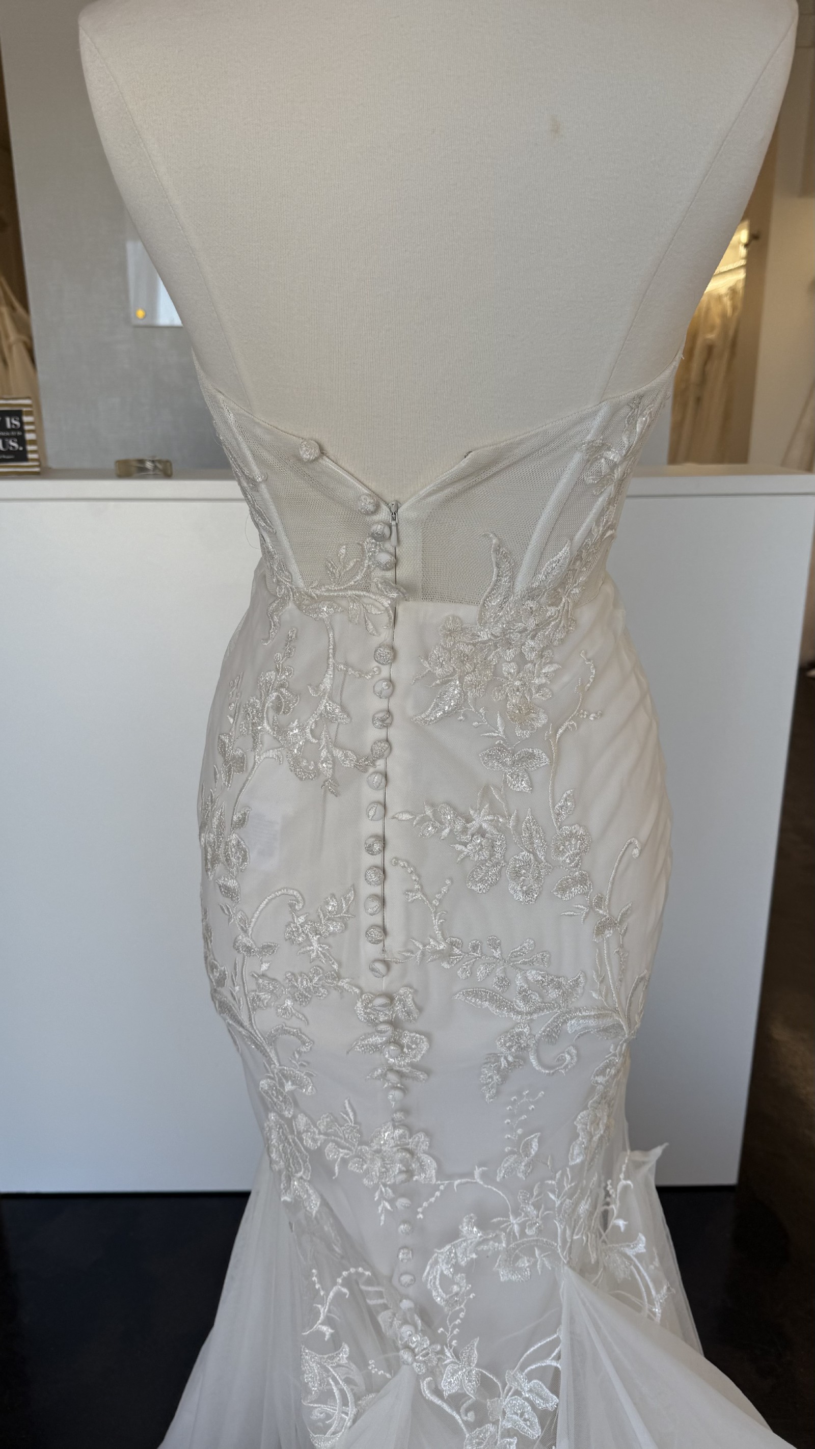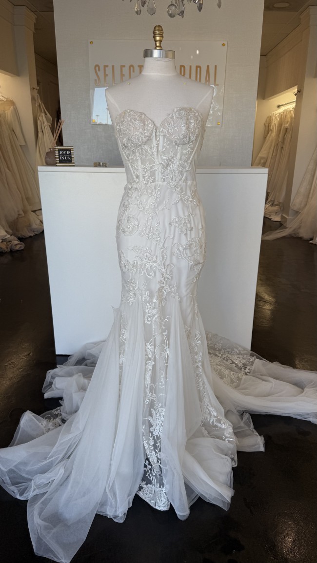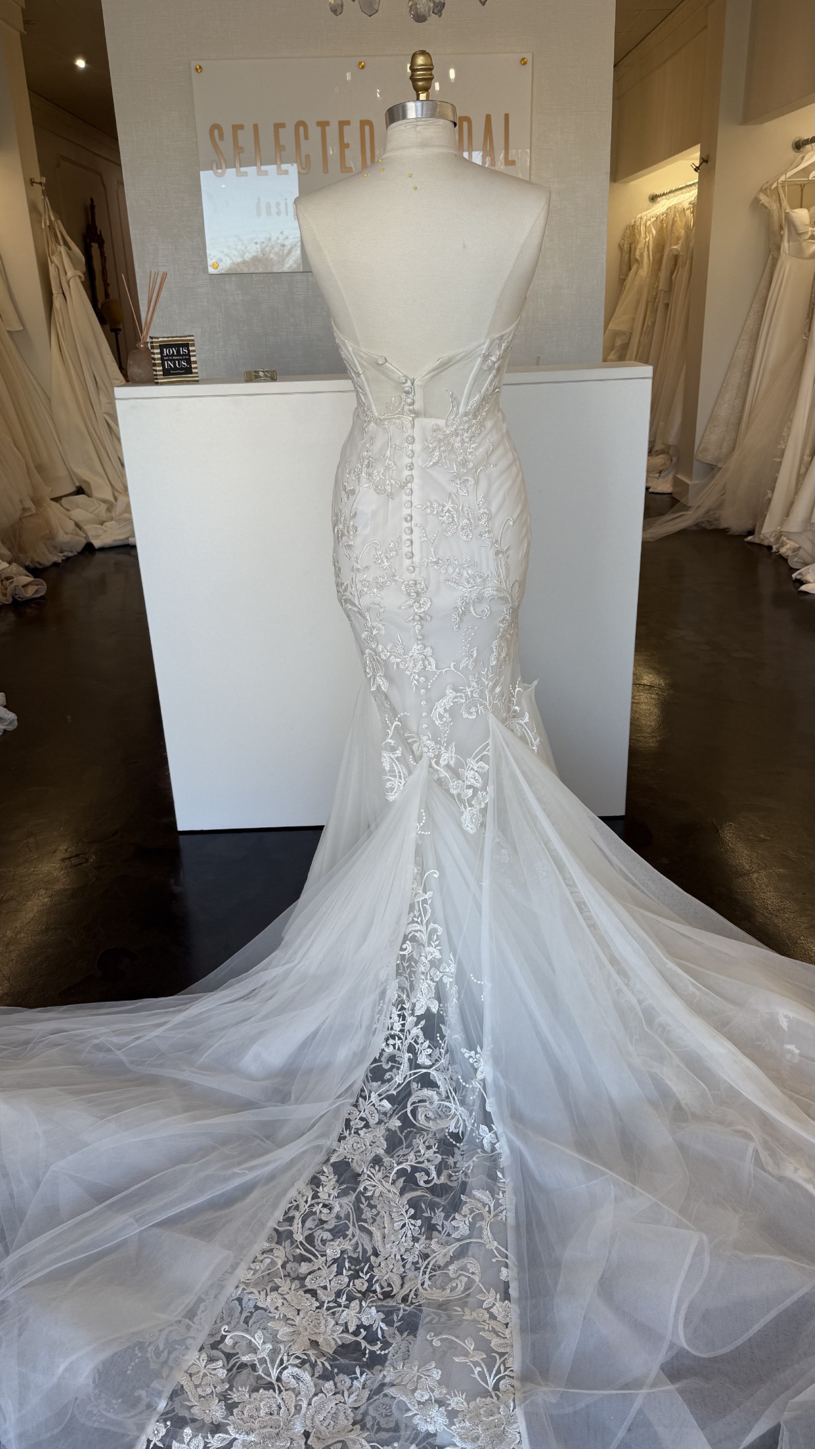 This stunning Alyne By Rivini Elora wedding dress embodies elegance and romance, making it the perfect choice for a bride ready to embrace her unforgettable day. The mermaid silhouette hugs your curves in all the right places, while the sweetheart neckline adds a touch of timeless allure. Crafted from luxurious fabric, this floor-length gown exudes a sense of sophistication that is sure to leave a lasting impression.