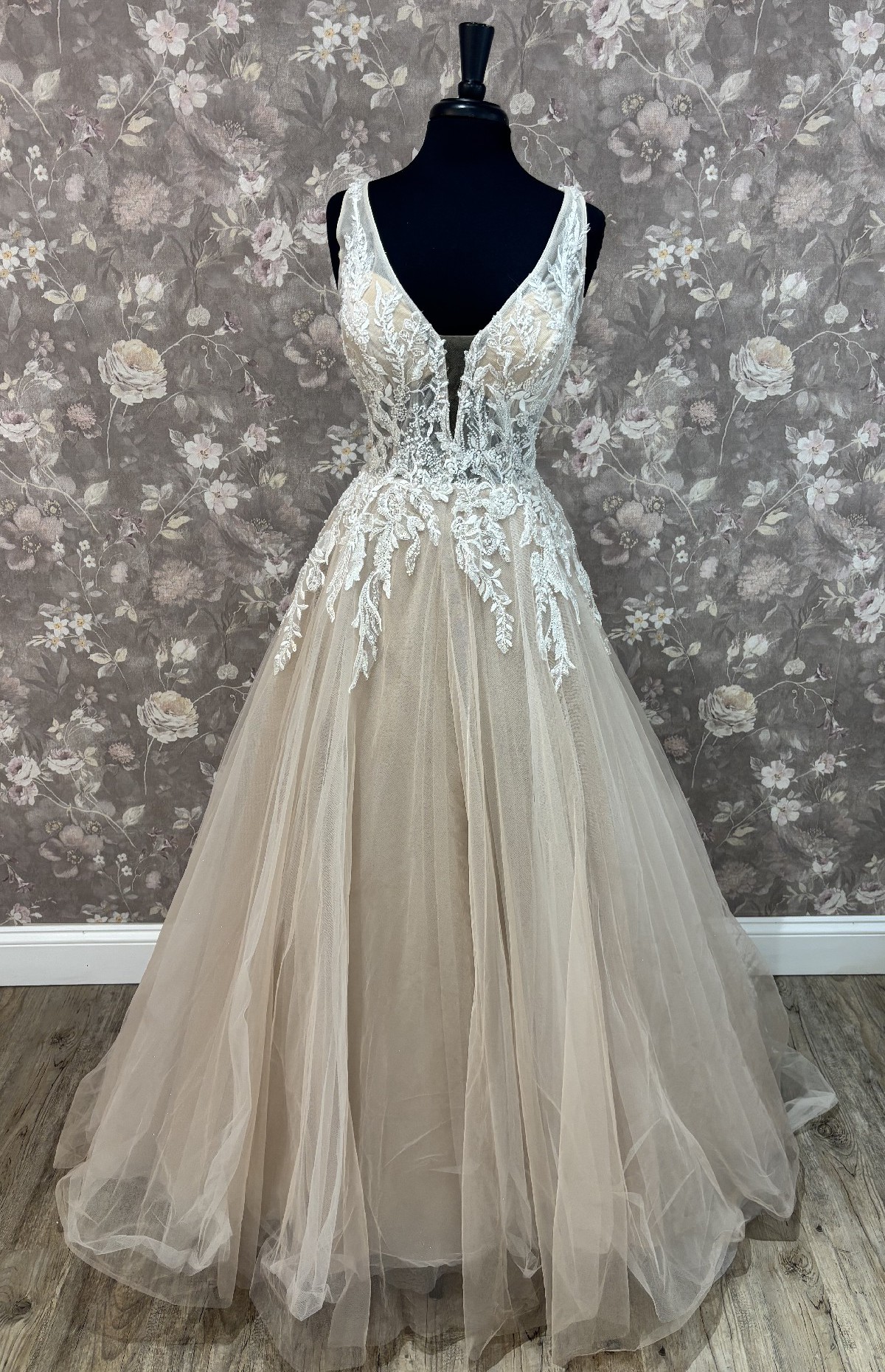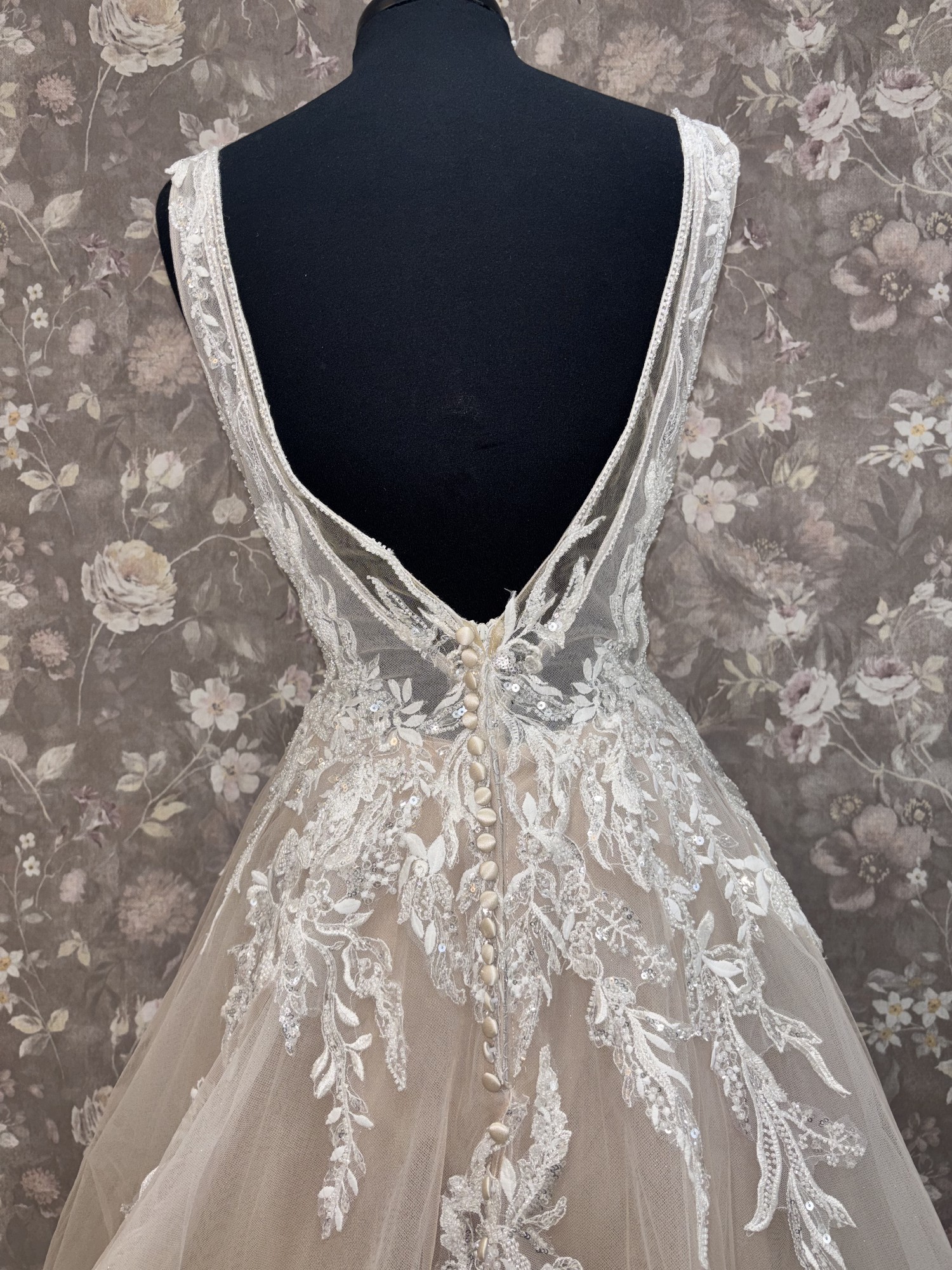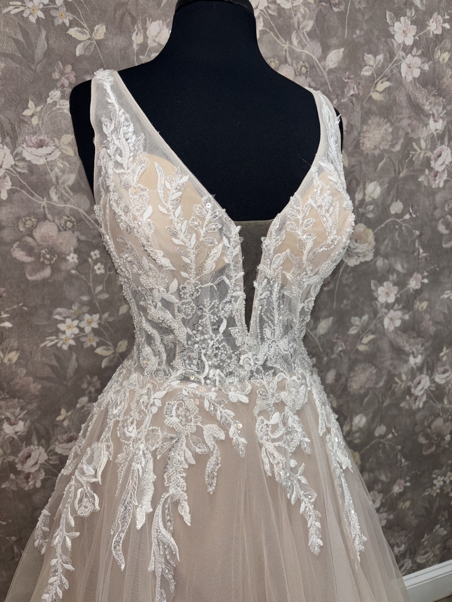Our gowns have not been worn for a wedding, though they may have been tried on during appointments. While we maintain high standards for our samples, small imperfections—like loose buttons, missing beads, or zipper issues—can happen. These easy-to-fix details with the help of a seamstress mean amazing discounts! Interested in this gown? Chat or email us anytime for more info or extra photos.