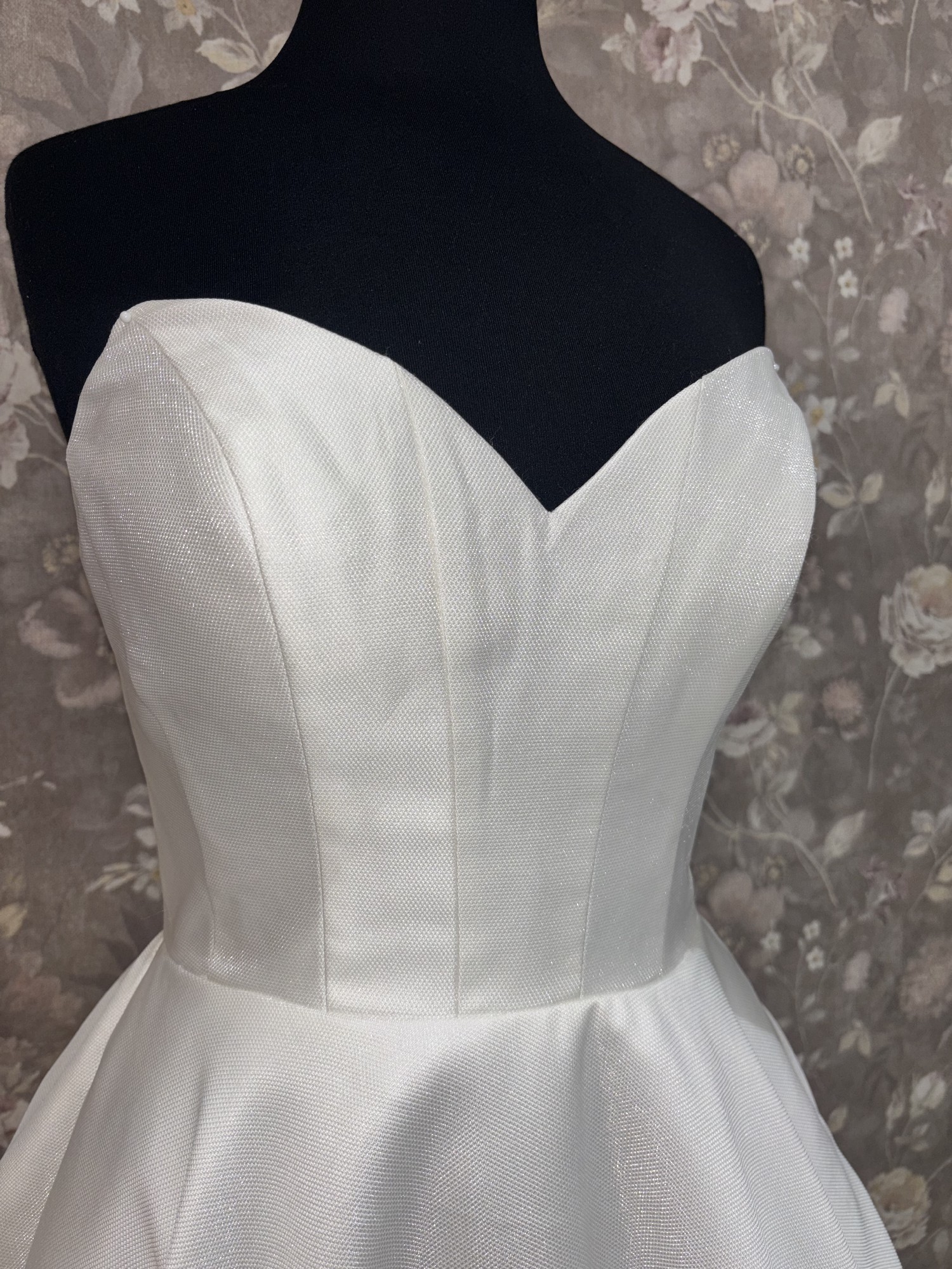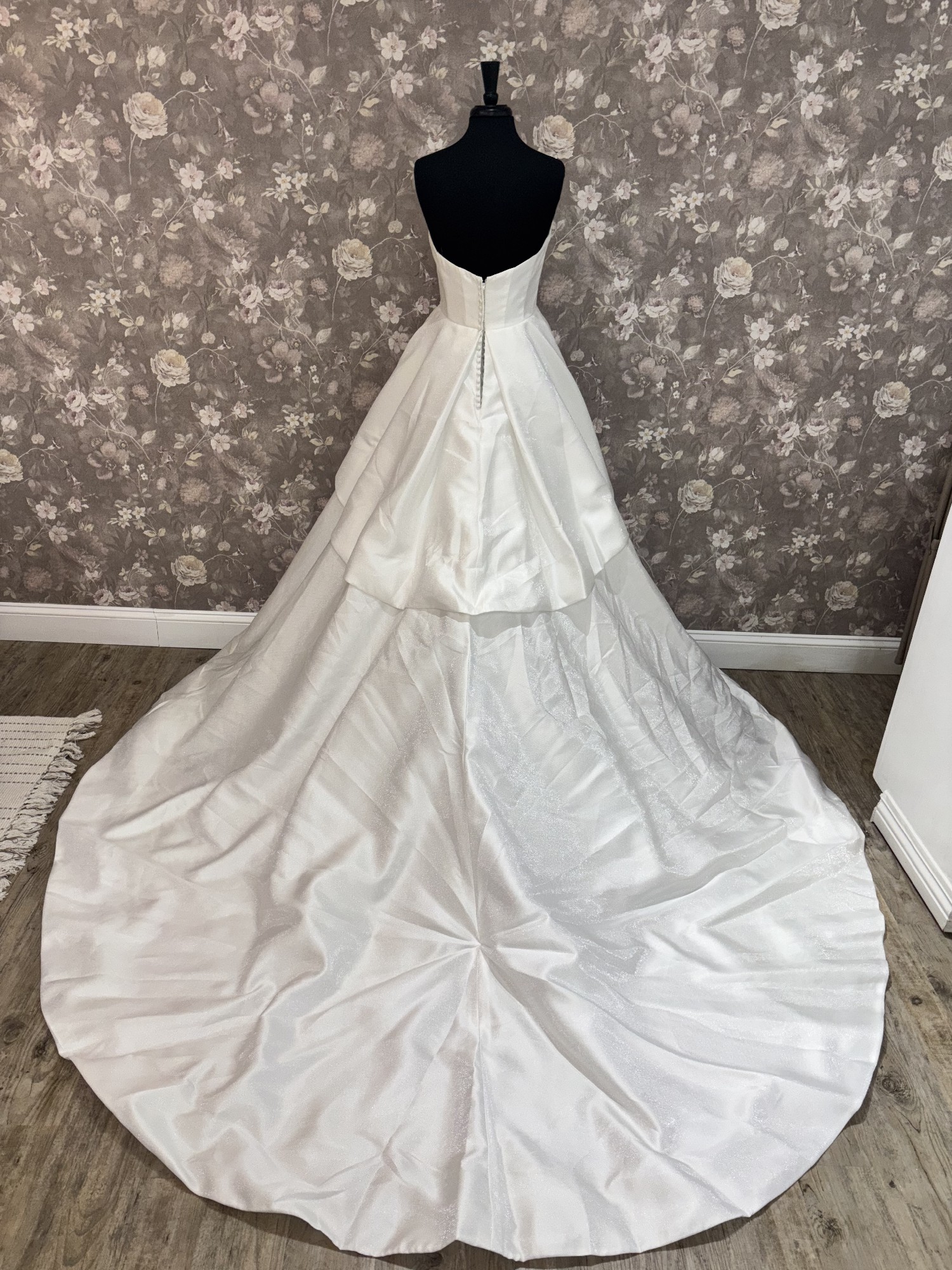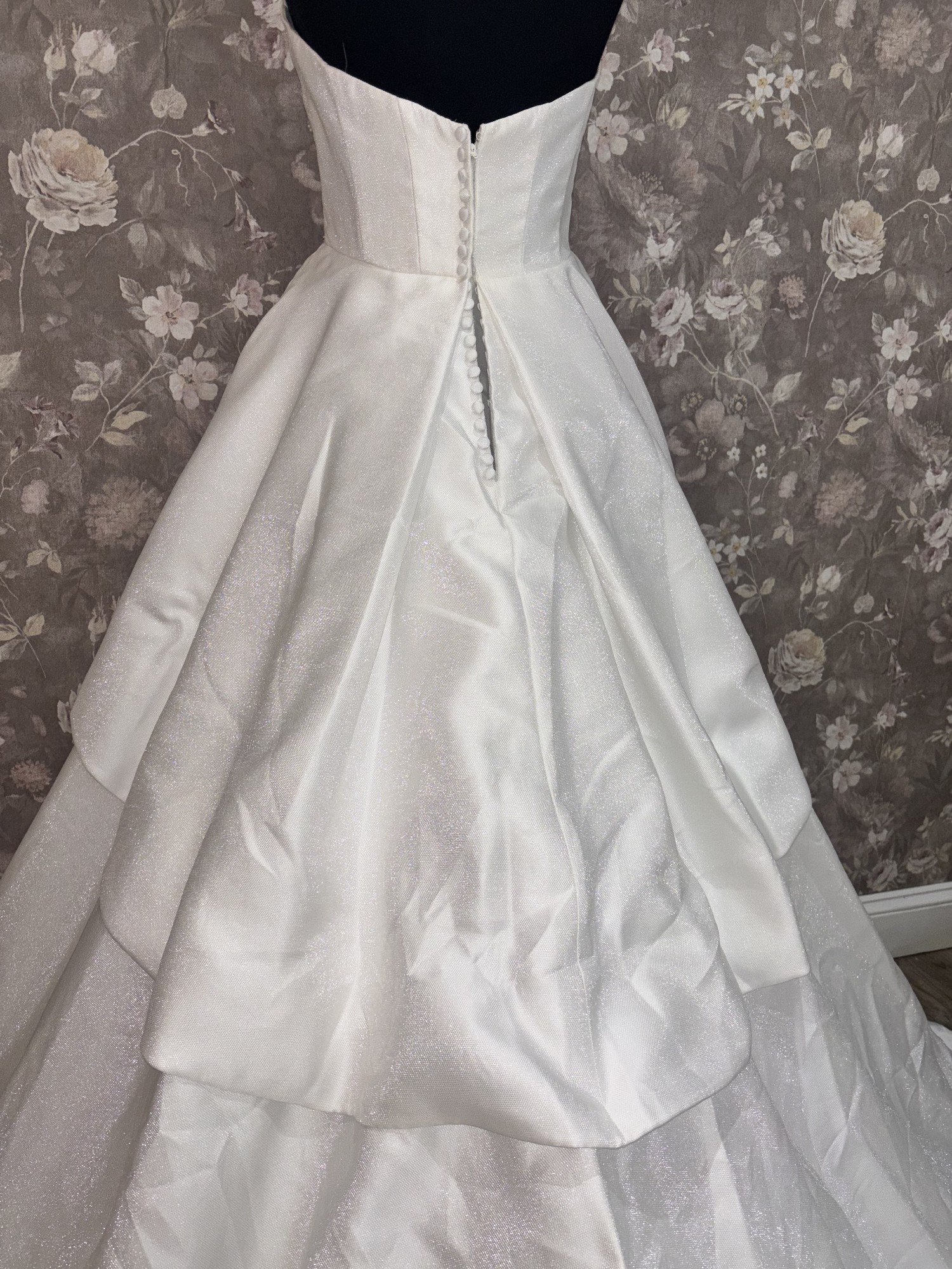 Our gowns have not been worn for a wedding, though they may have been tried on during appointments. While we maintain high standards for our samples, small imperfections—like loose buttons, missing beads, or zipper issues—can happen. These easy-to-fix details with the help of a seamstress mean amazing discounts! Interested in this gown? Chat or email us anytime for more info or extra photos.