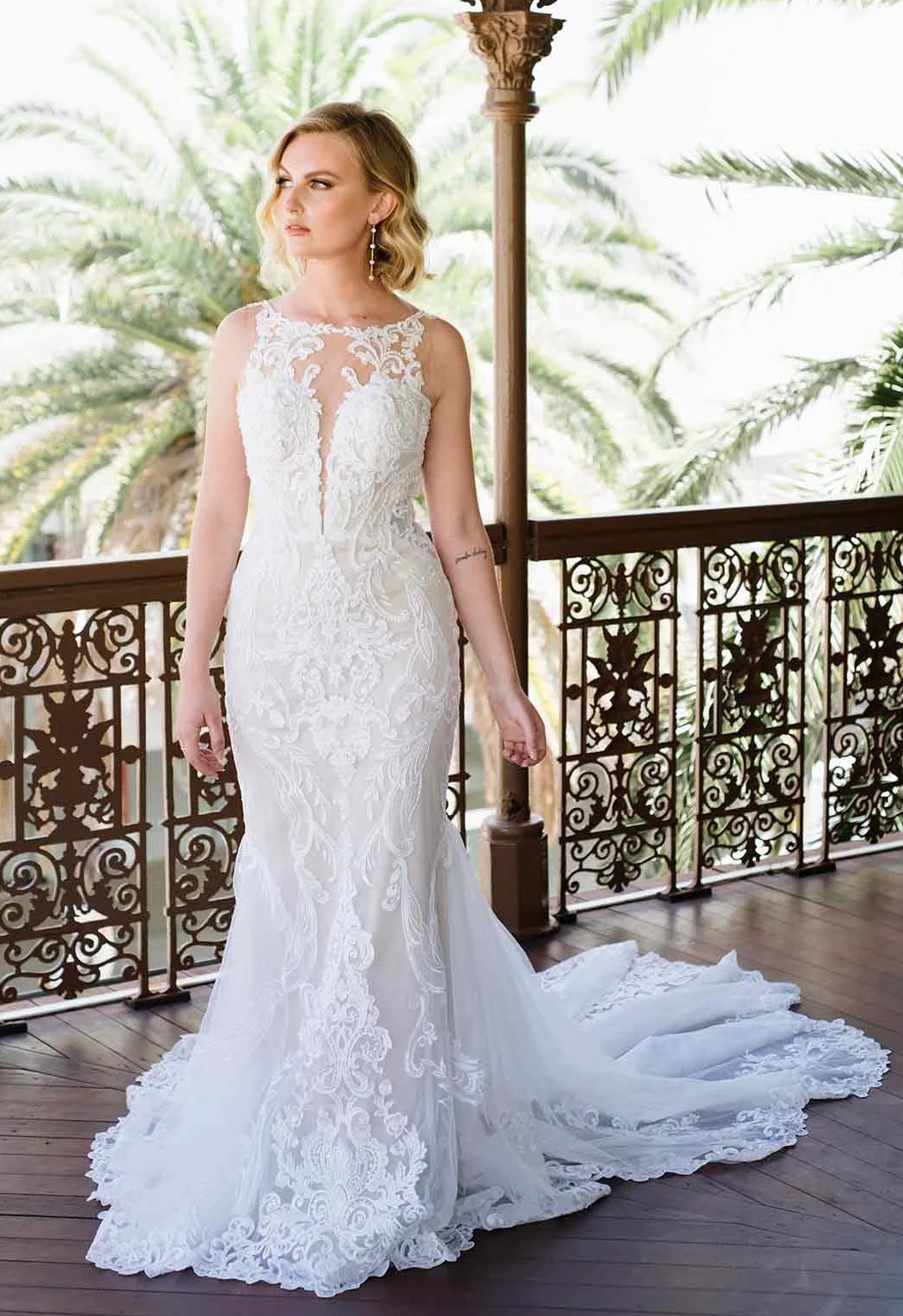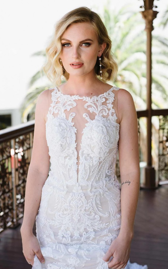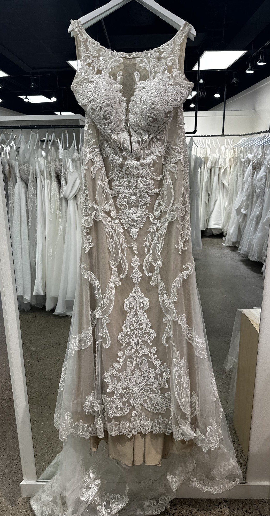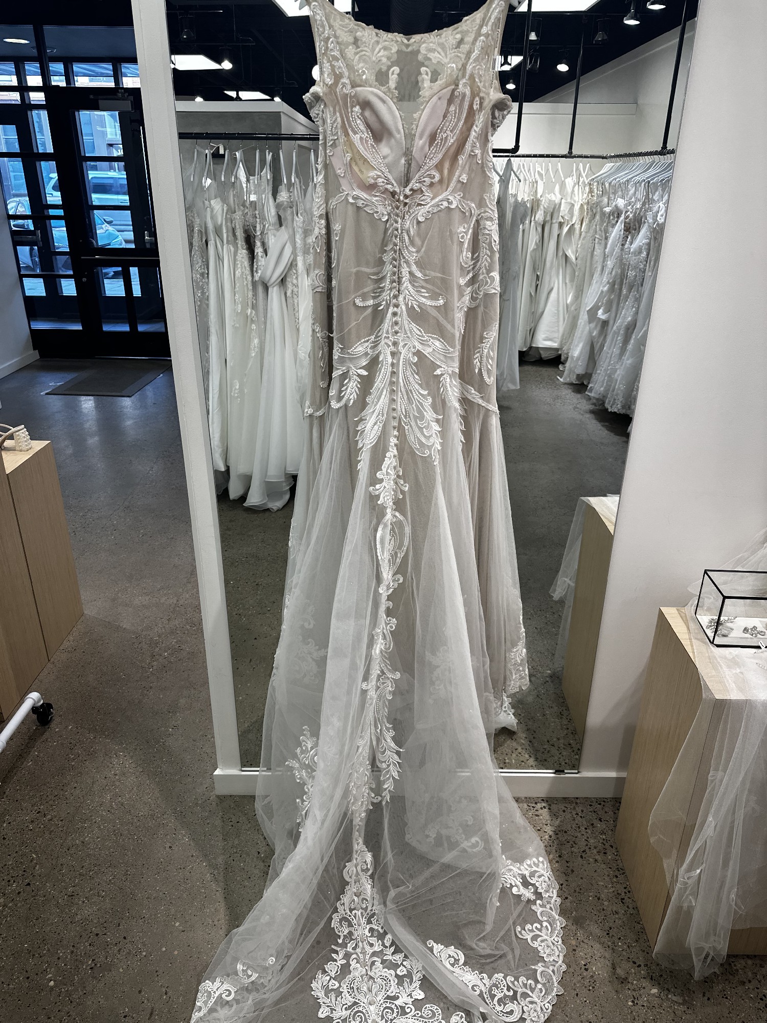 Note we are a bridal store so this gown has not been worn by a bride outside our store. This I a sample or floor model from which brides order their desired size and color.