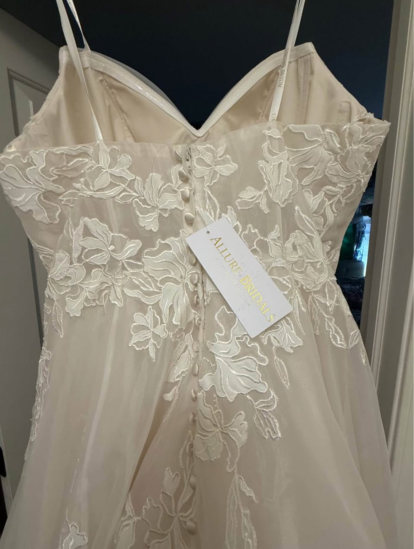 This gown is not just a dress; it’s a canvas for unforgettable memories. Imagine walking down the aisle, all eyes on you, enveloped in the exquisite beauty of this enchanting piece. The Allure Bridals A1257 is more than just a garment; it’s a dream come true for every romantic bride.