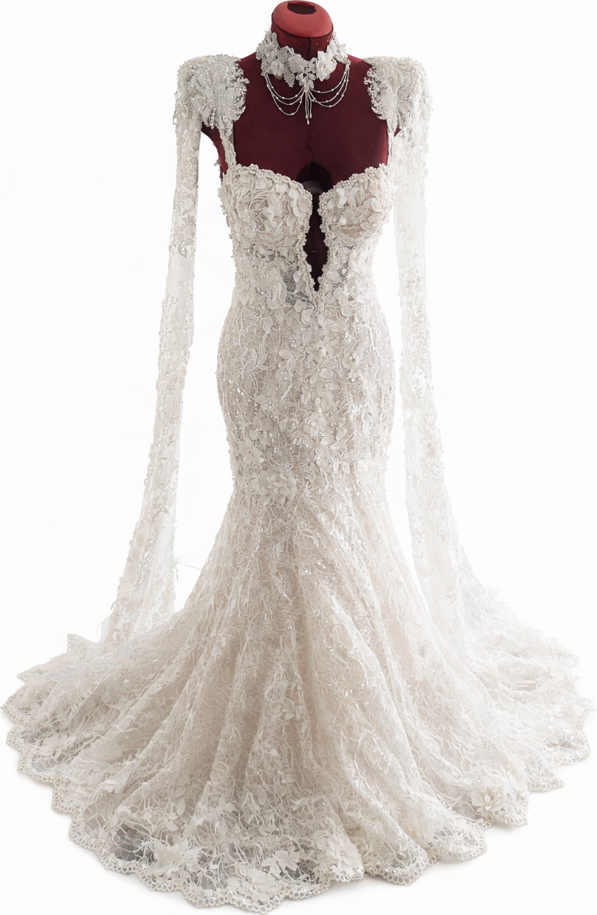A true couture statement piece — exceptionally detailed, luxurious, and offering two dresses in one.
