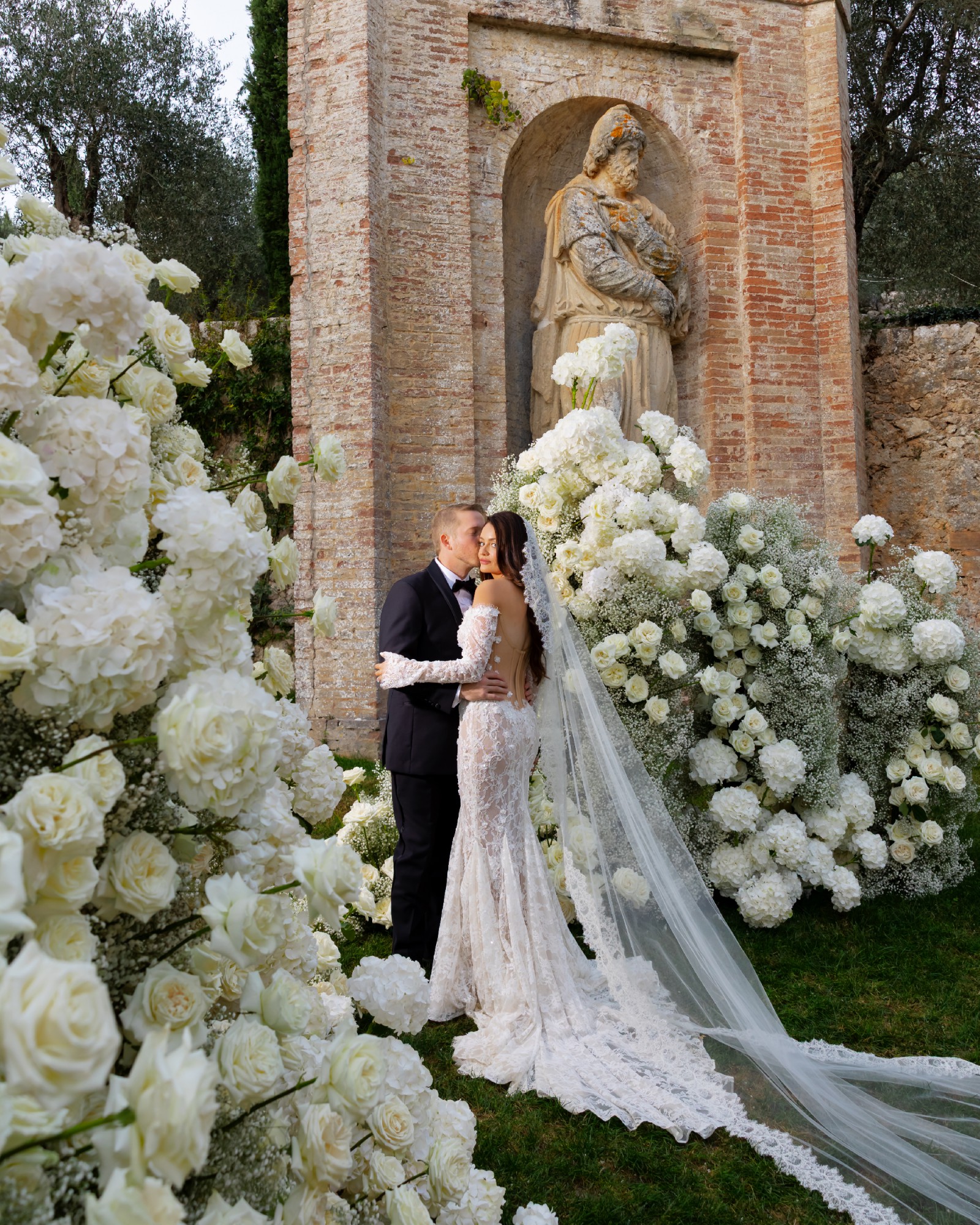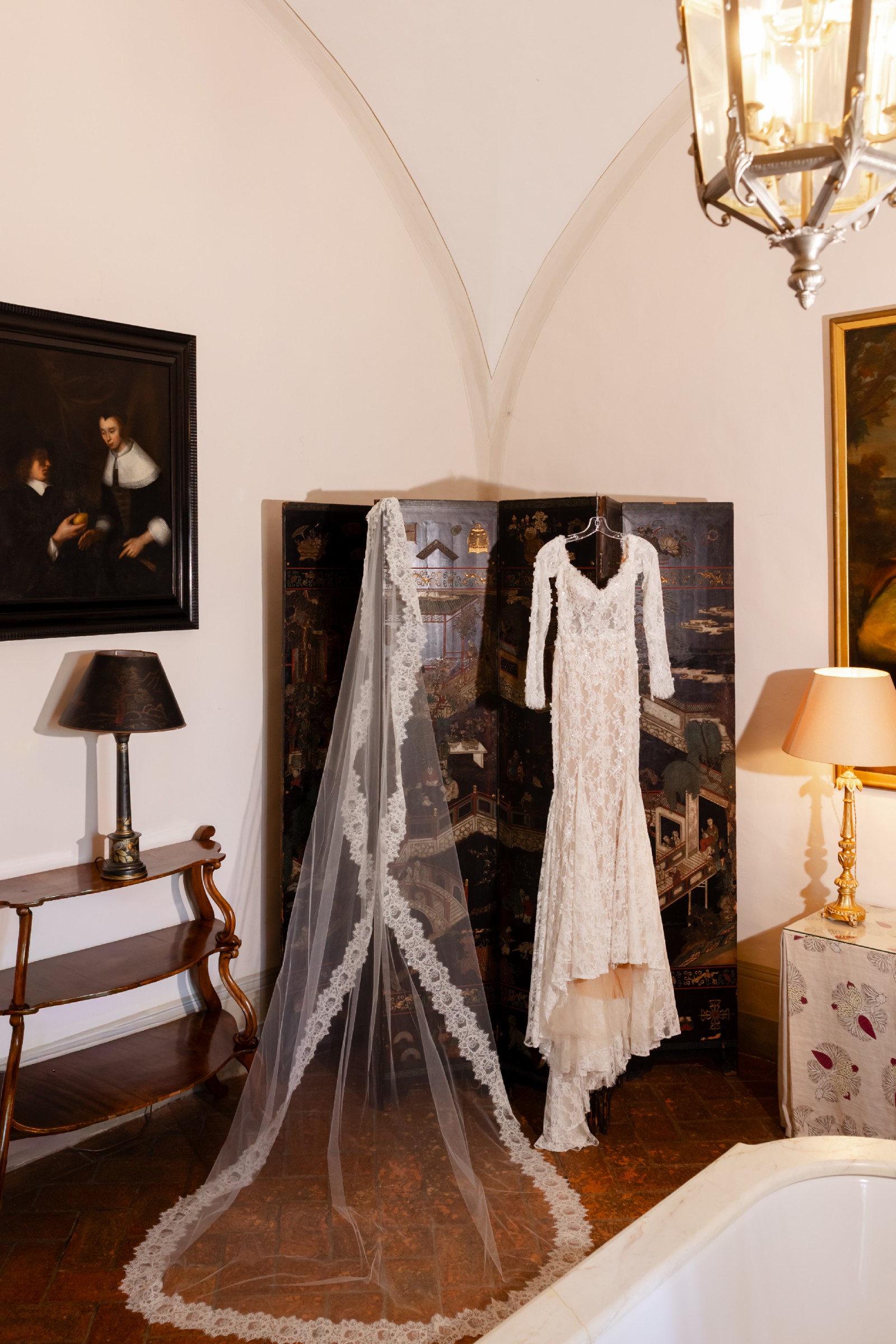 Selling my beautiful Berta gown from my dream Italian wedding. This dress was purchased as a Berta size 40 due to my cup and hip size, but was altered to fit closer to a size 38 in measurements. I wore the dress for maybe 2-3 hours, and it has been professionally dry cleaned. Alterations are reversible with exception of hem. Final height with heels was 5'7”, with my true height being 5'5”. Dress has original train which was not altered. Does not include veil. No stains, tears, or damage.