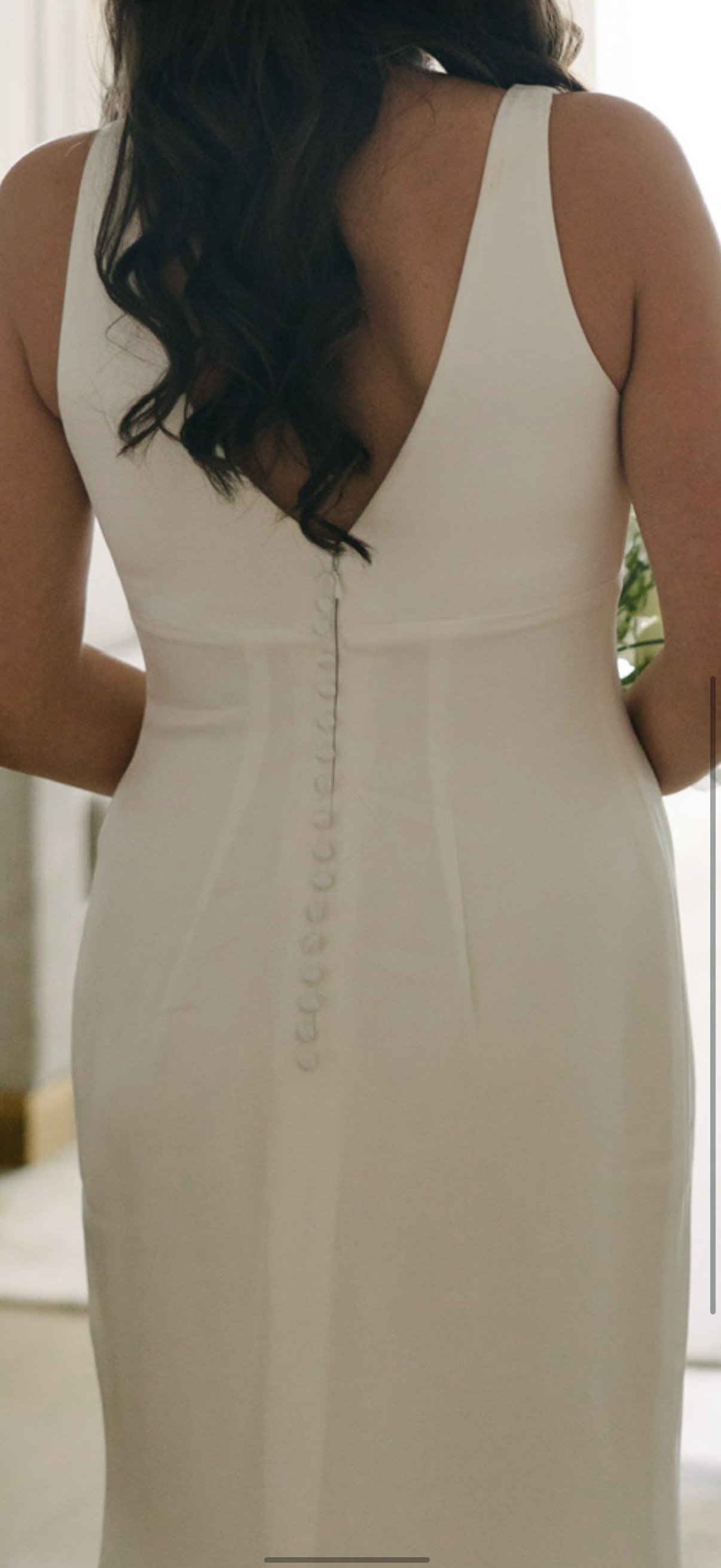 - Hem shortened, straps taken in, bust and sides taken in, covered buttons added to zipper, French bustle