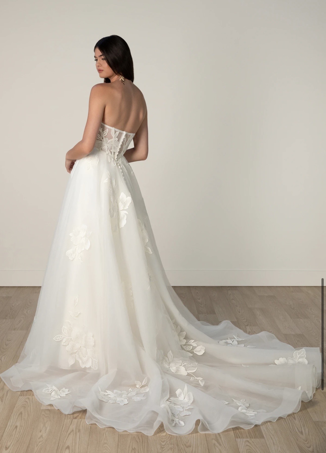 Absolutely stunning Stella York style 7975 wedding dress in a size 6. This dress is brand new, never worn, and has never been altered. I purchased it for $1,600 and ultimately went in a different direction, so it has been safely stored in a garment bag in a clean, smoke-free home. This is a gorgeous A-line gown that is incredibly flattering and comfortable. It features a romantic lace design with a structured bodice and flowy skirt—perfect for a classic, elegant bridal look.