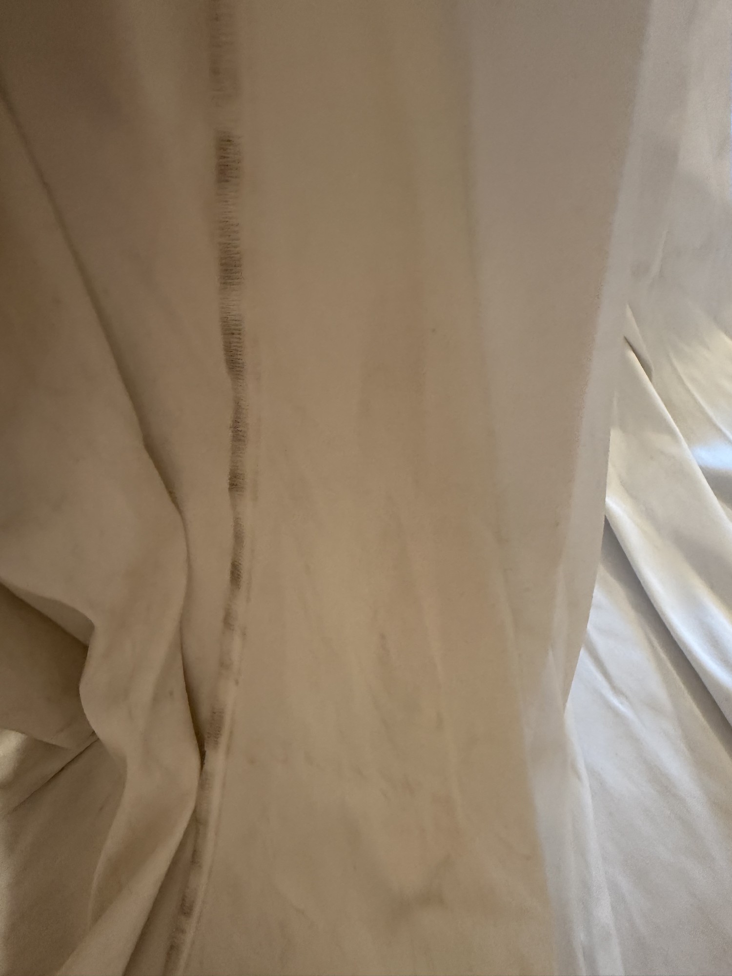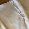 This has been worn, so there are dirt marks on the skirt and train that should be spot cleaned. Otherwise, it is in very good condition.