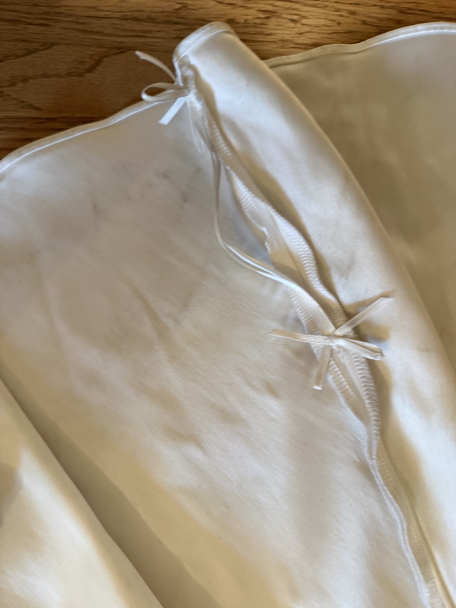 There is also a loop/ribbon at the bottom of the train to hold the dress
