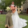 This dress is brand new and I only wore it once on my wedding day for 2 hours! I had it custom fitted and hemmed so that the back of the dress became a train.