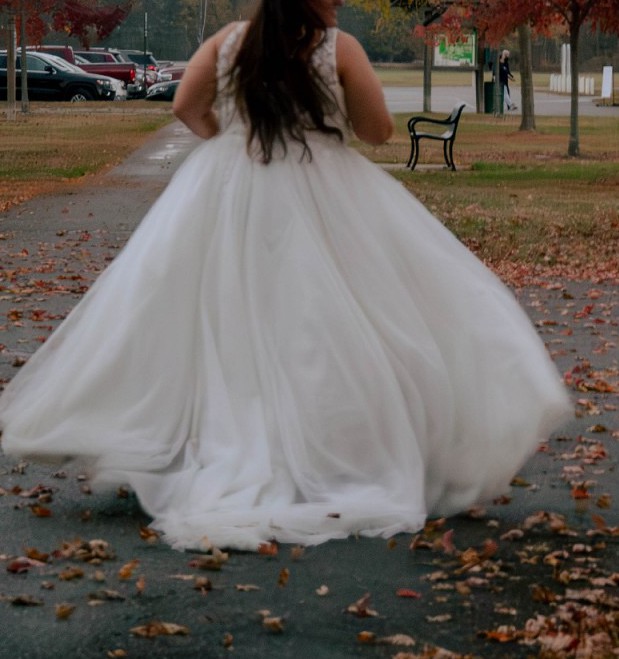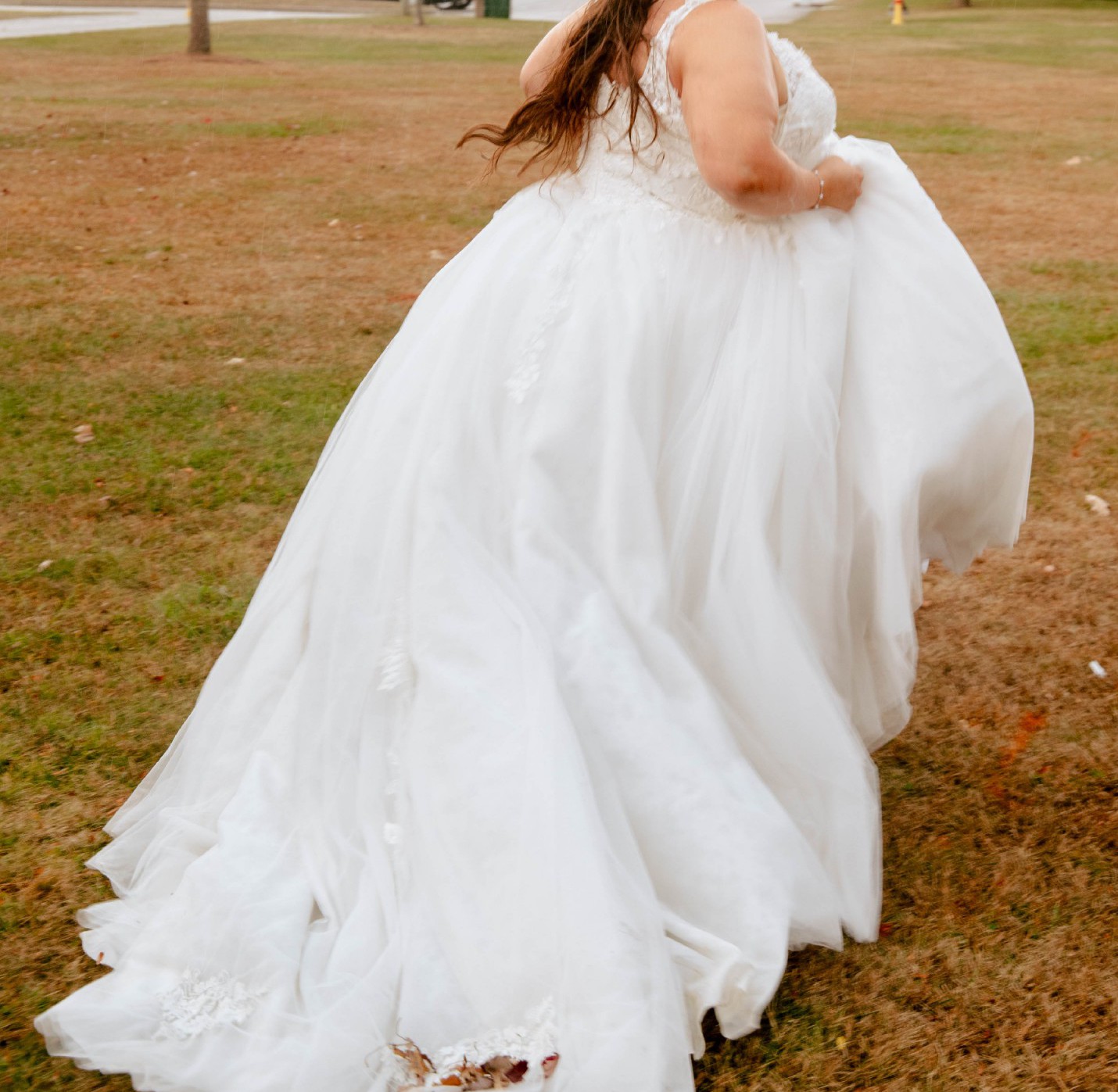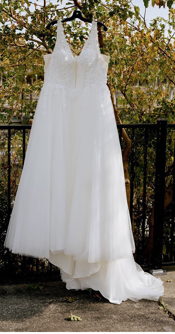 As I part with this enchanting dress, I'm excited for another bride to experience the magic I felt while wearing it. This gown isn't just a dress; it's a piece of my cherished memories, and I hope it creates new ones for its next owner.